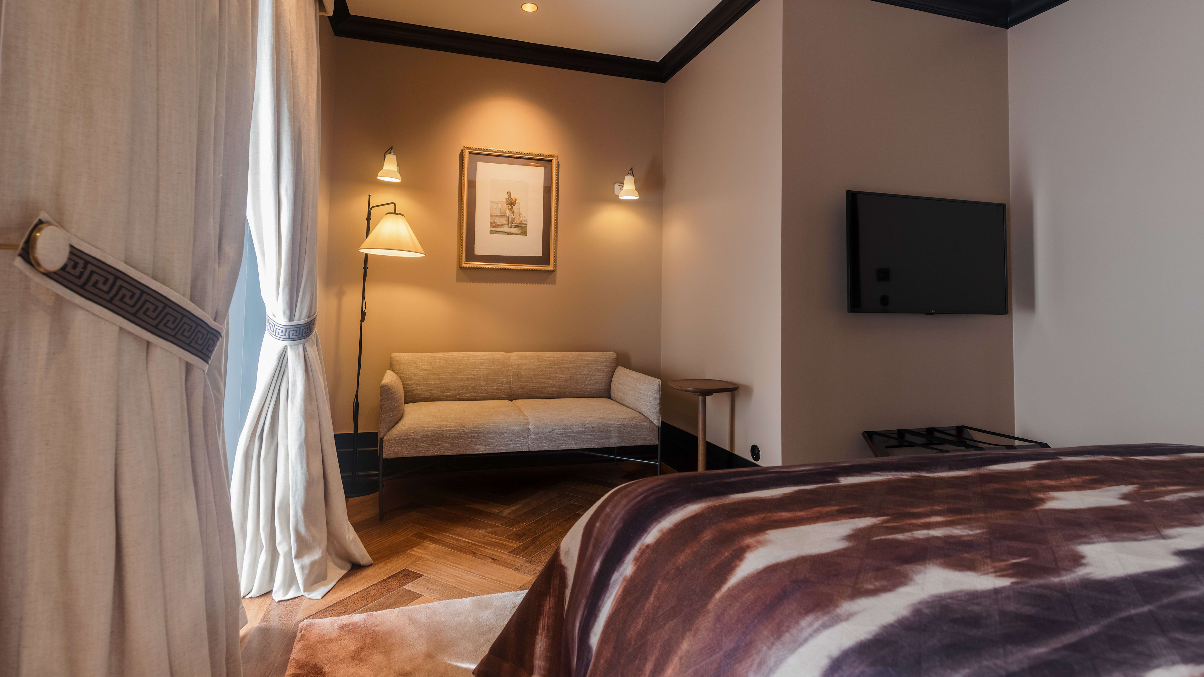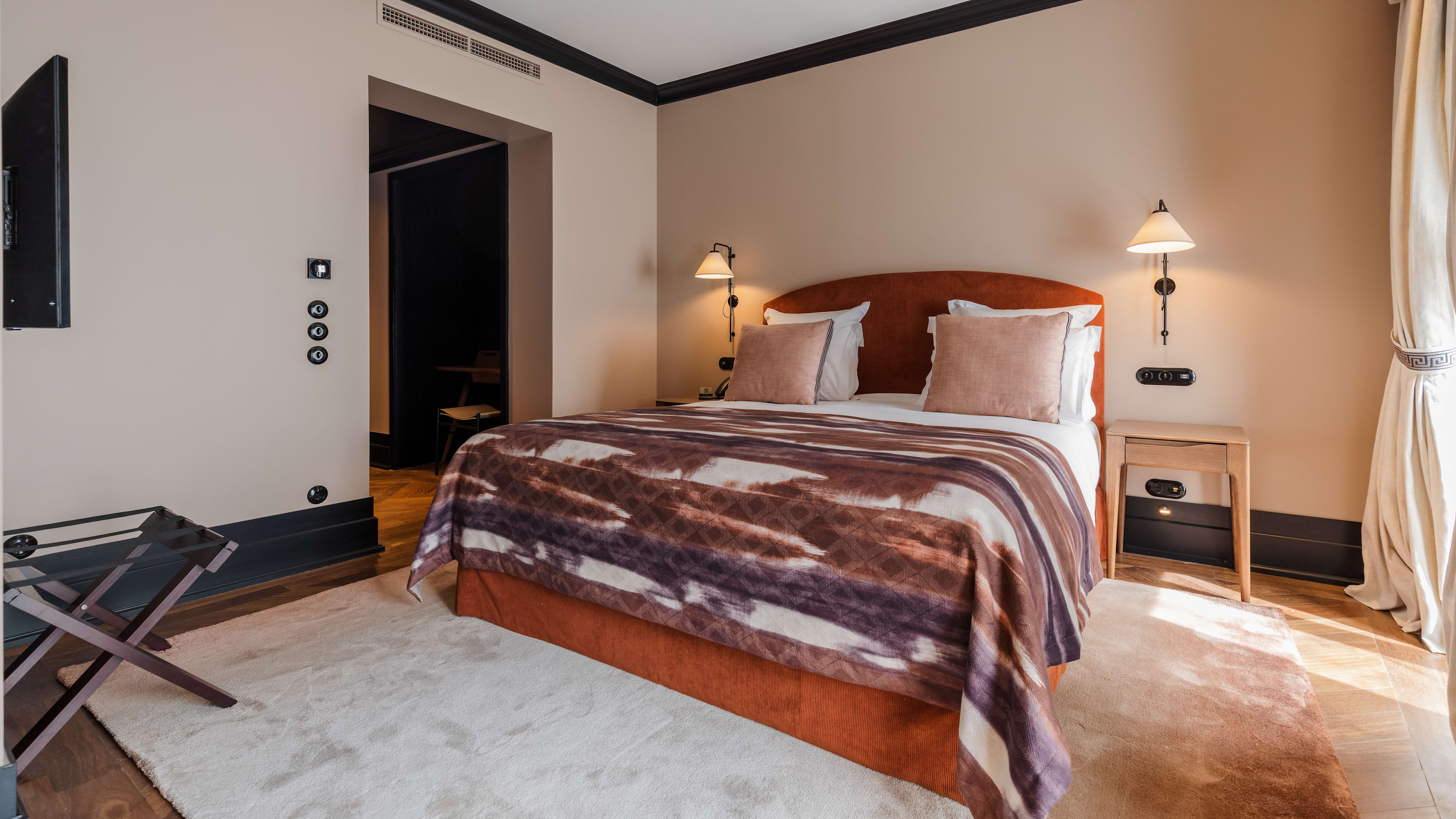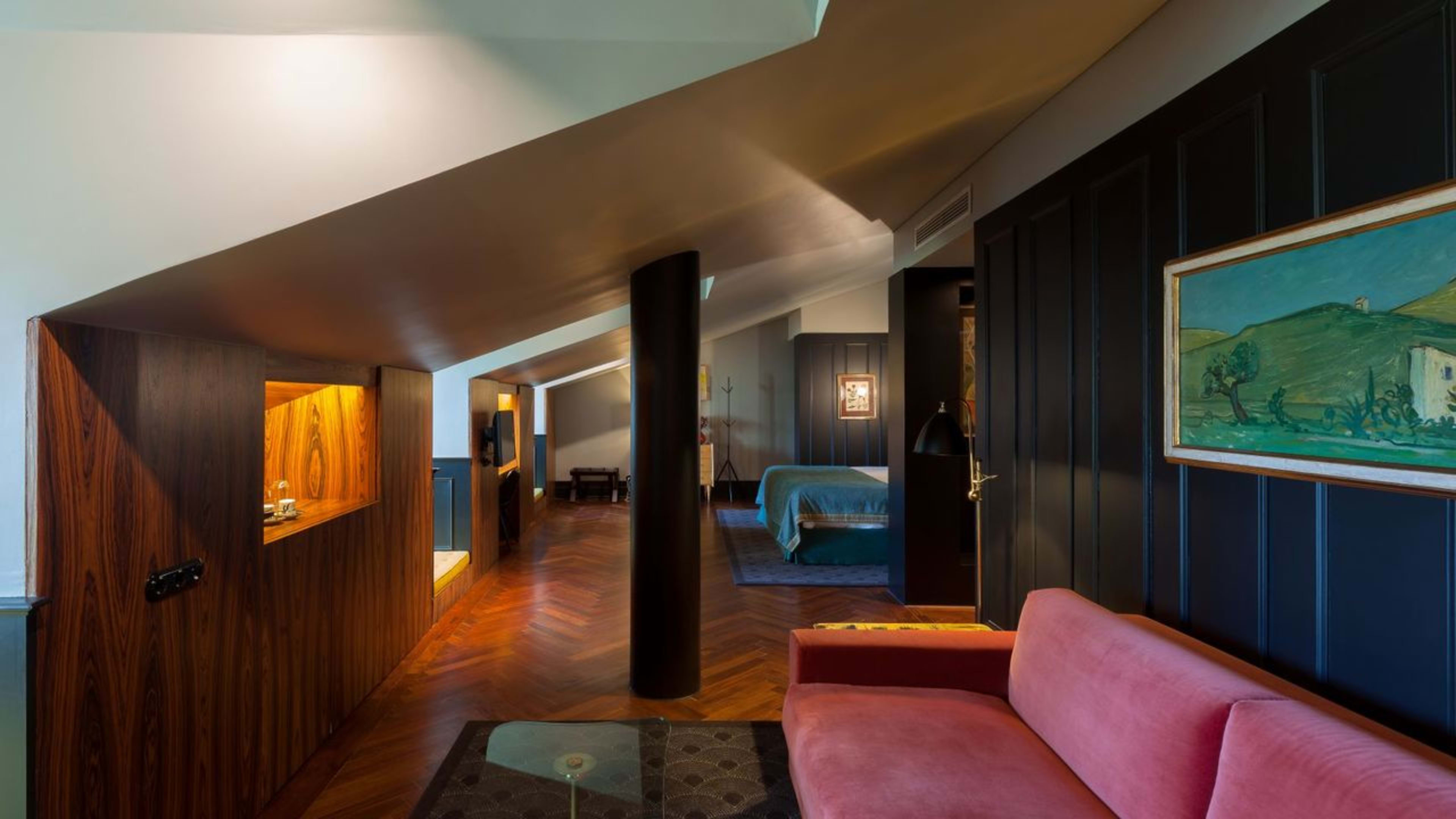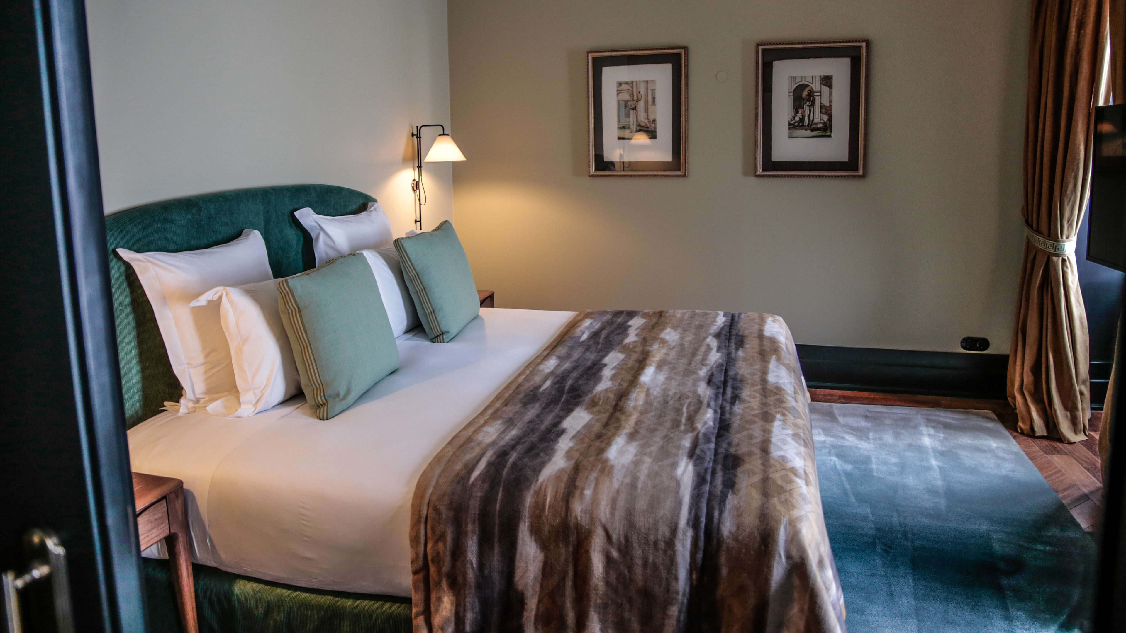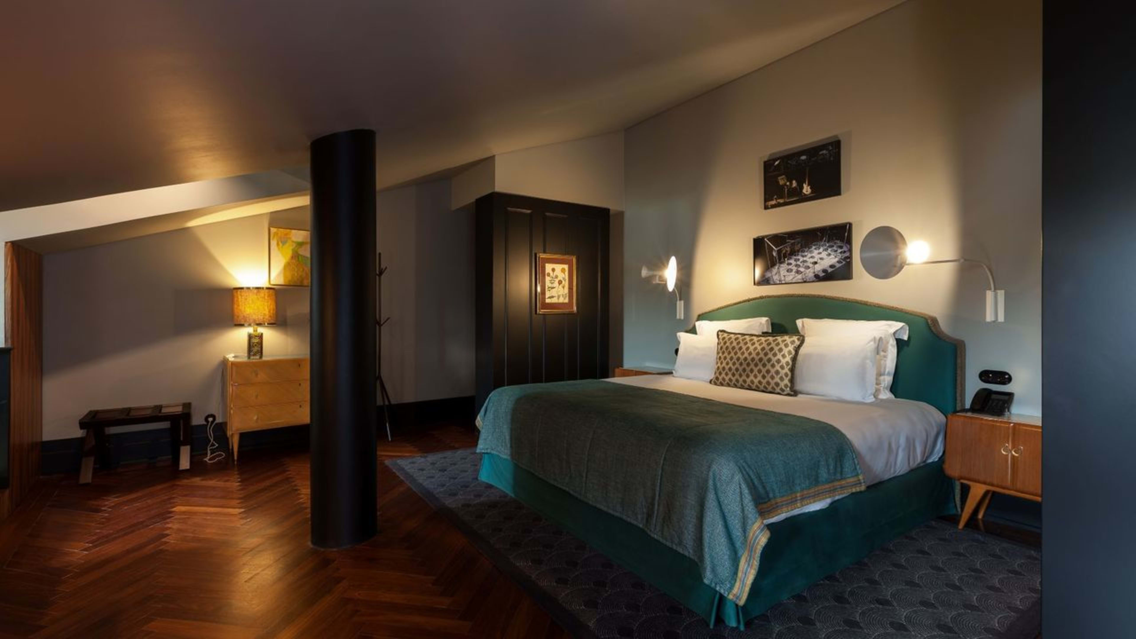 Shh, no one need know you’re staying at Valverde Hotel – a discreet, centrally located townhouse where A-listers grace the halls undisturbed. Its gorgeous, rose-hued façade veils a warren of hidden corners and tucked-away spaces, each showcasing the best of Portuguese interiors: heavy fabrics, artwork by Maria Helena Vieira da Silva, Braz Gil porcelain and Moorish floor tiles. The pool and courtyard are quite the duo: marble-clad and jungle-like, respectively. Curl up in one of the sultry corners (the first-floor terrace and film-room snug are our favourites) after a day of easy exploration in the city of seven hills.