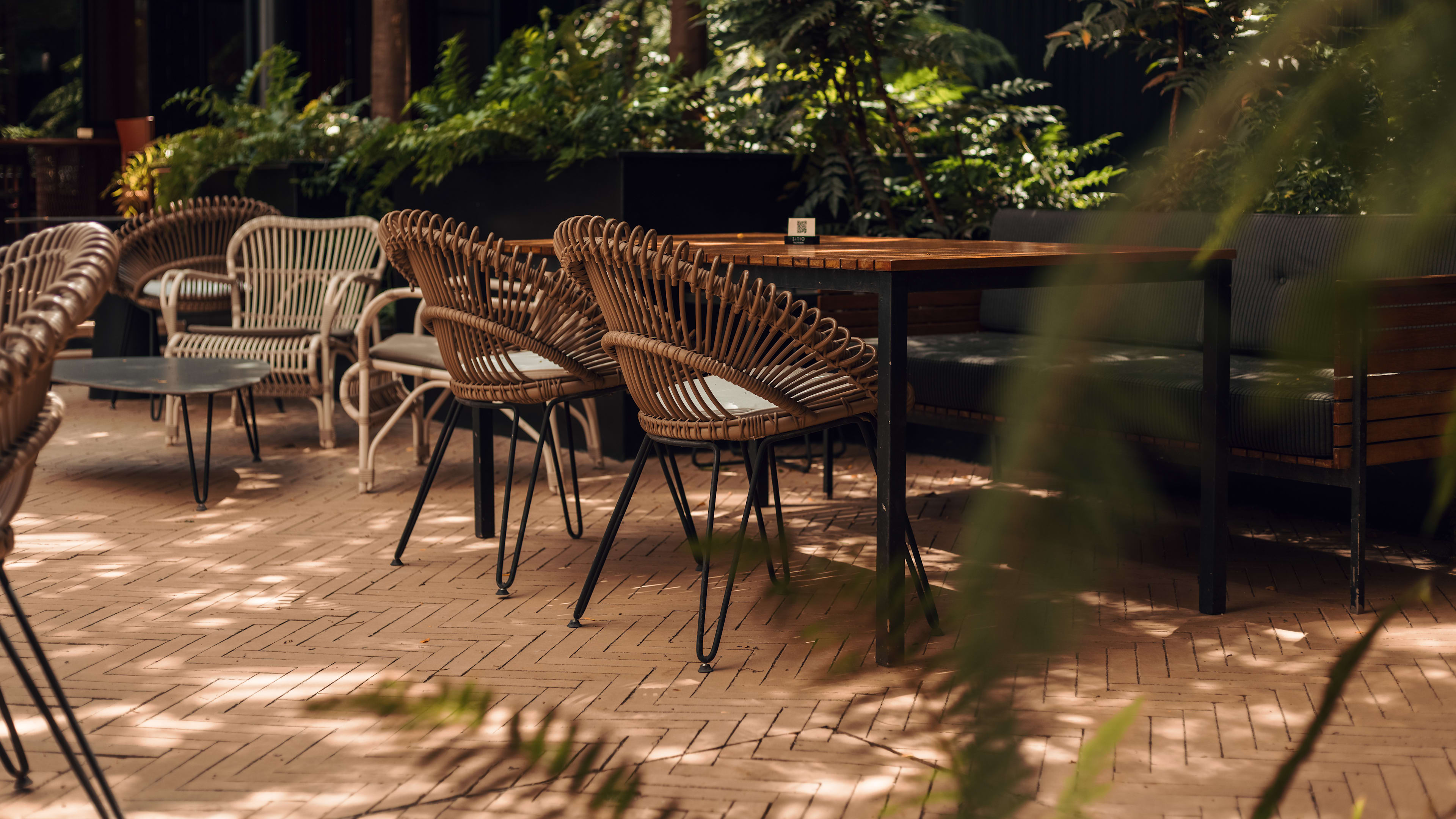 We love the round tables on the raised courtyard terrace, especially in summer. If you’re wanting to fly under the radar, opt for one of the hidden tables, shaded from the sun by the lush vegetation of the courtyard.