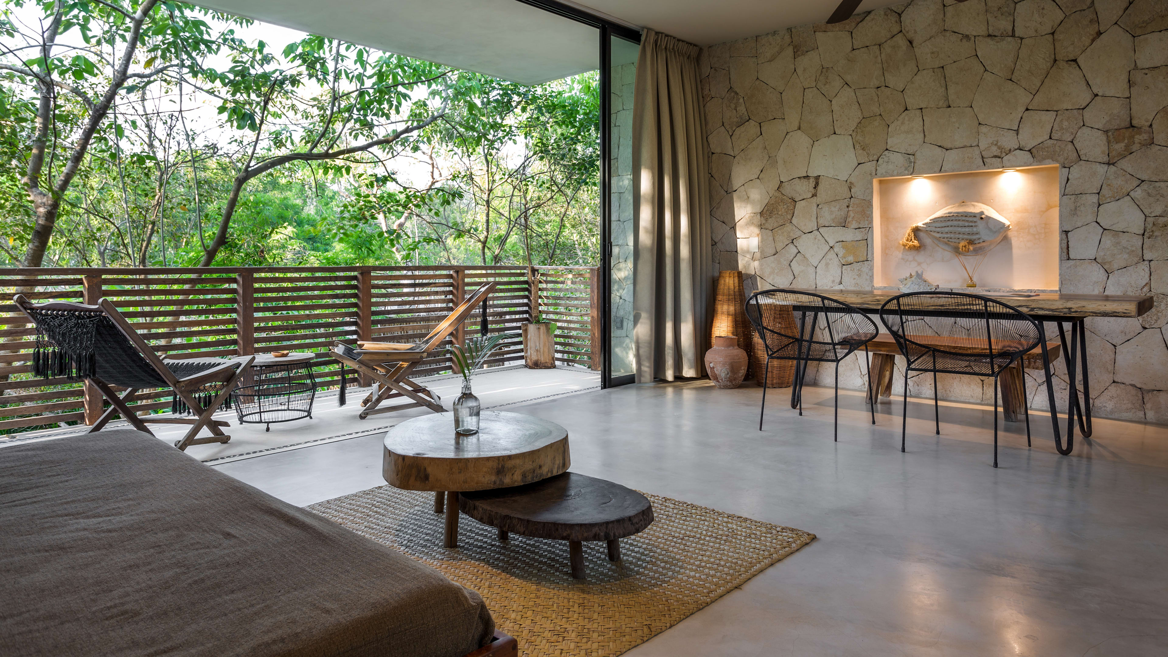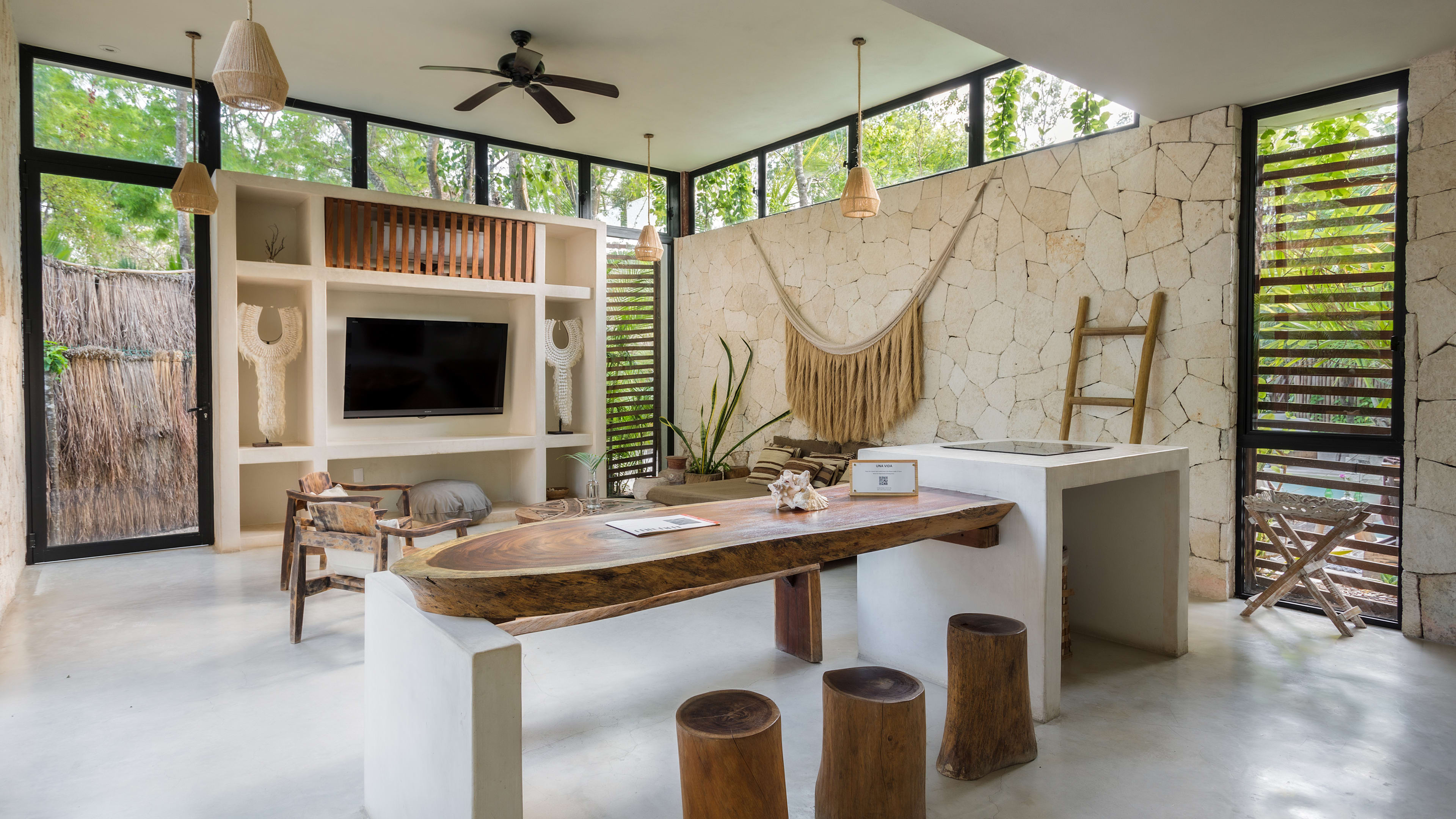 Tulum International is the closest airport, around a 40-minute drive from the hotel; shuttle or private transfers can be arranged through Una Vida at extra cost.