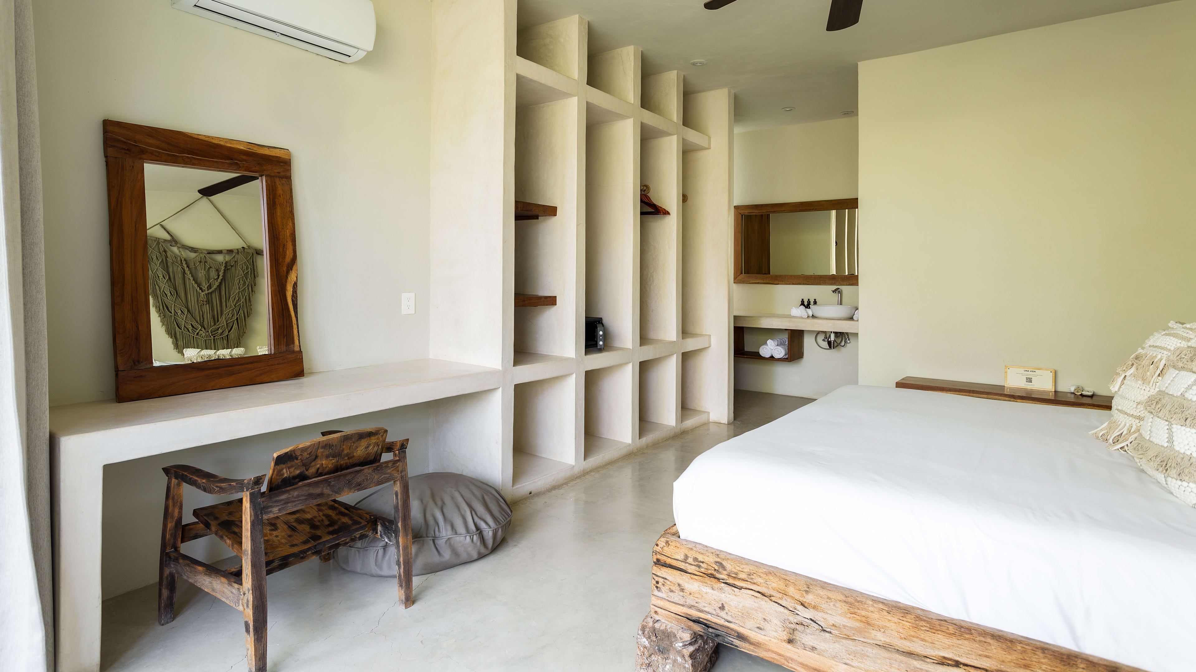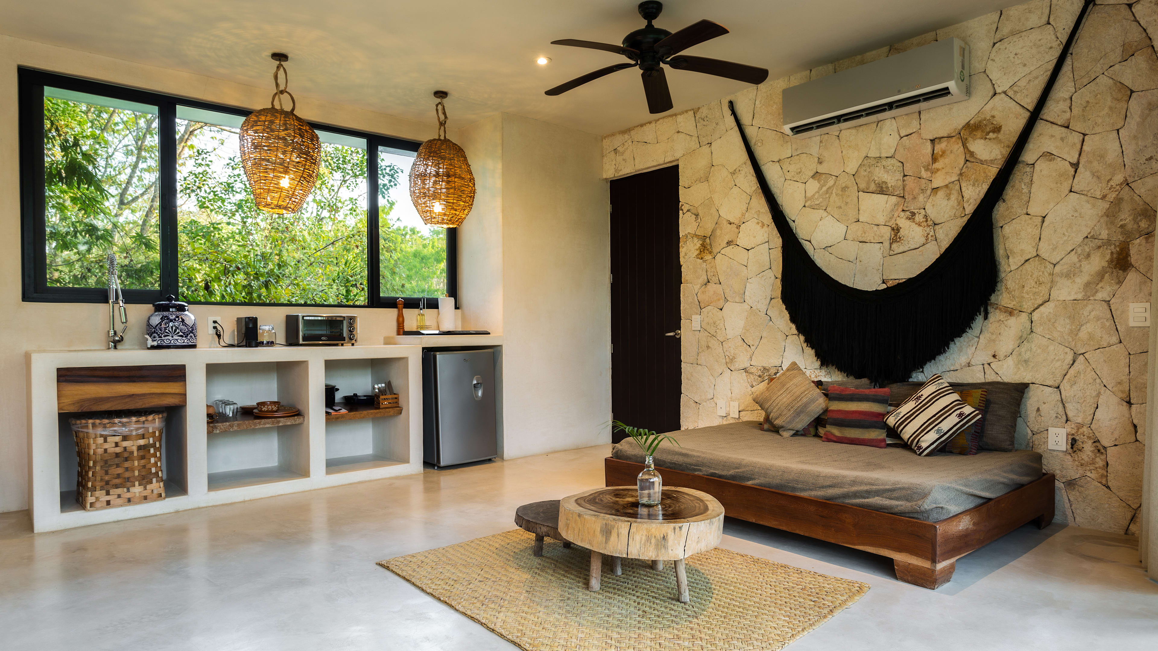 Yoga shala; temazcal (sweat lodge); bikes to borrow; laundry service; concierge; free WiFi in rooms and some communal areas (not property-wide). In rooms: air-conditioning and ceiling fan; coffee maker, and free bottled water.