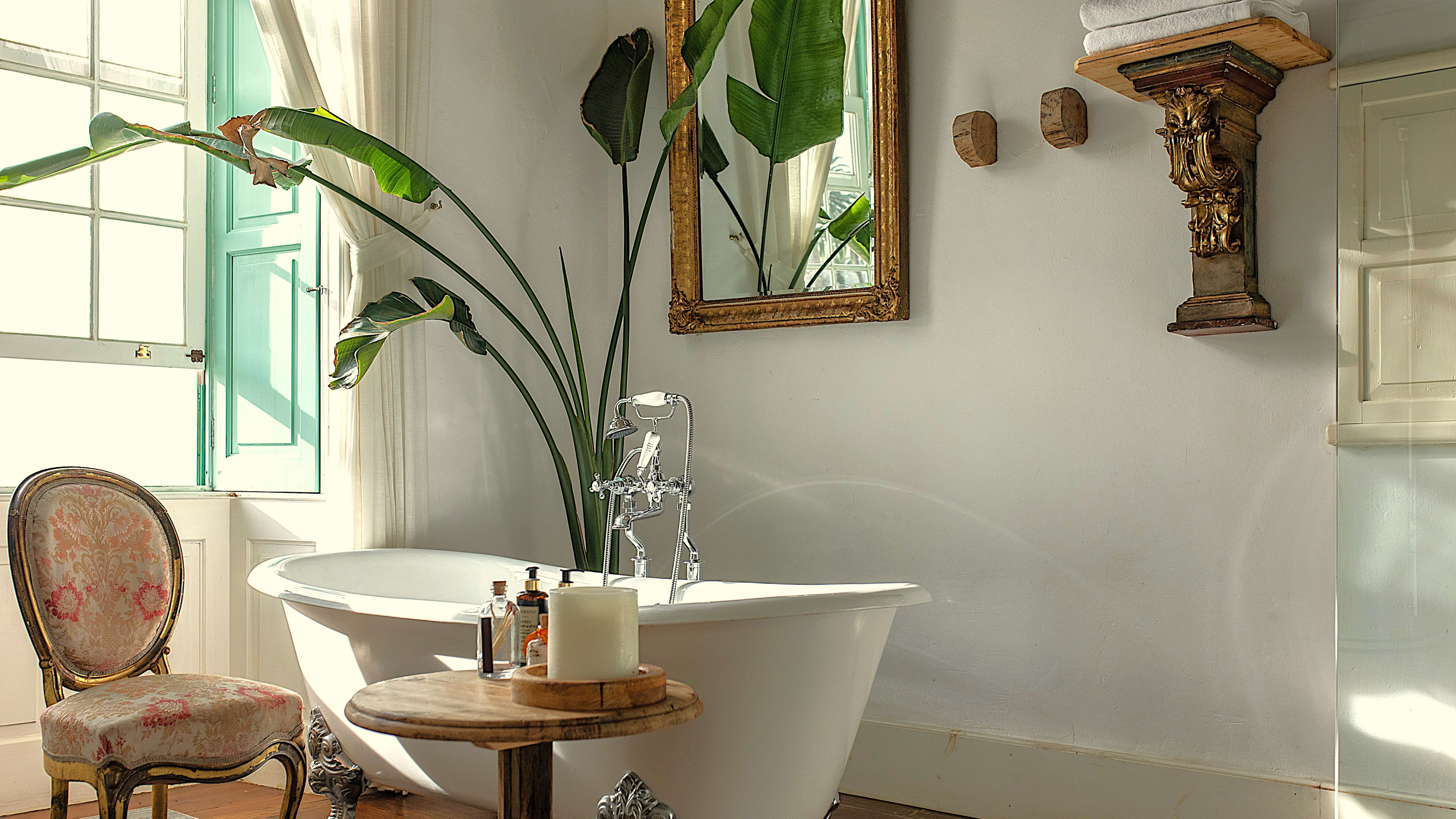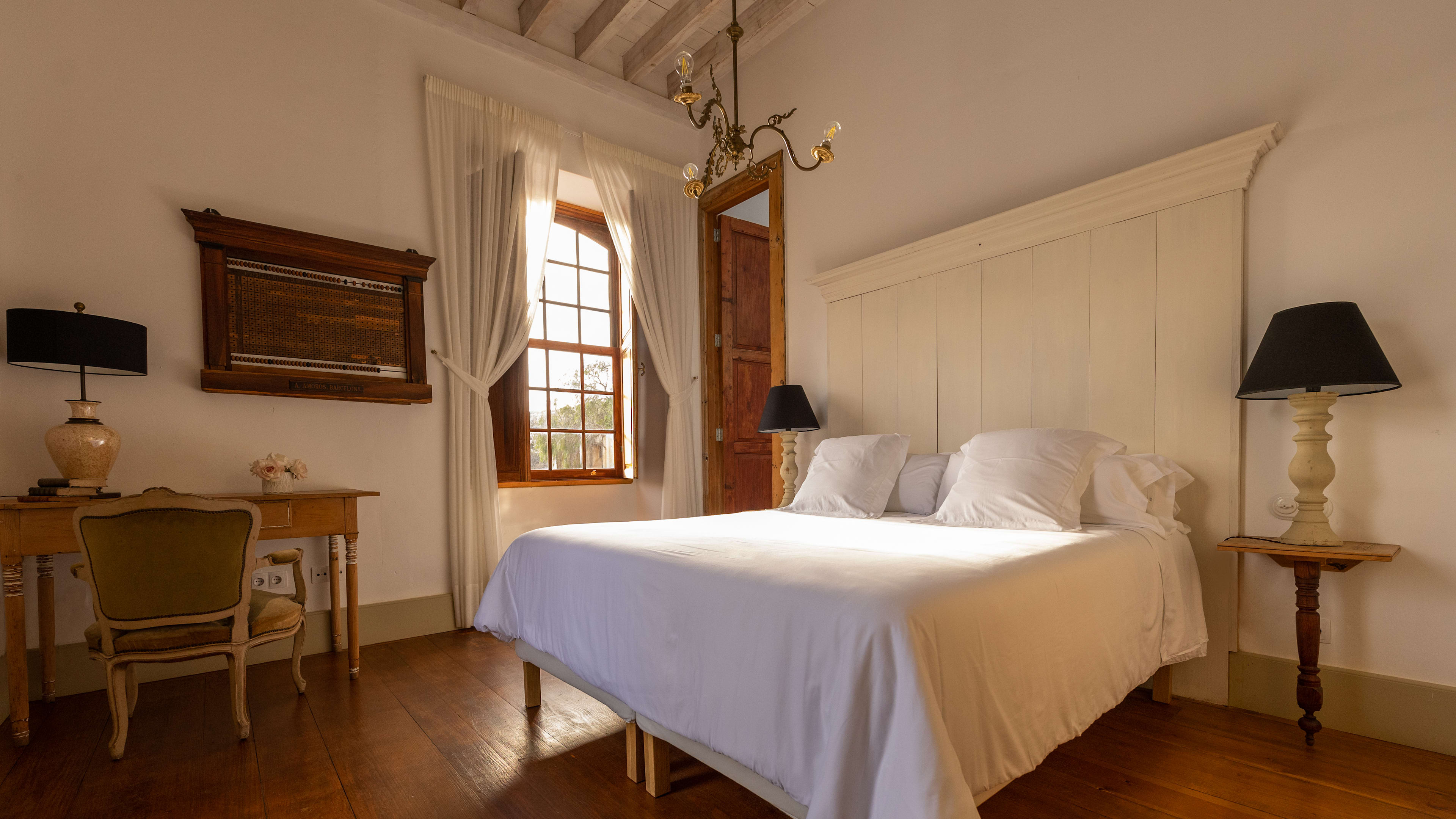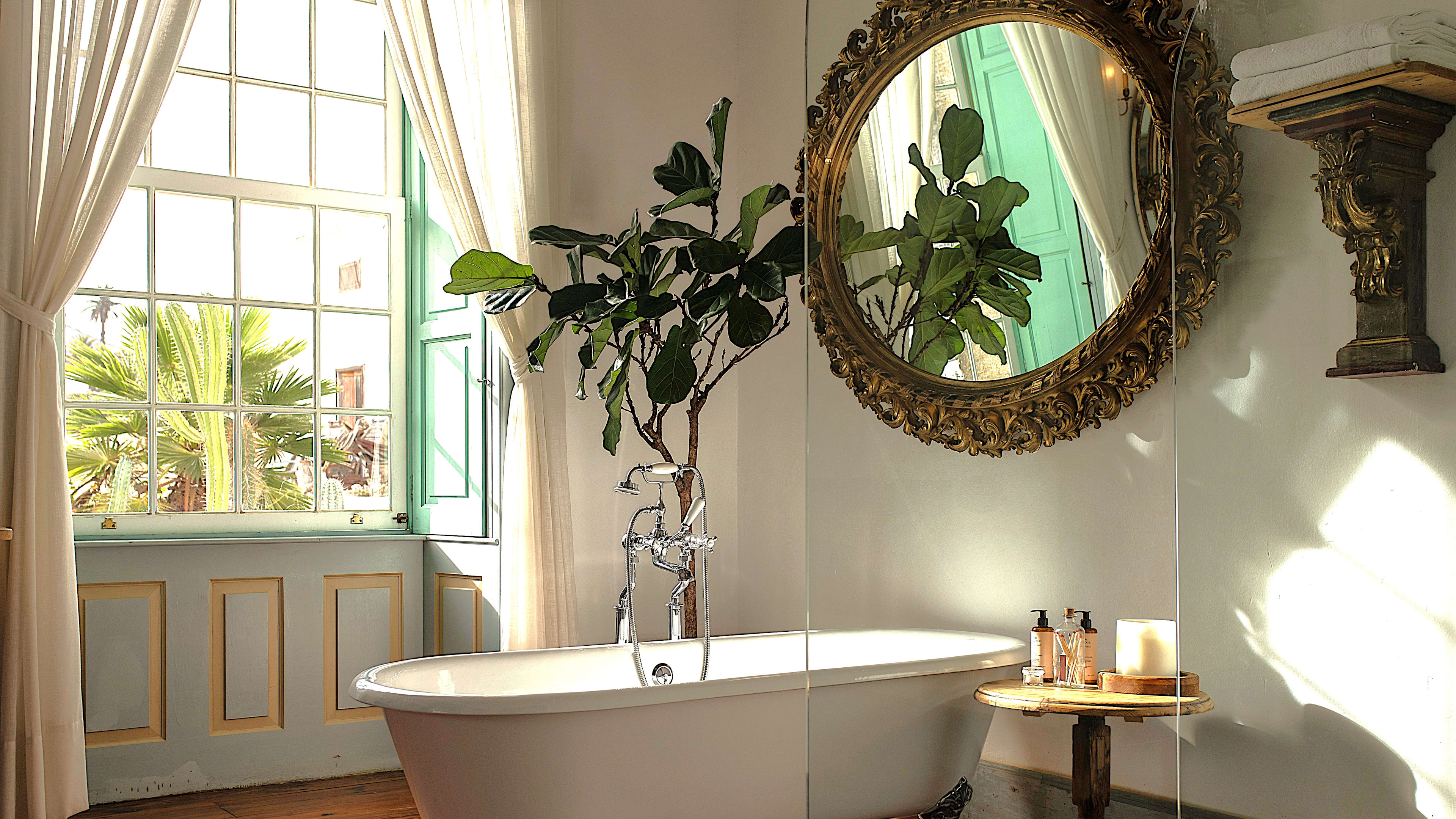 It’s room number 1 for a reason; mainly, the remarkably spacious bathroom and the standalone vintage tub that adorns its centre. Room number 5 is another heartbreaker with its palm-painted panels crowning the bed.