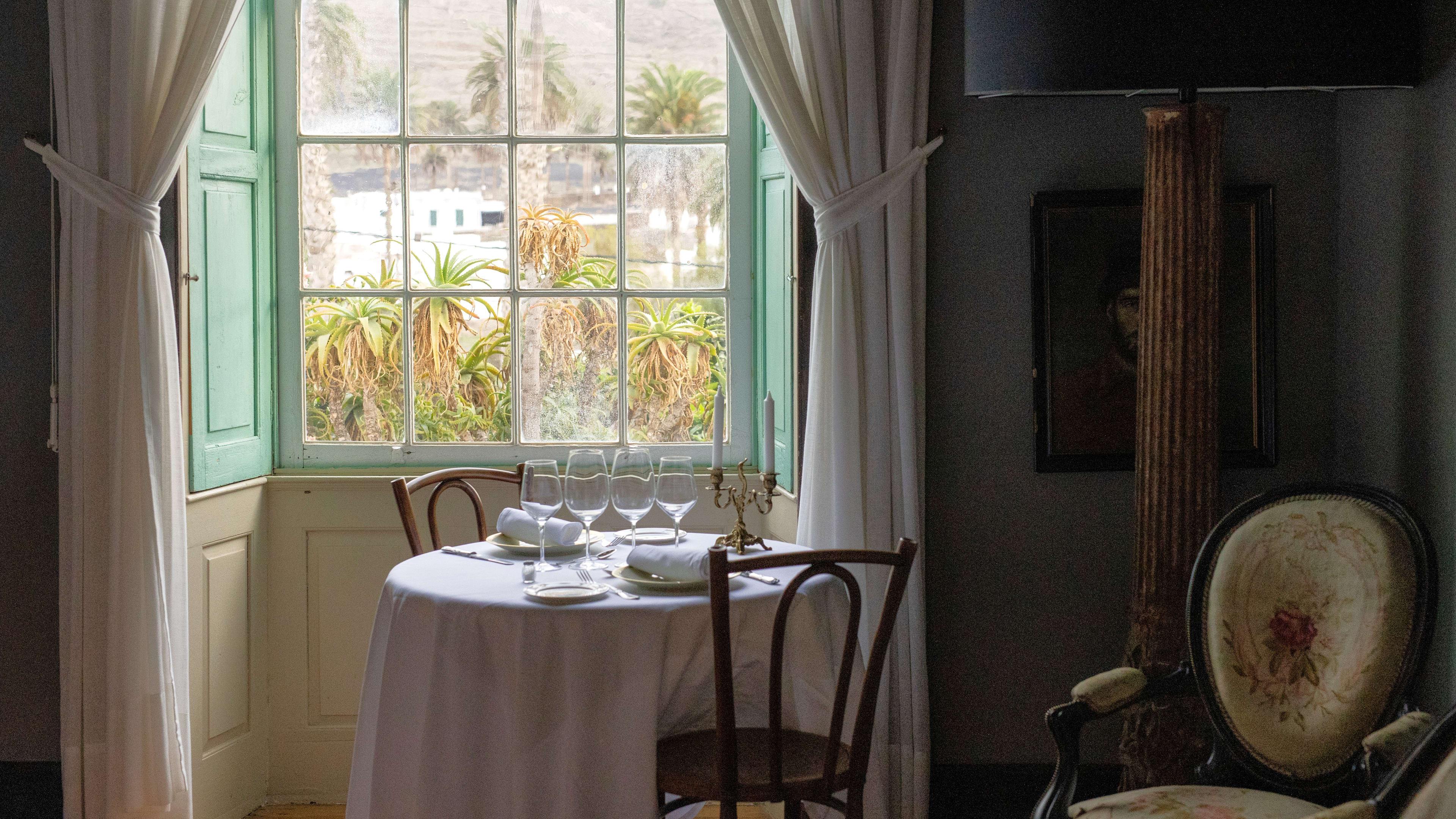 There’s no bar as such, but guests are welcome to order a glass of Canarian wine to take on the upper terrace, patio, salon or library.