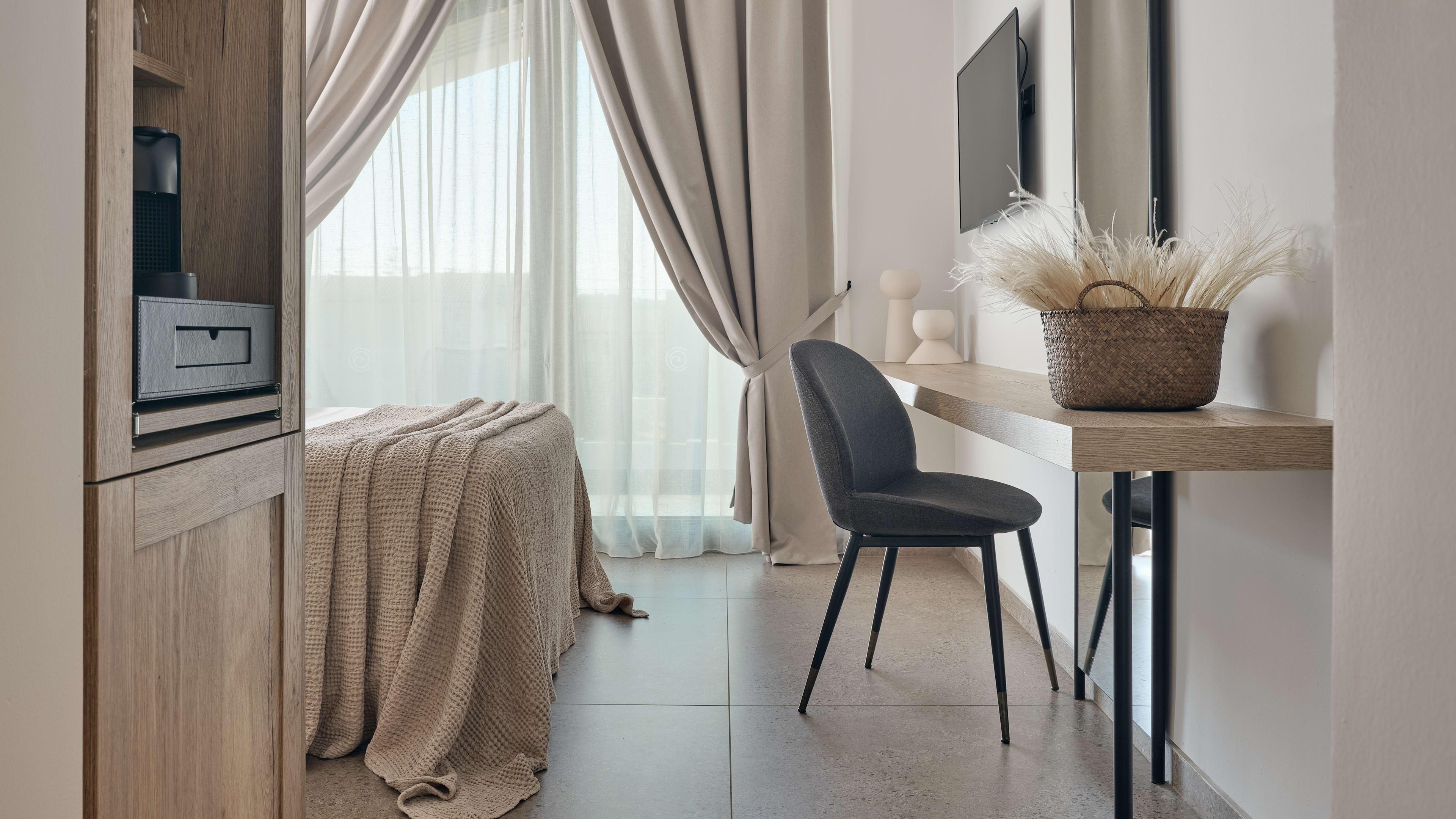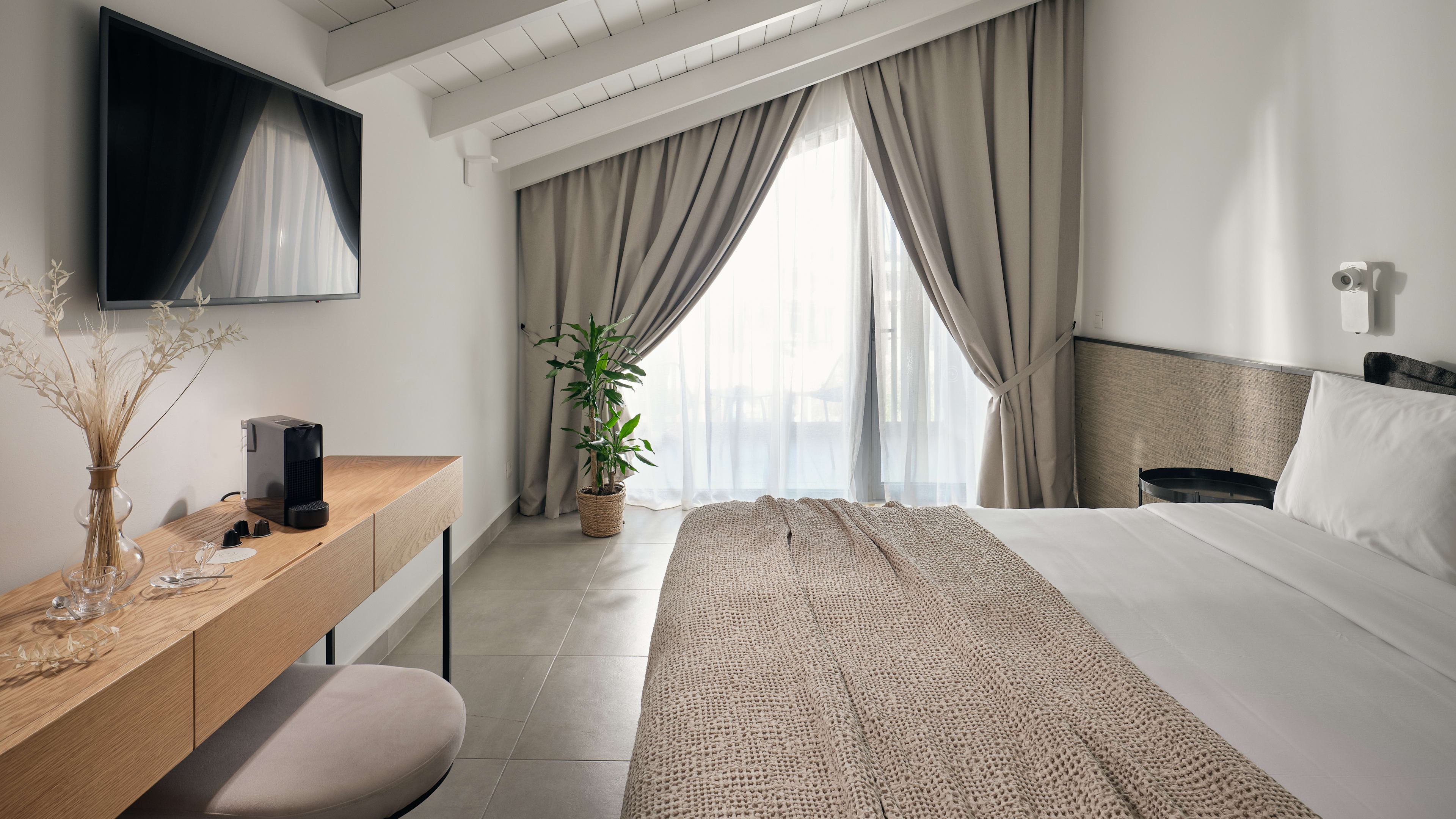 Free WiFI throughout. In rooms: Nespresso coffee machine, TV, air-conditioning, fridge, free bottled water and Argan Source bath products.