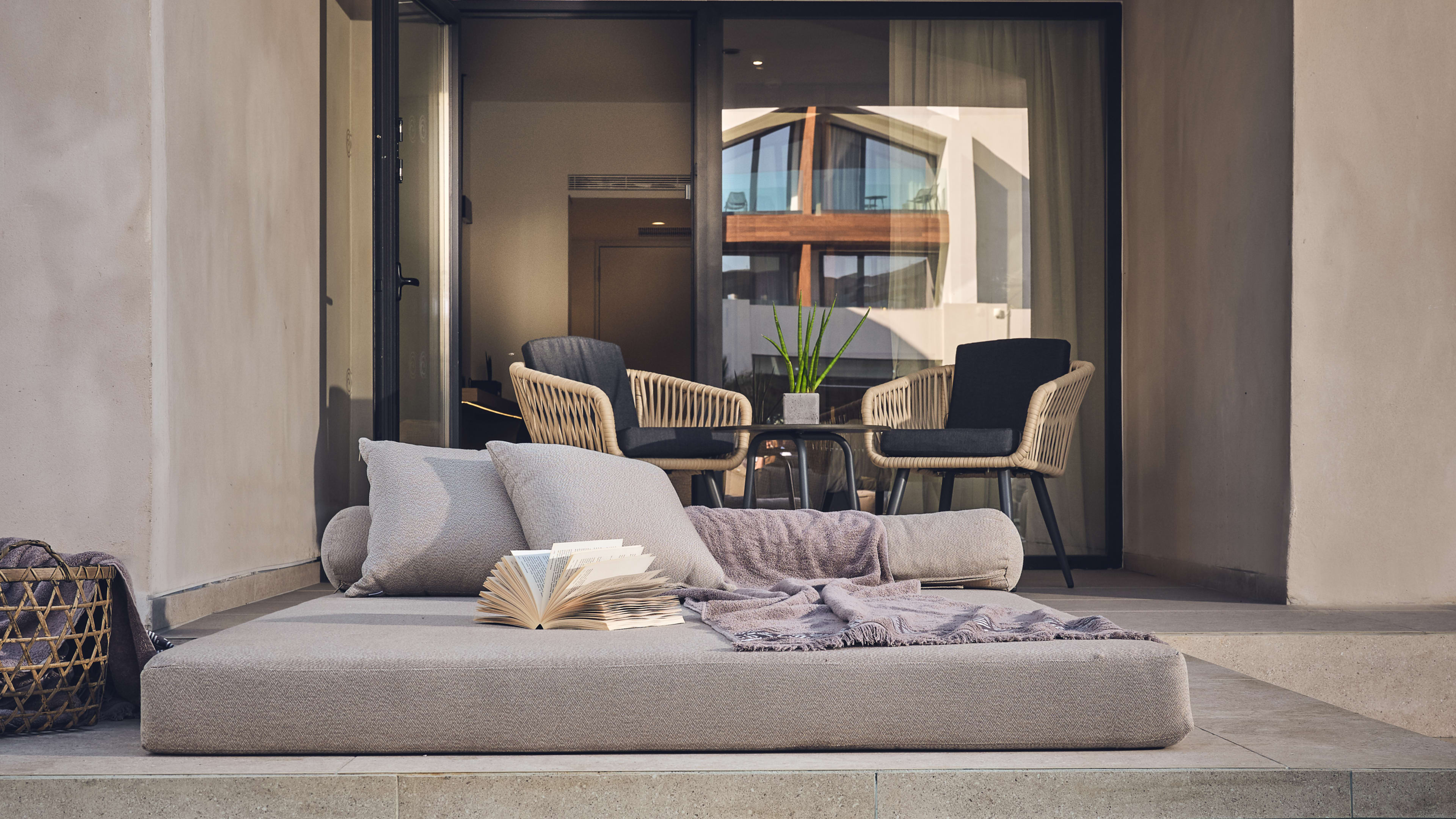 The hotel is a 20-minute drive from the island’s international airport. Direct flights here land from all over Europe. Hotel transfers can be arranged on request.