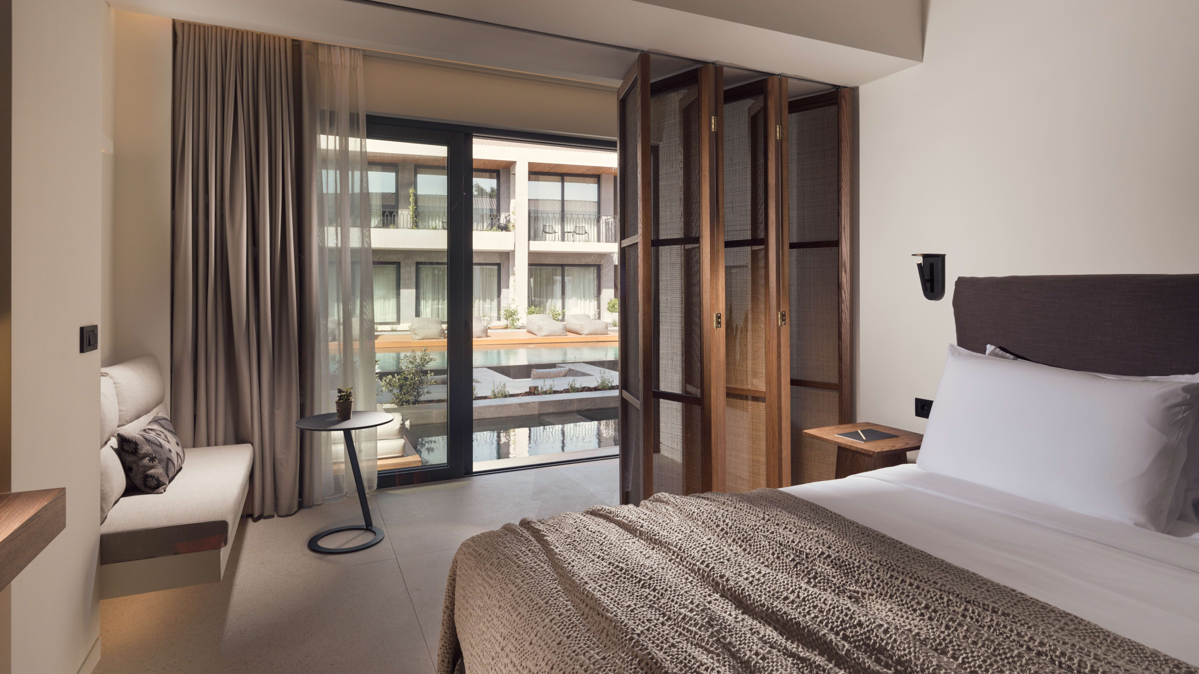 Lentika Restaurant is named for the sedan-style boxes Zakynthian royals would be discreetly ferried about in – although we’re not sure why, as the space is light-flooded, commodious and almost incorrigibly social, with its huge shared table as a centrepiece. It’s similar in style to the rest of the hotel: luxe yet simple with earthy hues and organic textures, and the terrace overlooks the goings-on around the pool. The island’s farms, fisheries and markets and some home grows supply the restaurant, and chef Christoforos Peskias’ menu, which gets refreshed frequently, is proudly Zakynthian, but there’s some inspiration from further afield, too.