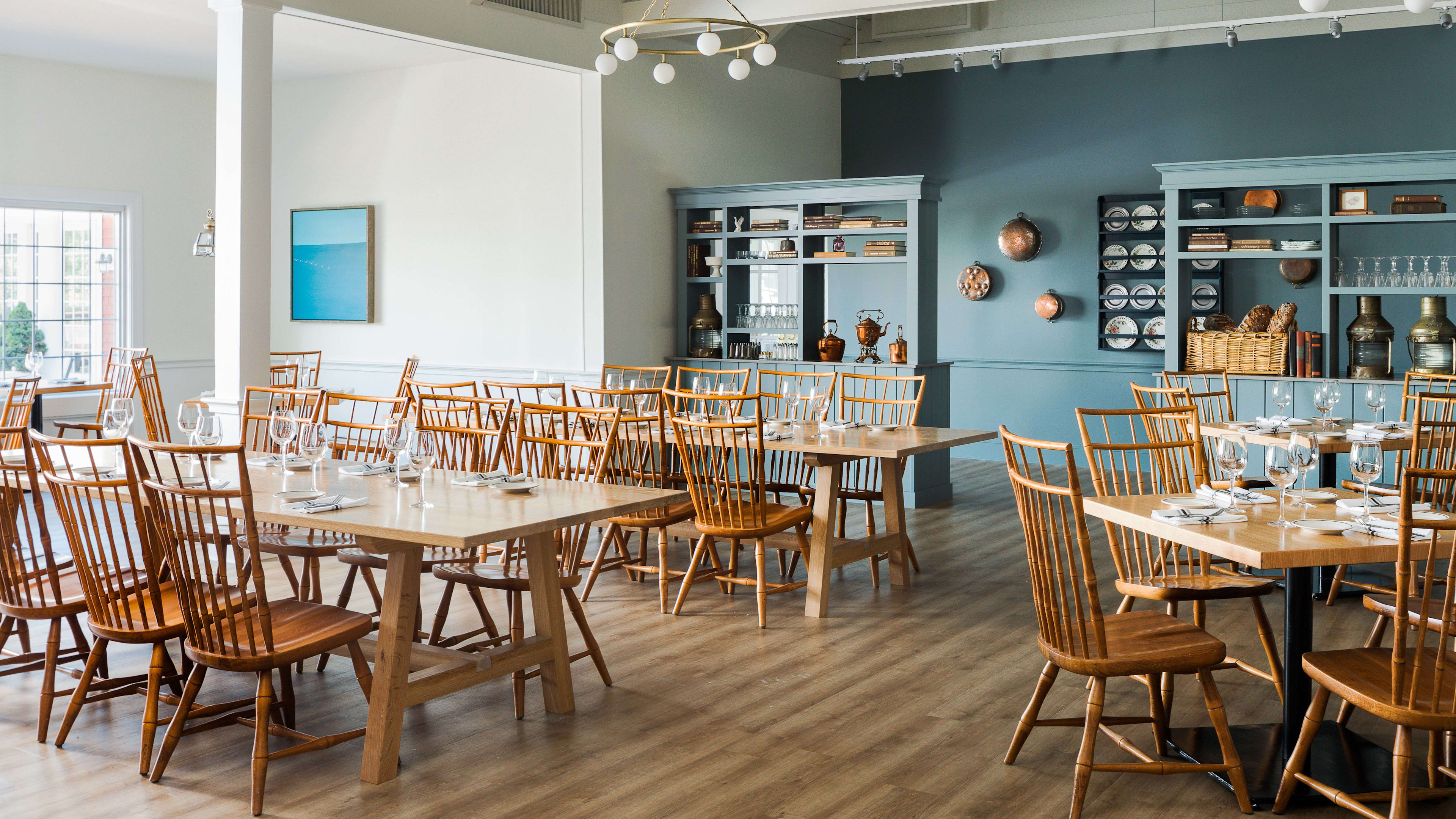 Eli’s Tavern takes cues from the hotel’s farmhouse heritage, with vaulted beamed ceilings, wooden furnishings and duck-egg-blue details. Traditional New England fare gets a modern makeover, and indulgent stand-outs include the generously stacked cheeseburger and moreish spinach-artichoke dip. Cape Cod’s community spirit prevails at Eli’s, most palpably at weekly events, where nights of Jamaican cooking or local oysters are filled with the hum of neighborly nattering, regardless of where you’re from.