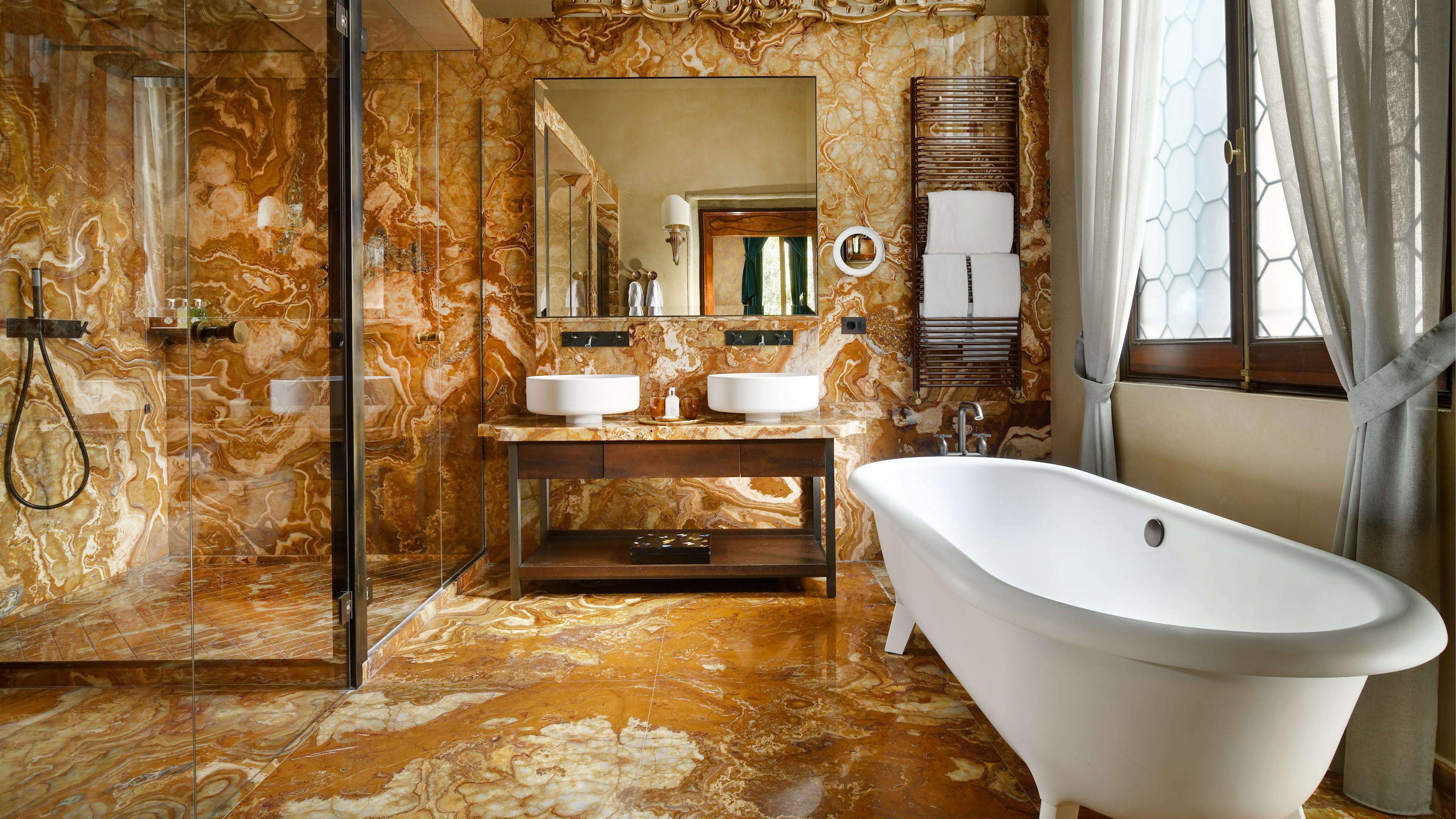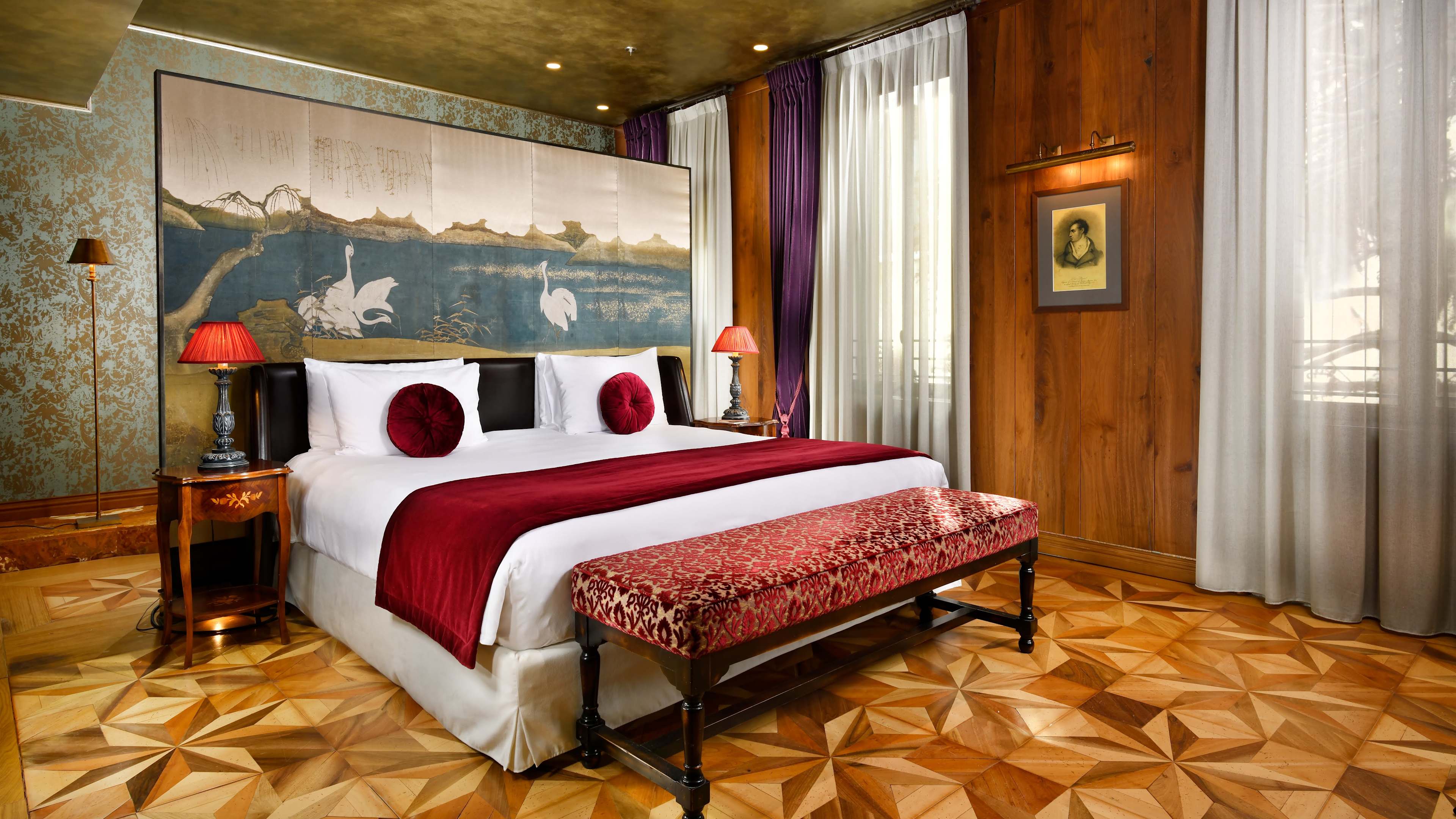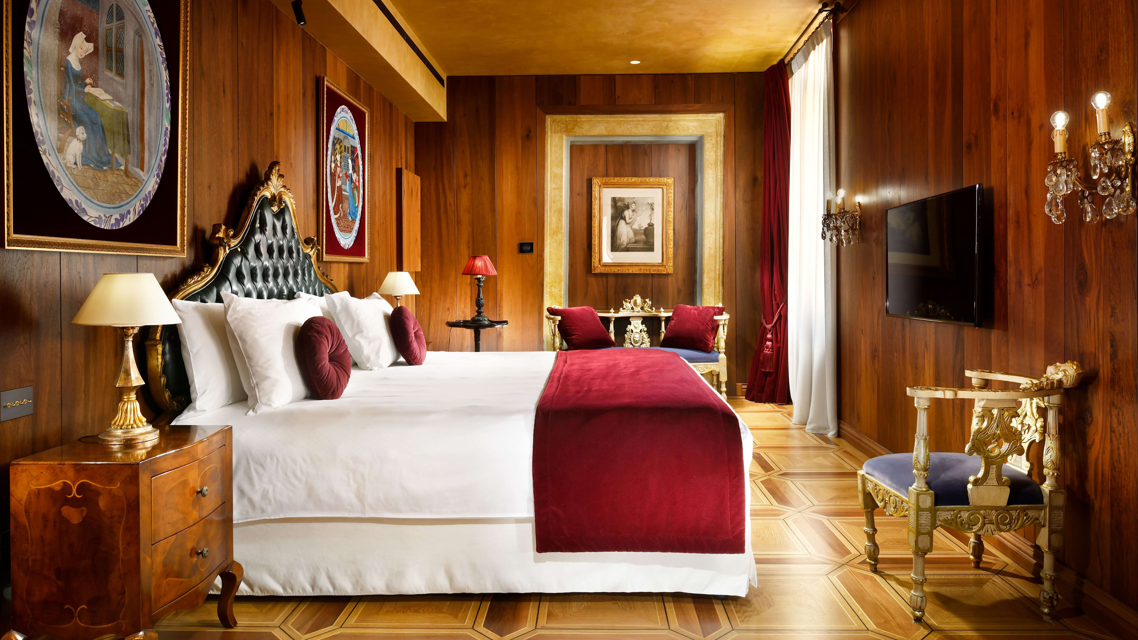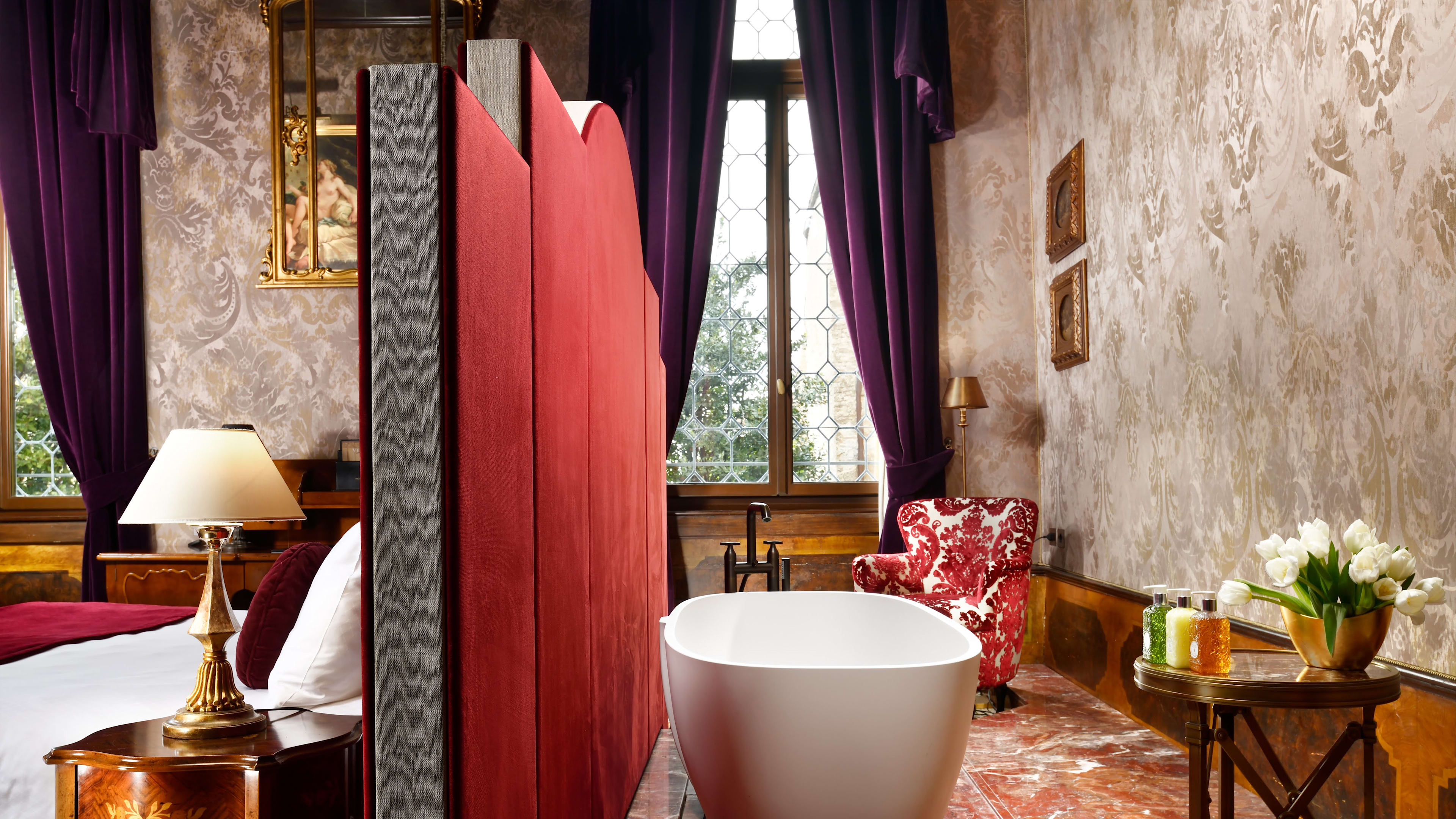 The world’s first famous female author, Christine de Pizan, hailed from Venice; honour her memory by bedding down in the suite that shares her name. In addition to its feminist credentials, this suite has wooden wall panels, parquet flooring, swag-tastic furnishings and a cosy lounge with impressive views of the Grand Canal. For something with a more masculine heritage, opt for the Lord Byron Suite, which has a covetable parquet floor, walls clad in silk and plenty of secret thrills in store: a bath tub tucked away behind a partition by the bed, a hidden seating area where you can lounge (and read works by the famous poet, natch) and more…