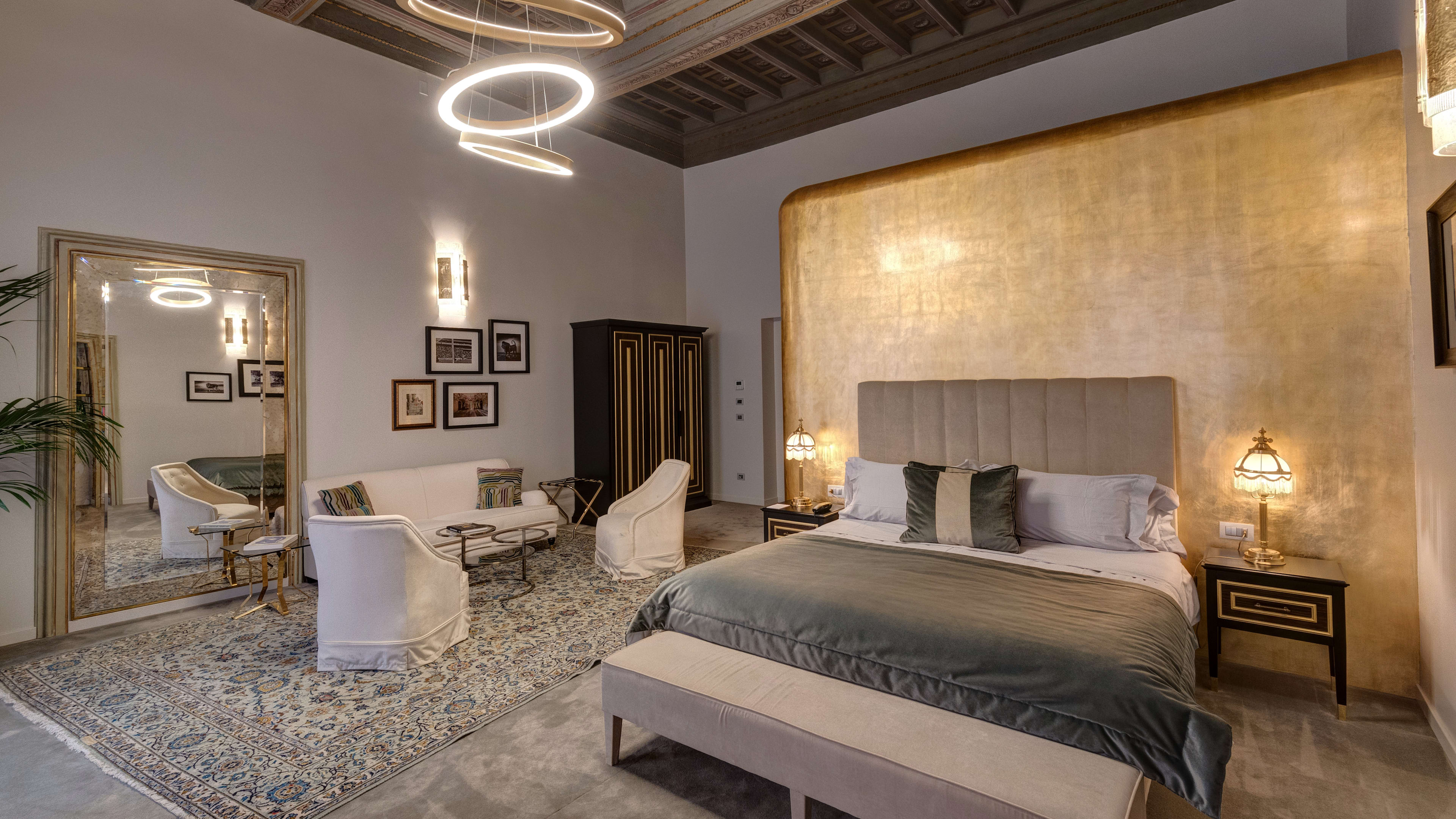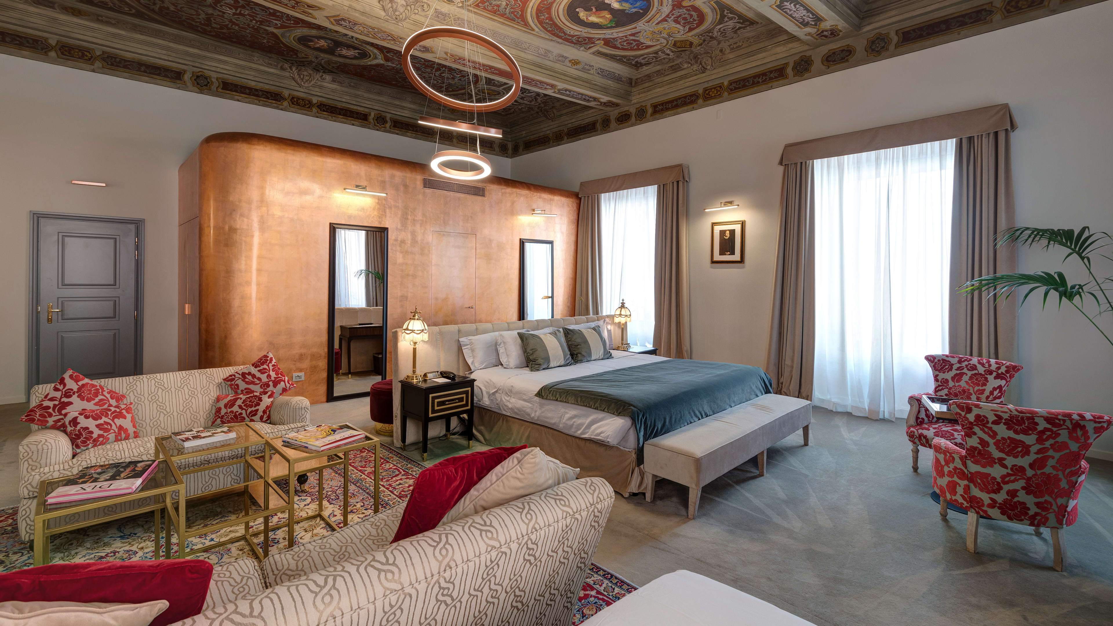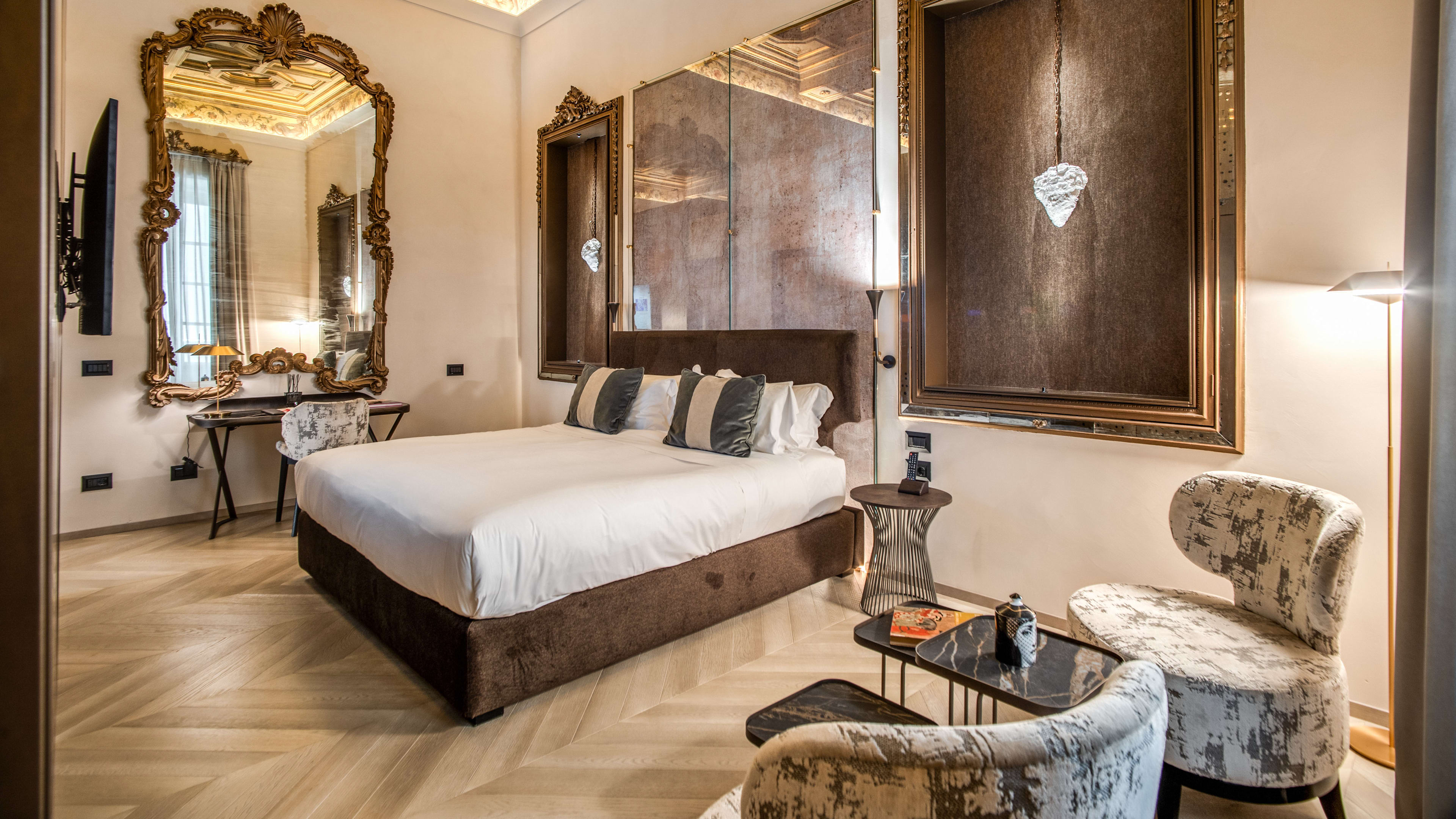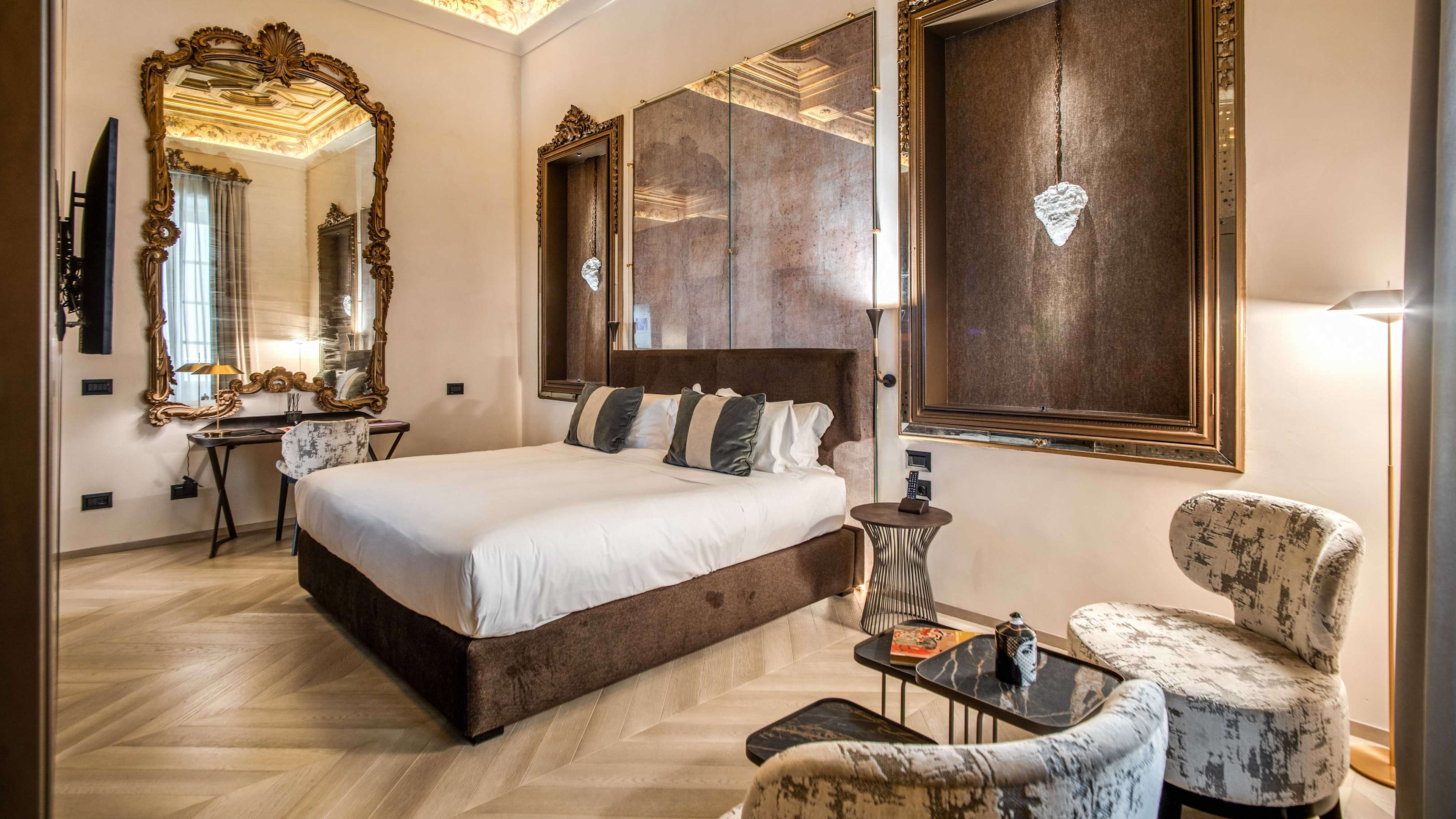 They might be the priciest of the lot, but the Deluxe and Presidential Suites are well worth splashing out for. Quite literally fit for the counts and cardinals that once lived in them, these suites lay claim to the best of the palazzo’s period features, including elaborately frescoed ceilings and walls clad in coloured marble. In some, the bathrooms are encased in a golden structure that meant no extra interior walls needed to be added, ensuring every detail of the ceiling is visible.