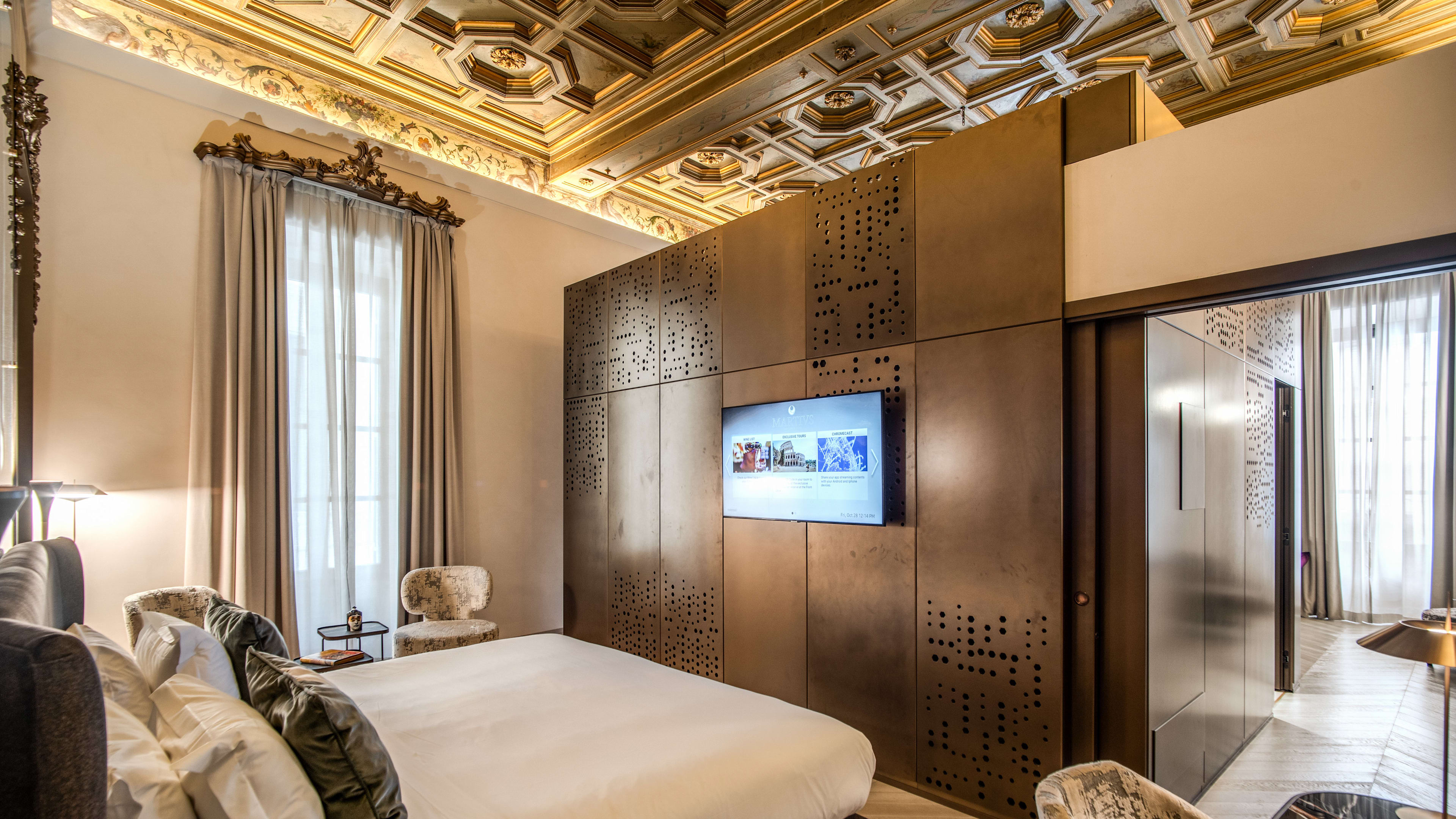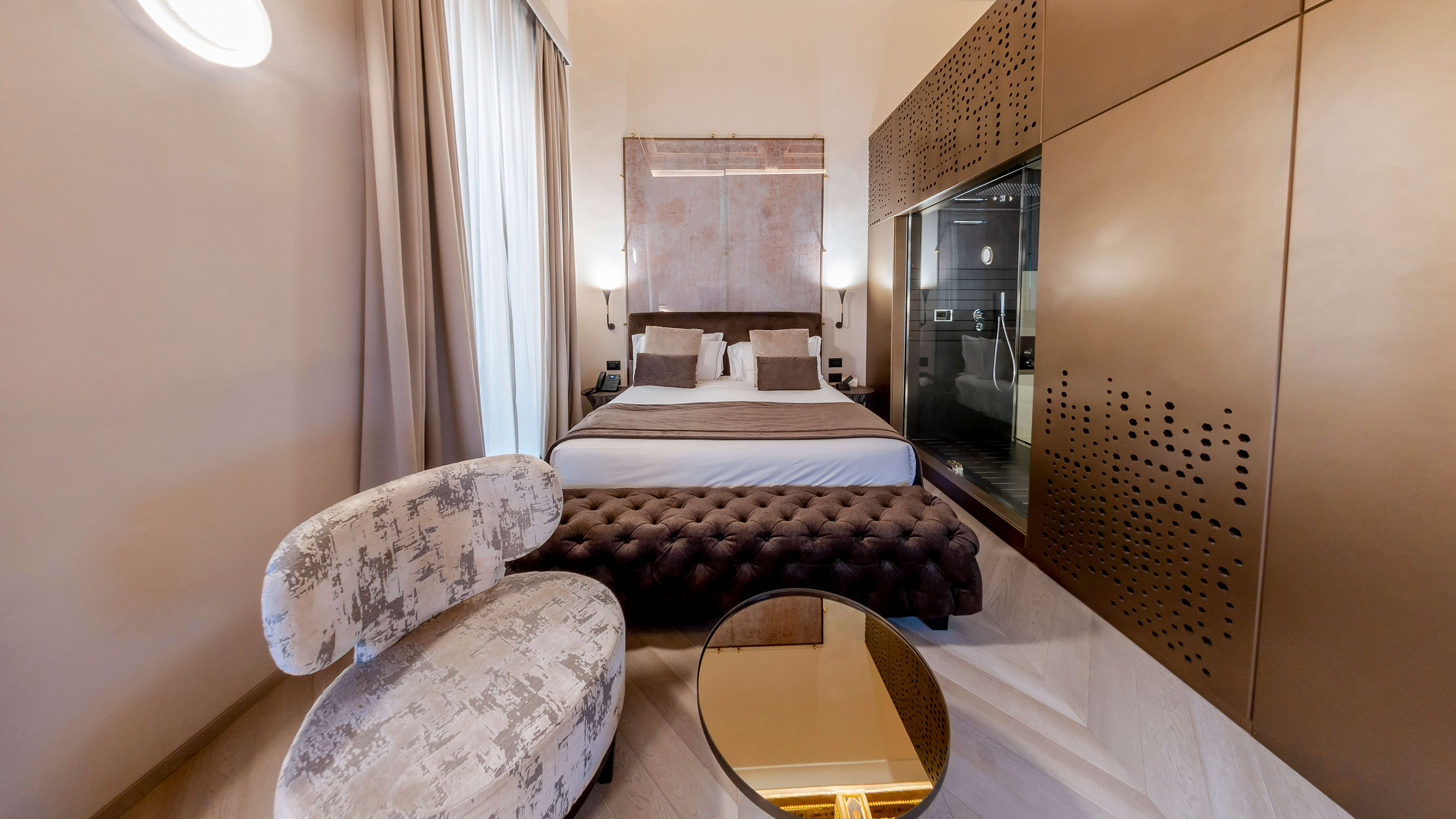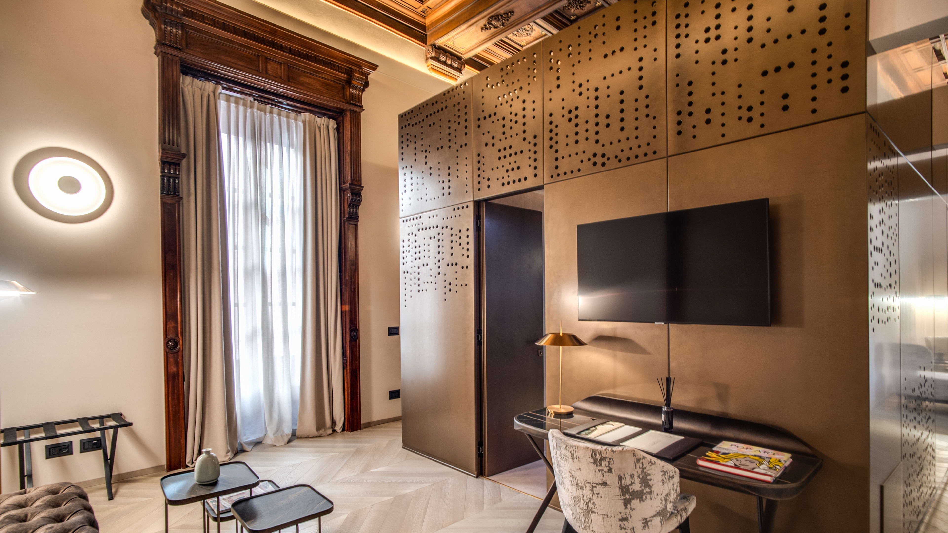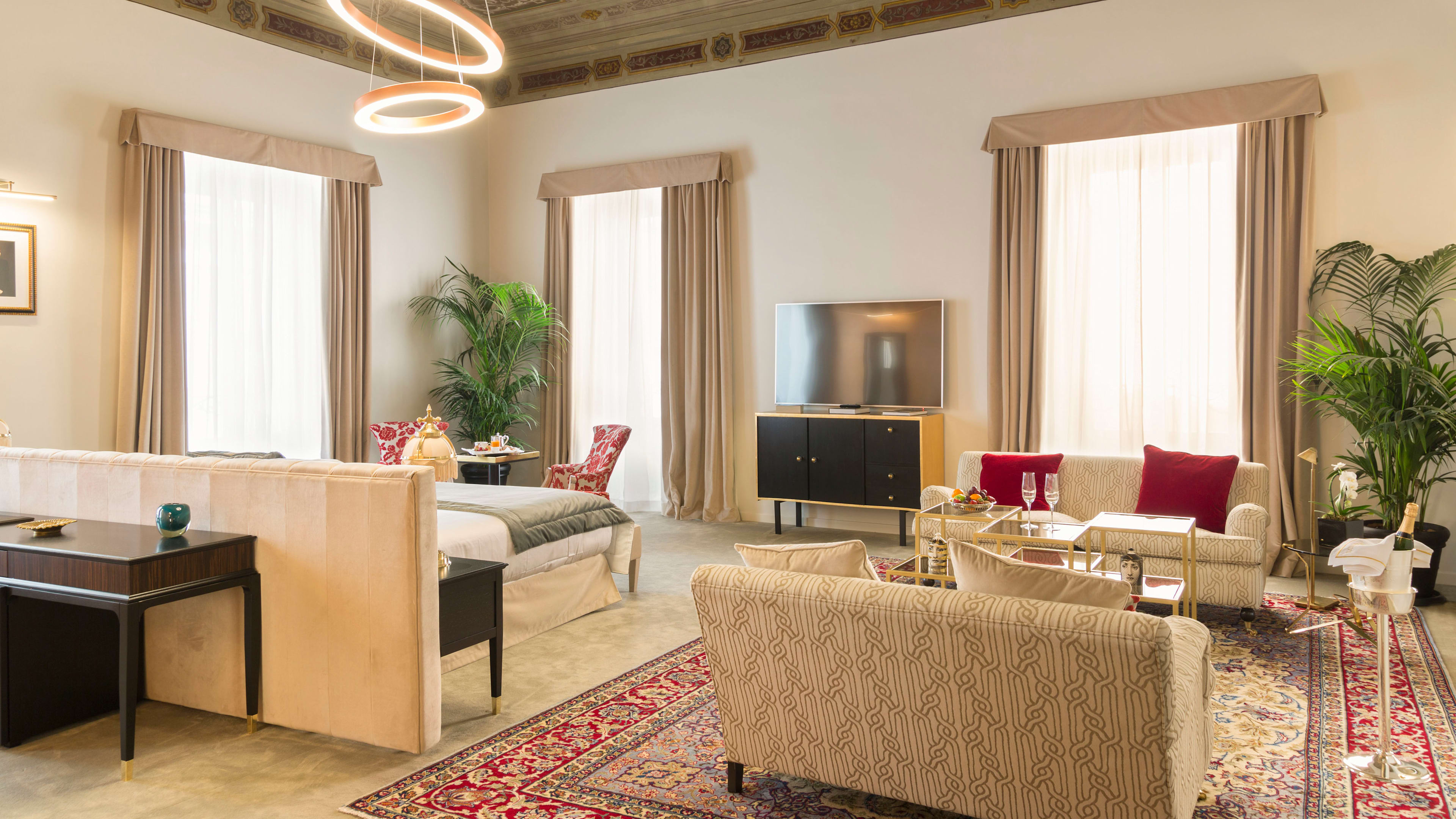 They might be the priciest of the lot, but the Deluxe and Presidential Suites are well worth splashing out for. Quite literally fit for the counts and cardinals that once lived in them, these suites lay claim to the best of the palazzo’s period features, including elaborately frescoed ceilings and walls clad in coloured marble. In some, the bathrooms are encased in a golden structure that meant no extra interior walls needed to be added, ensuring every detail of the ceiling is visible.