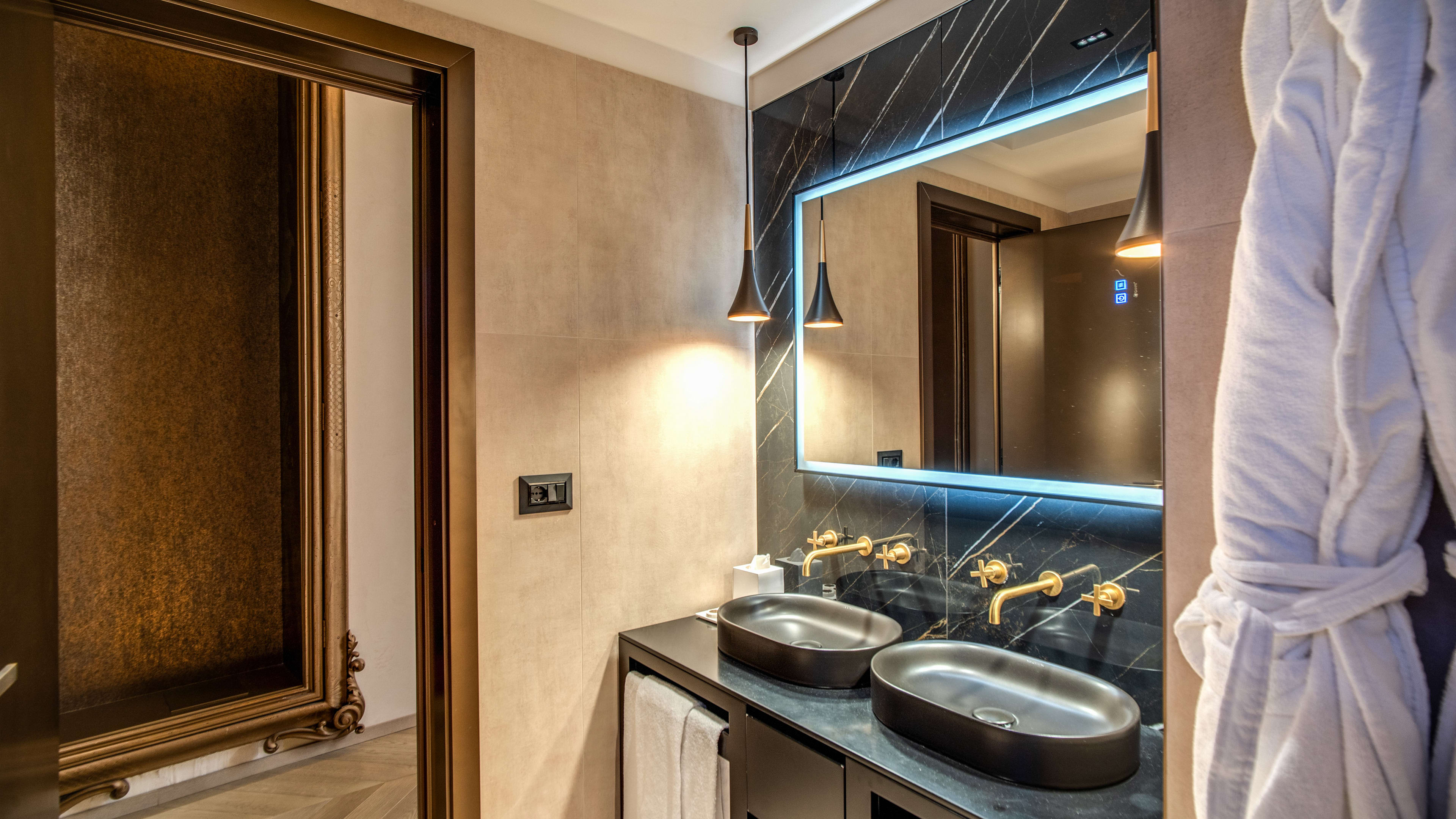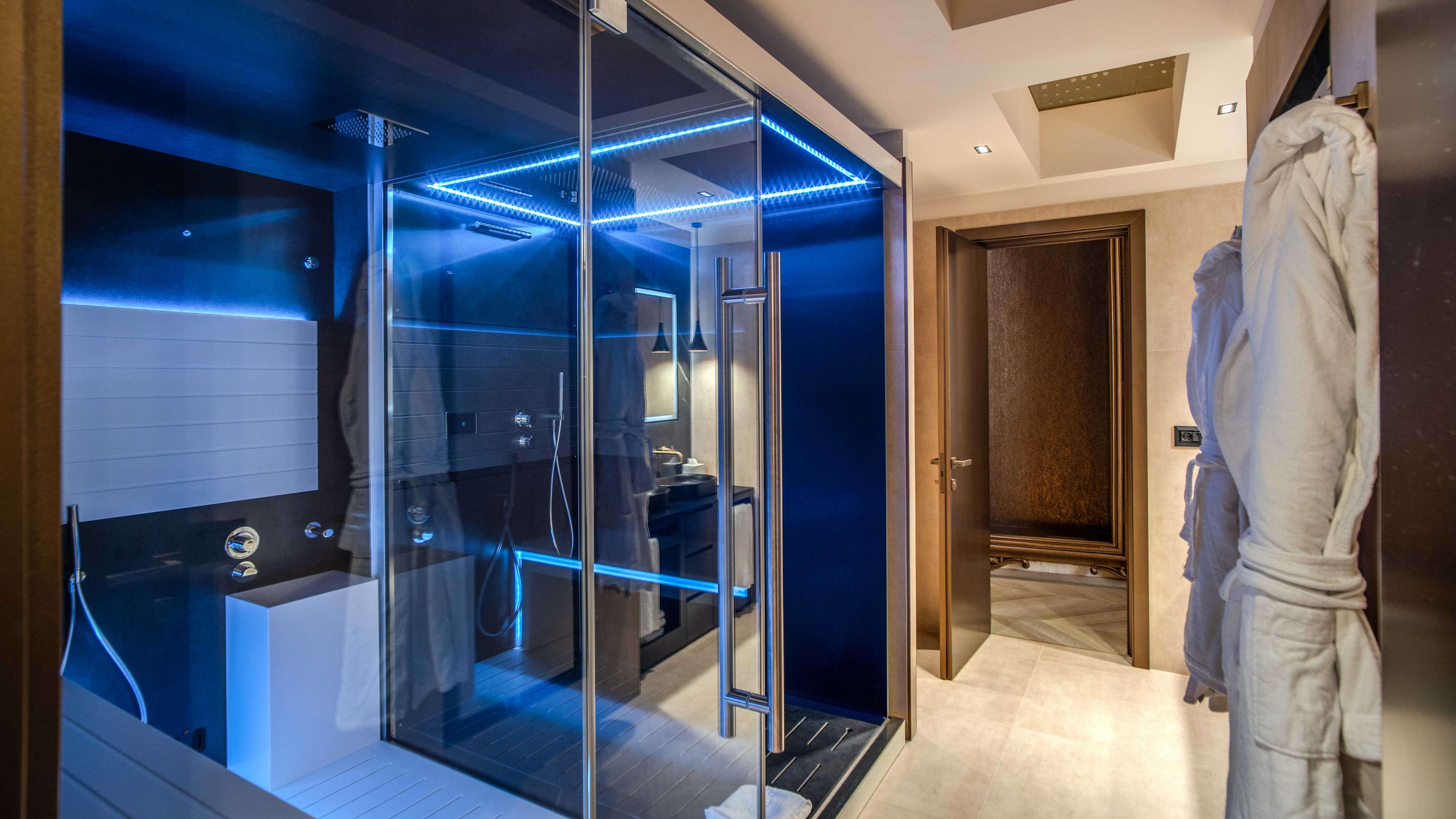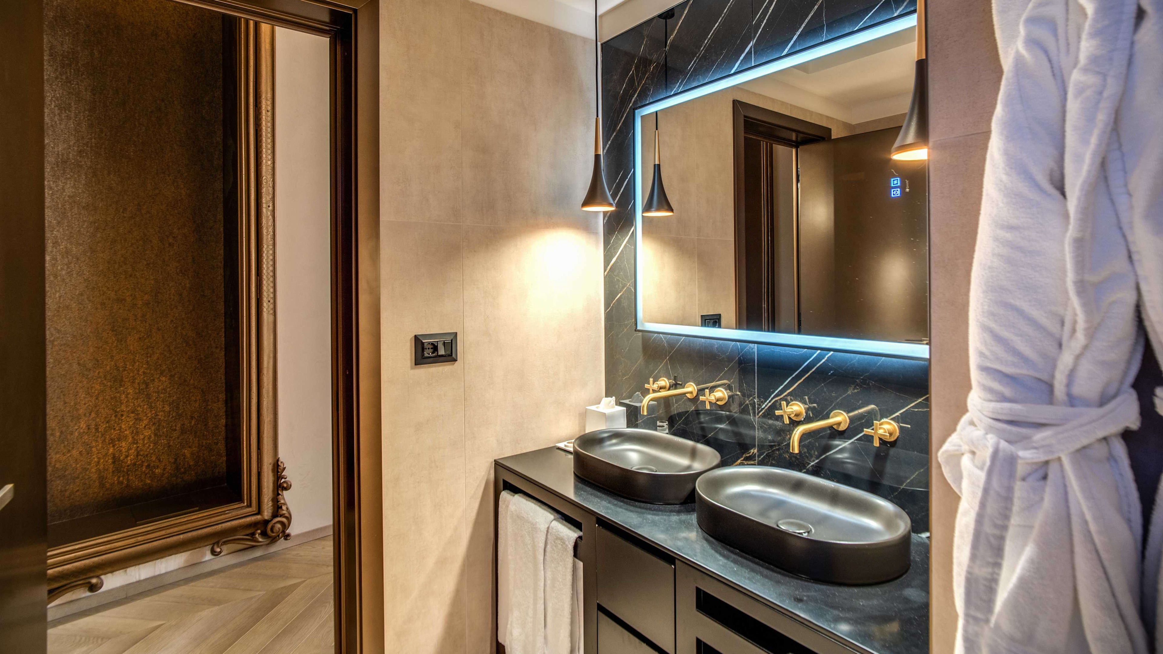 A silk dressing gown will chime well with the suites’ aristocratic air.