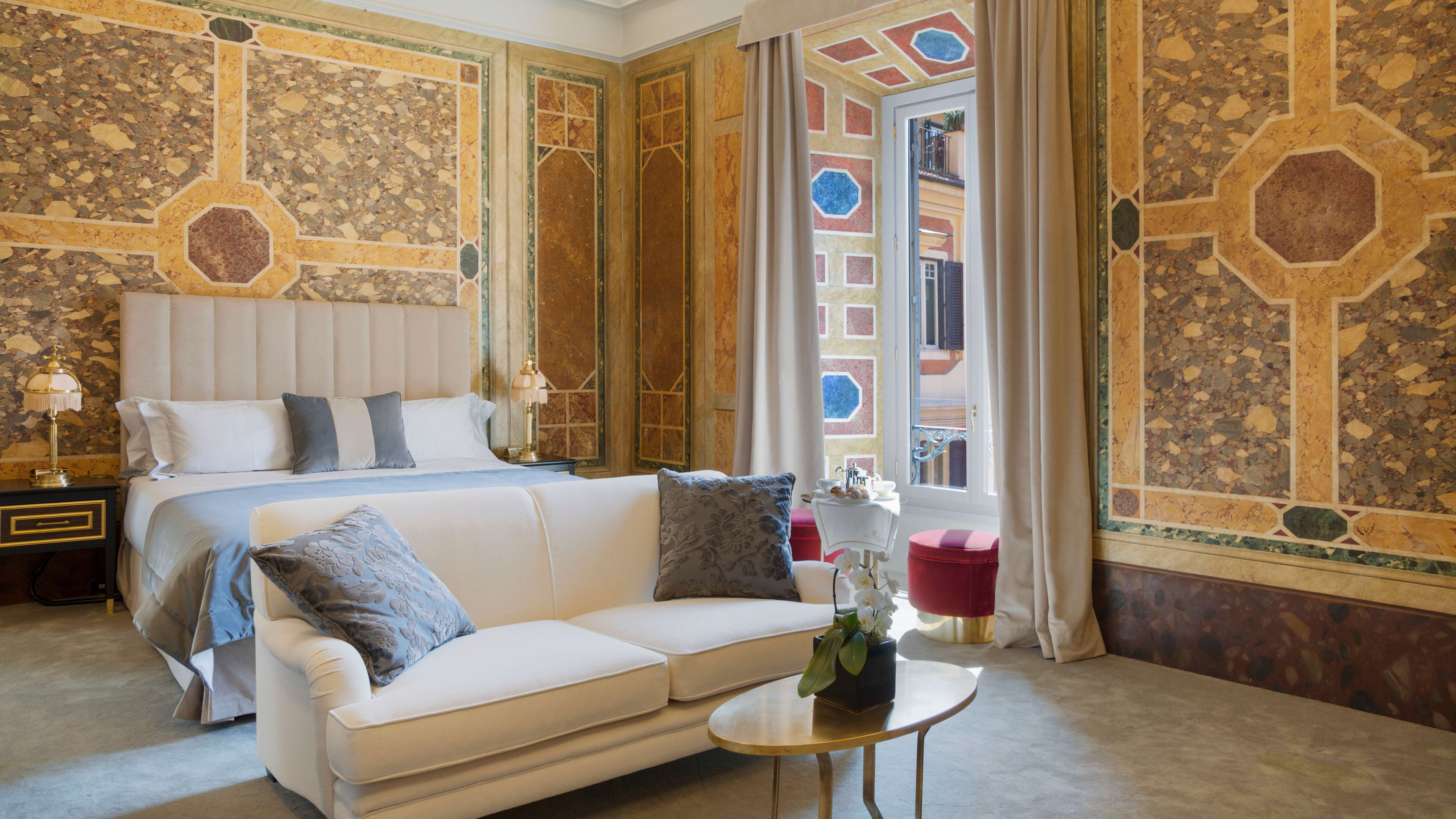 Once home to counts and cardinals, Rome hotel Martius Private Suites Hotel pairs the pedigree of a palazzo with the privacy of serviced apartments. This set of eight sumptuous suites are part of the Palazzo Lavaggi, built during the Renaissance and remodeled in 1830 for a family of blue-blooded Sicilians. Soaring ceilings, plush fabrics and grand bathrooms come as standard, and the largest suites have period features like frescoed ceilings and walls clad in coloured marble. No less impressive is the location: walk through a charming courtyard and set of thick wooden doors, and suddenly you’re on a cobbled street in the heart of the centro storico – you can stroll to the Pantheon in five minutes, the Trevi Fountain can be reached in under 10. Landmarks aside, you’ll also have some of Rome’s best wine bars, delis, pizza parlours and restaurants right on your doorstep.