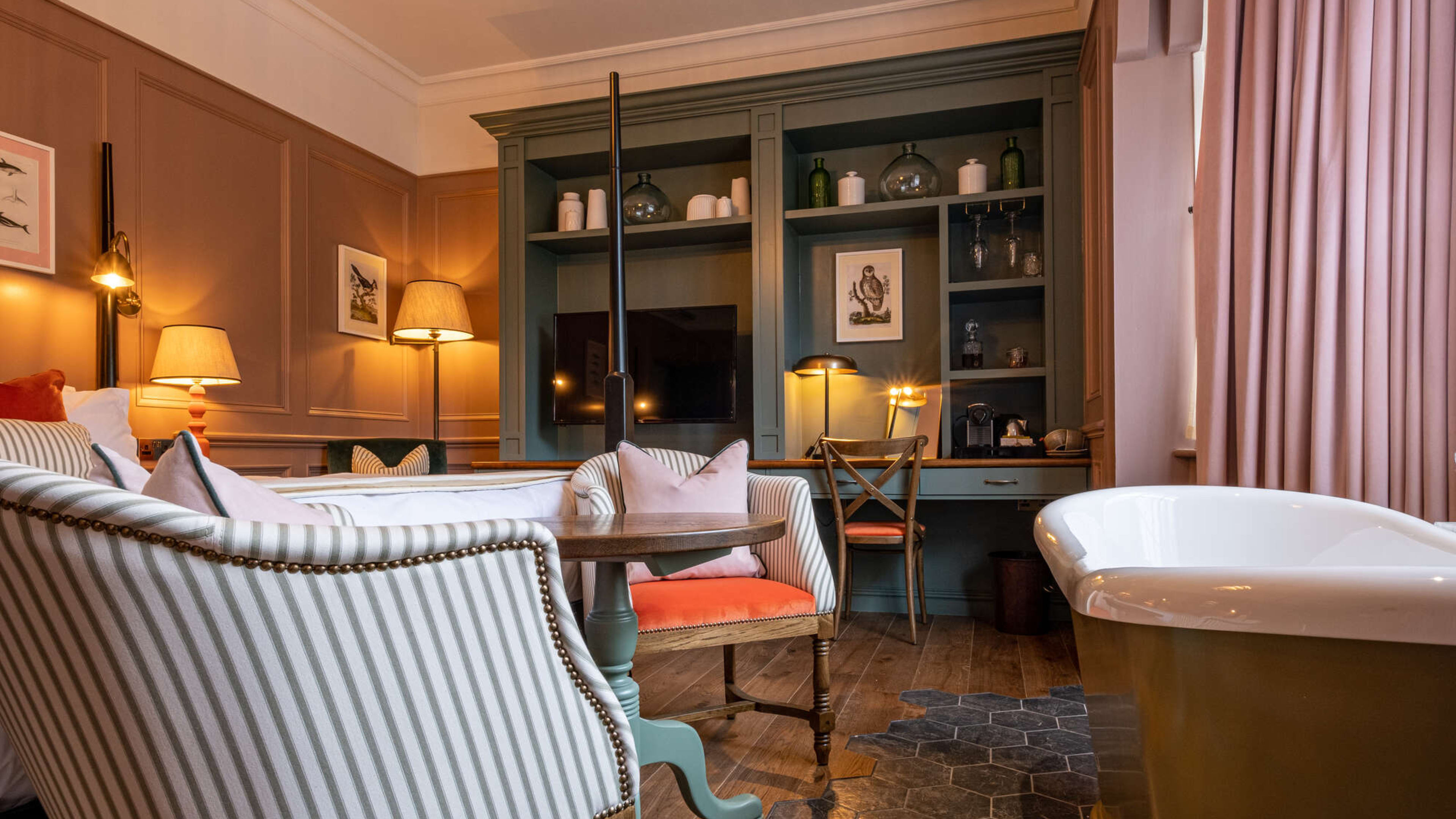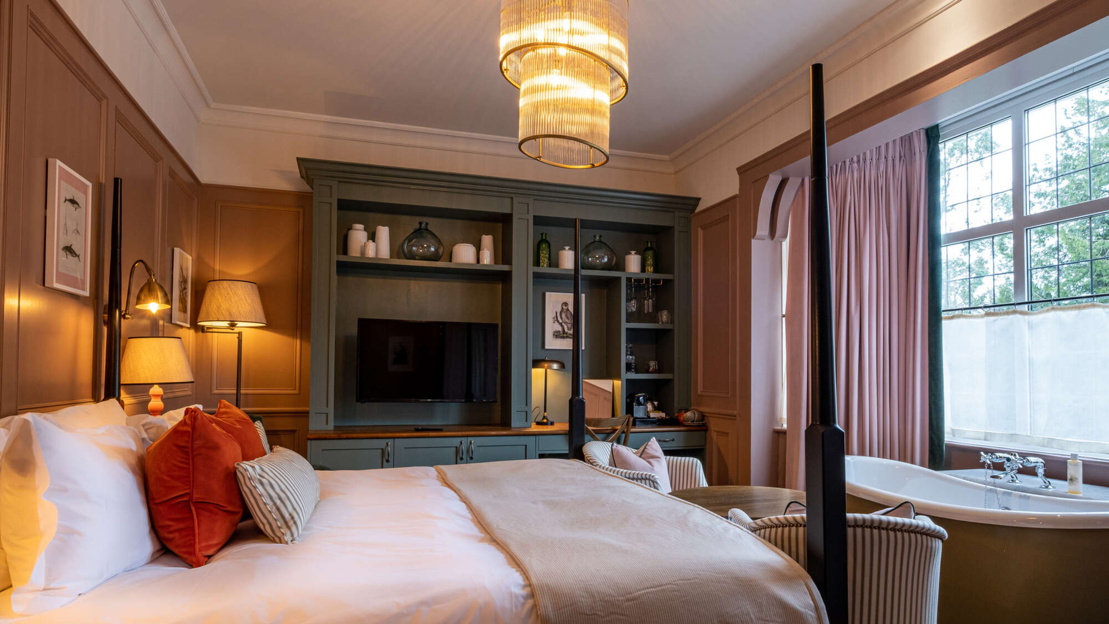They’re cockles-warmers, the lot of them, but the Feature Boutique rooms have a few extra flourishes – four-poster beds, fluffy robes and freestanding bath tubs.