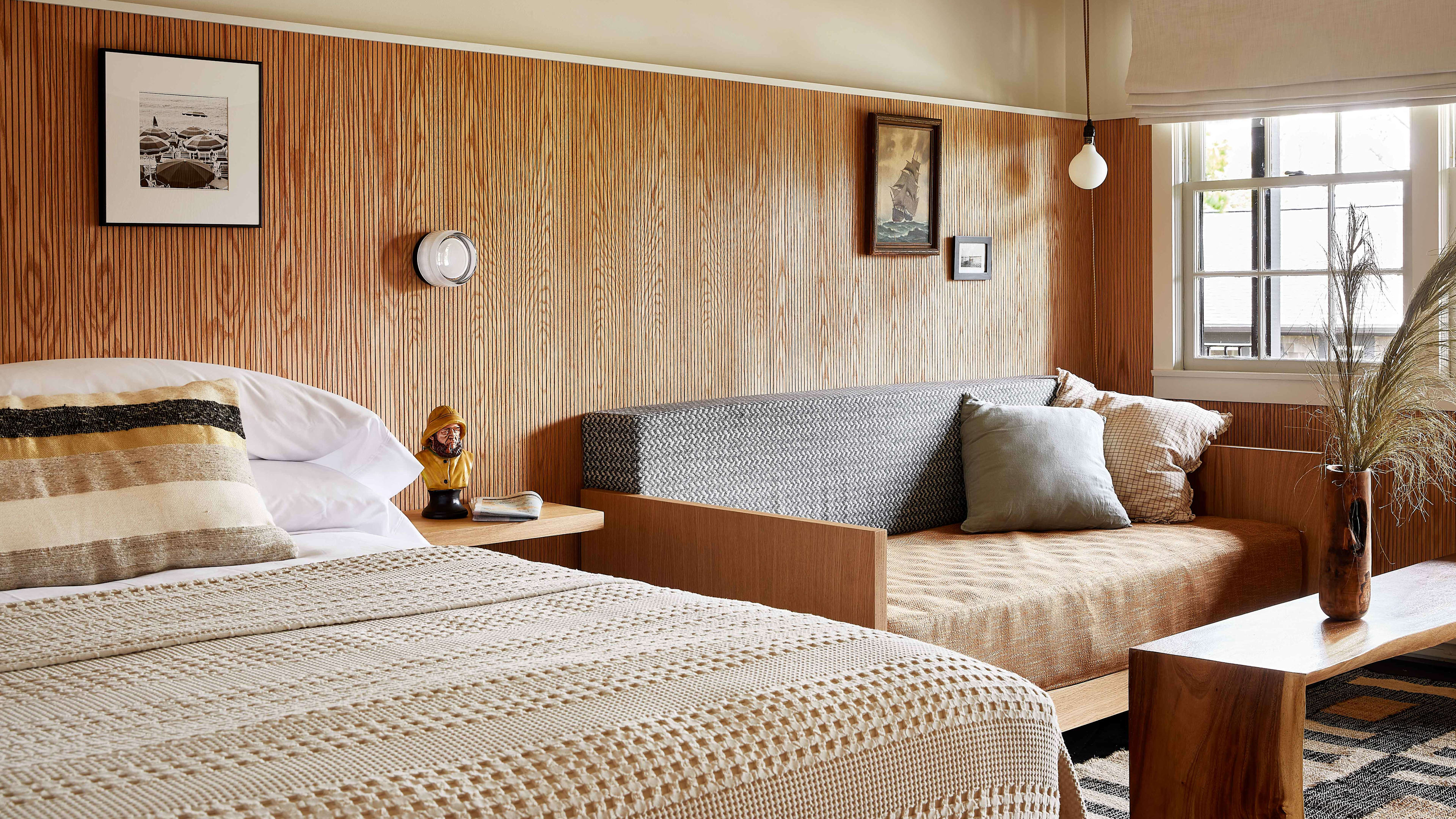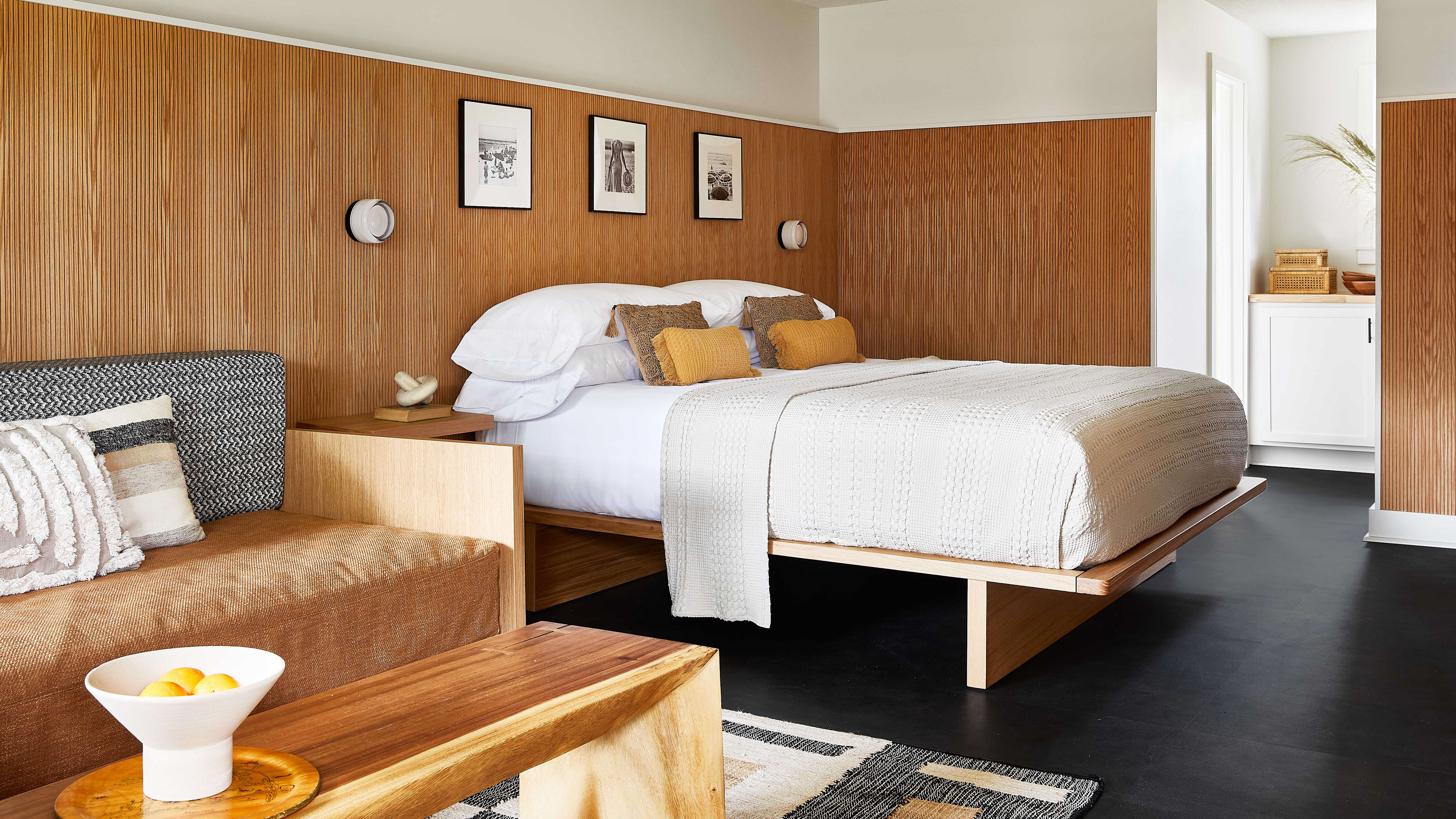 Any room here would make a worthy post-beach crashpad, with understated, beachy interiors and a seating area out on a shared verandah. Families or friend quartets might prefer the added privacy of the Two-Bedroom Cottages, which each have their own patio and fire pit.