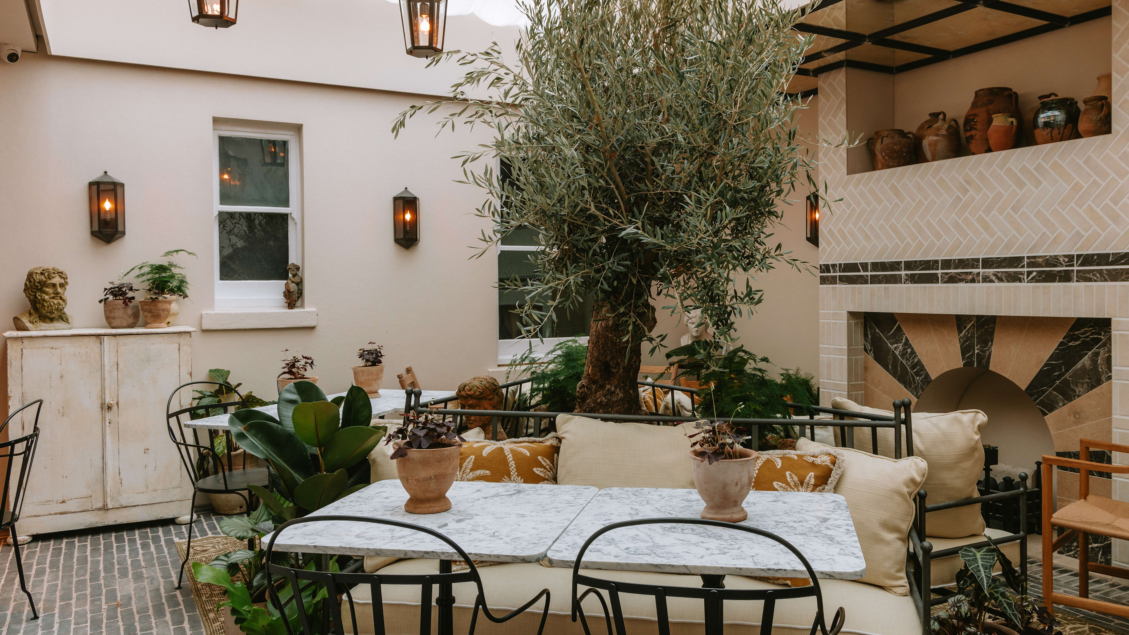 Breakfast will be from 7am to 10am, lunch and afternoon tea from noon to 3pm, dinner servings from 5.30pm to 9pm. Pizzas will be paddled out on the terrace from 11am onwards. The bar closes when everyone's gone to bed.