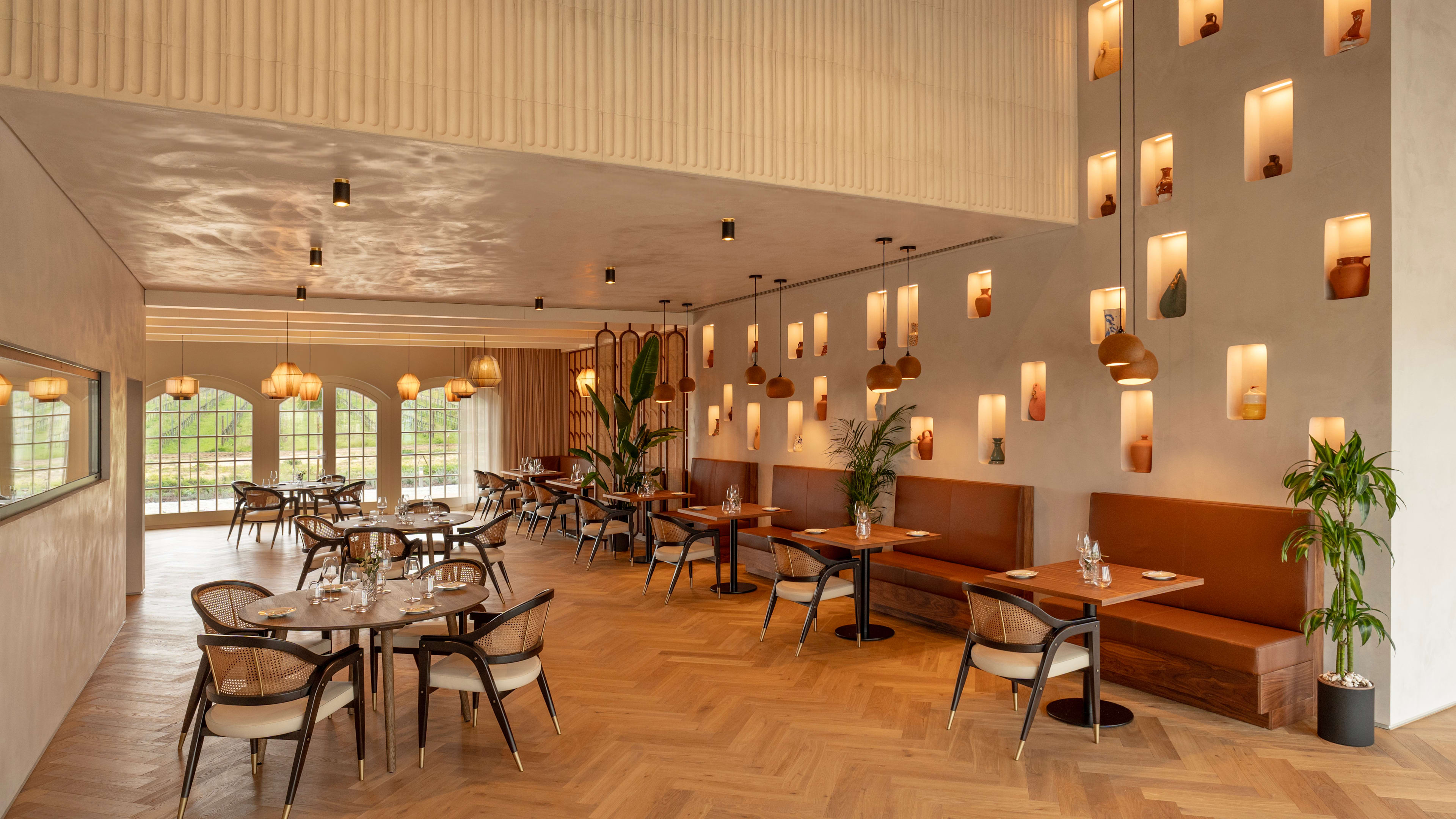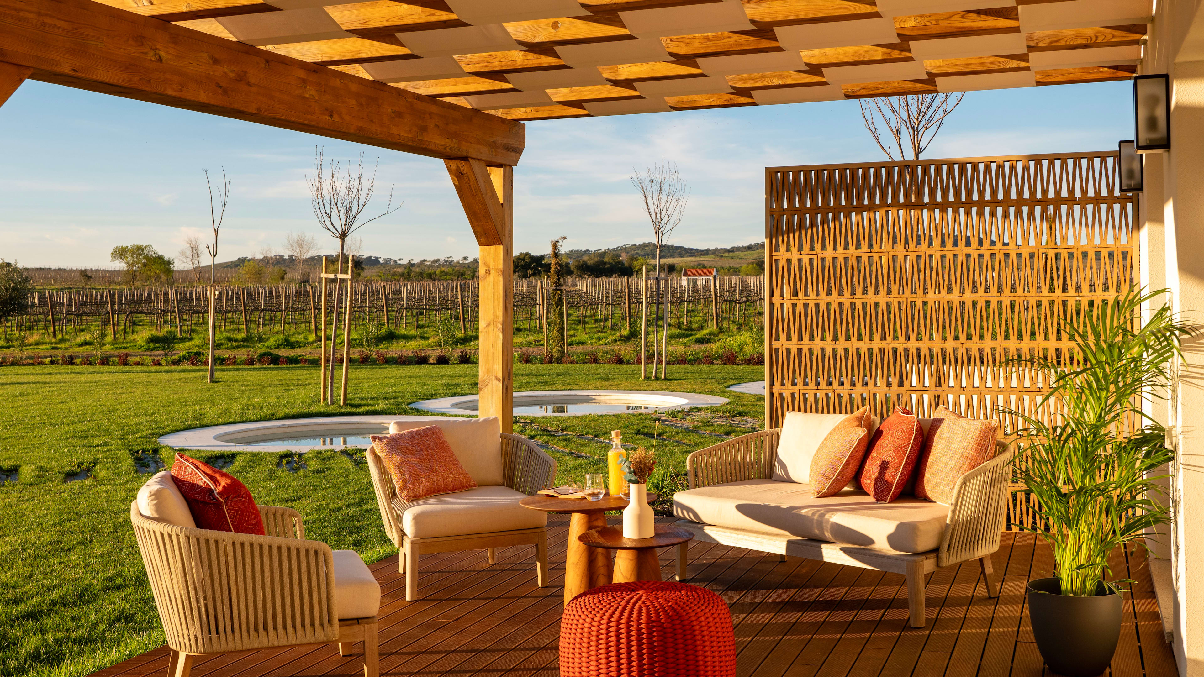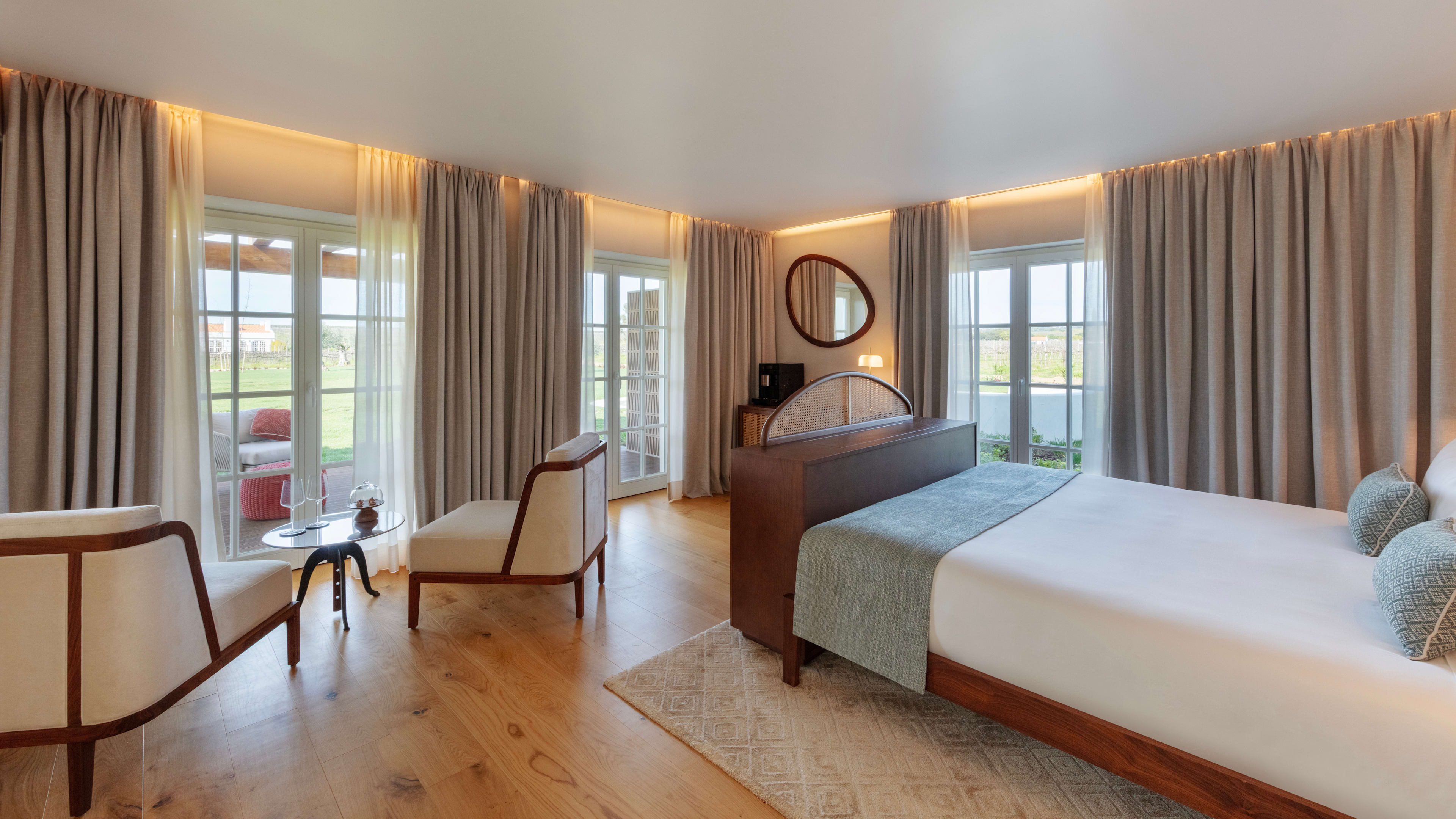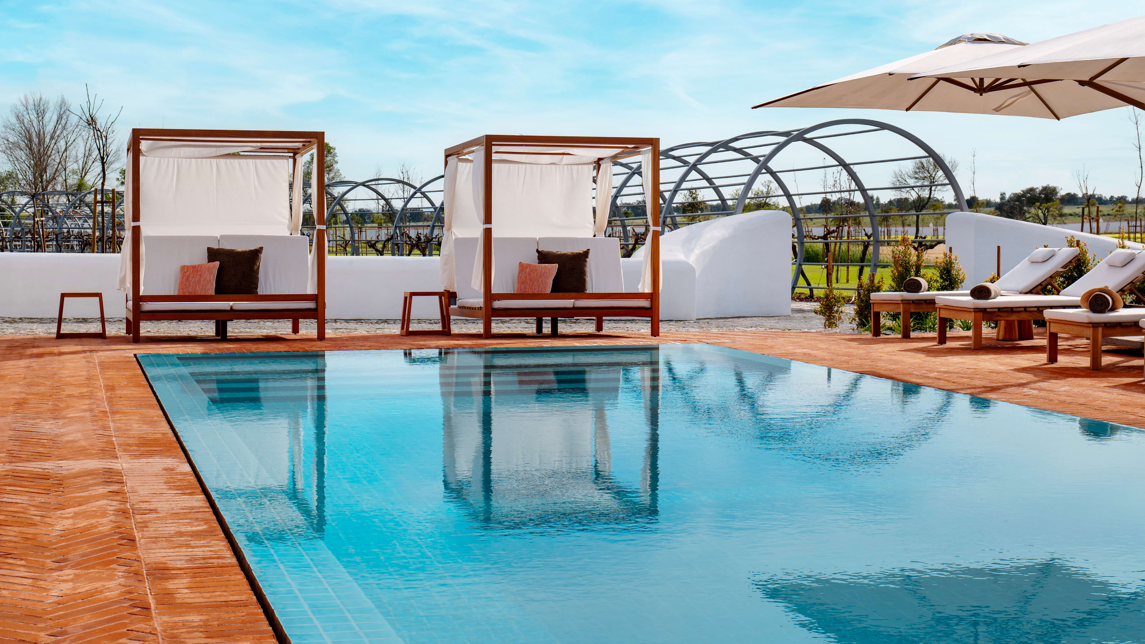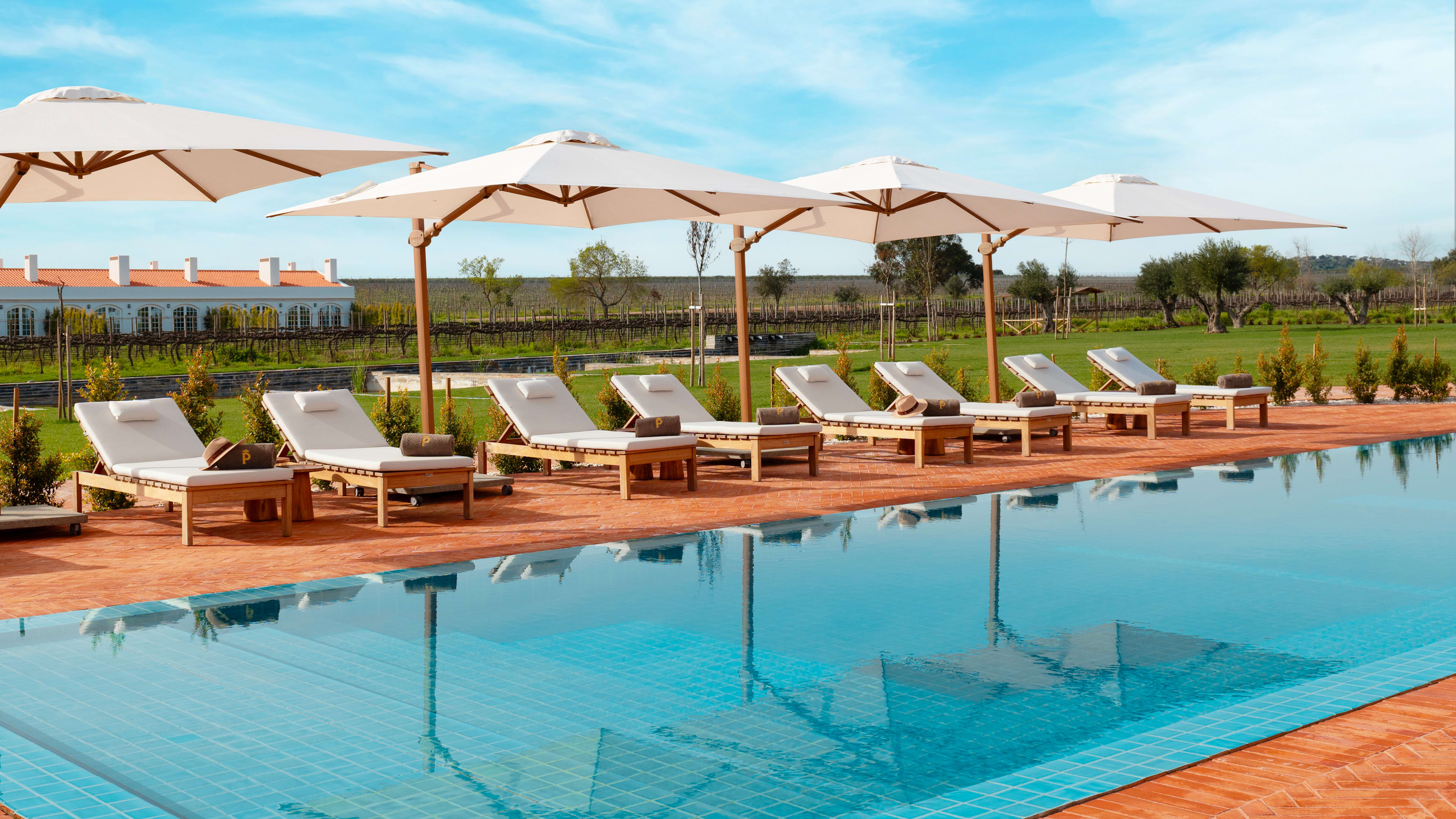 The demurely decorated Wine Restaurant allows the vineyard-framed views and locally sourced produce to shine in comforting but polished plates that change with the seasons. In the homely Estate Lounge, arched French doors open onto the pool terrace and bring brightness to your breakfast of homemade pastries, jams and breads, plus Alentejo-sourced cheeses and the estate’s own olive oil. Throughout the day, a menu of light, Mediterranean bites is at hand to balance out your wine-drinking decadence.