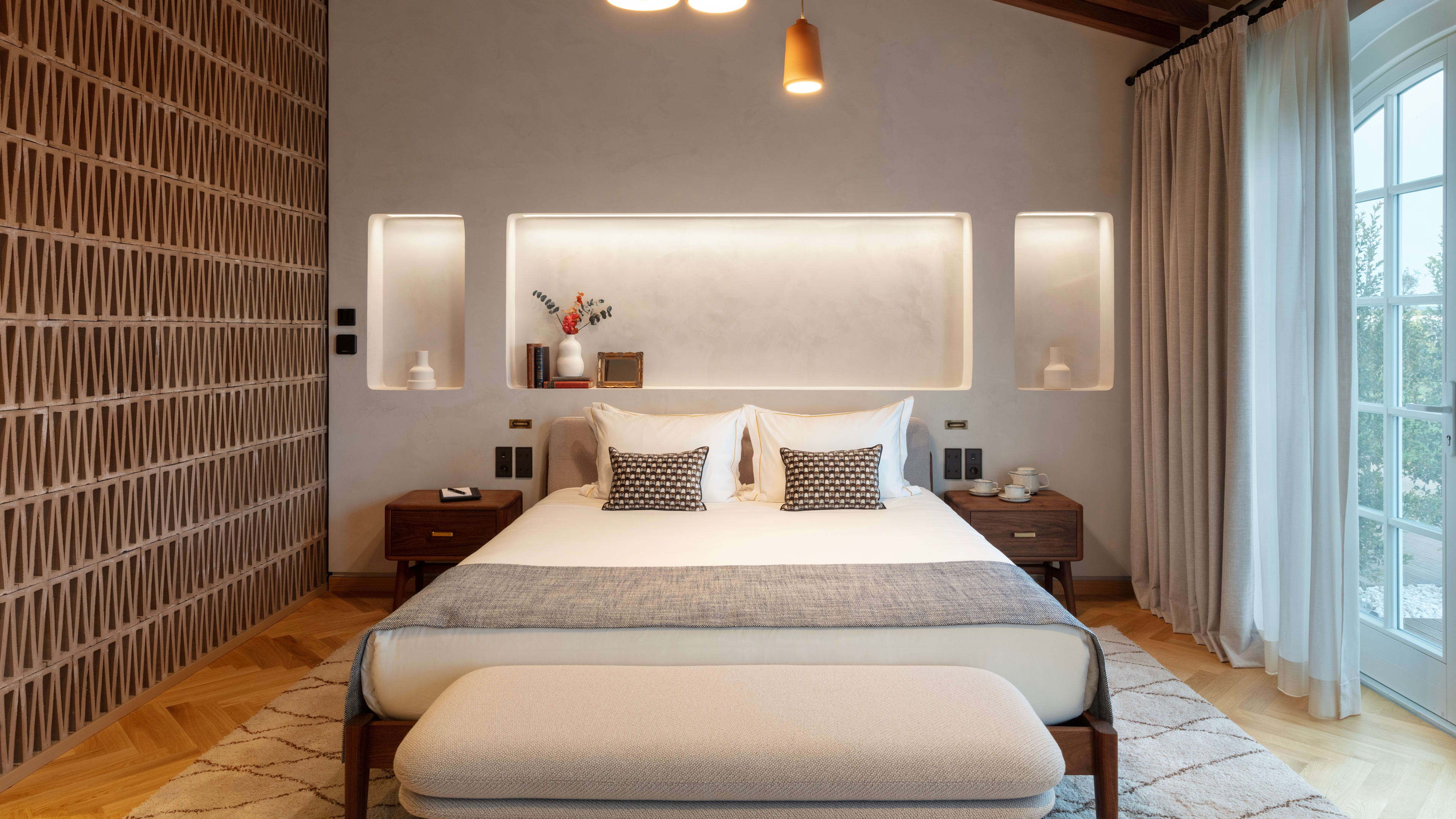 Quinta do Paral toasts to its locale in various ways, but the hotel’s design is its most aesthetic form of celebration: artisan-made furnishings, traditional stone archways and latticework, and walnut-wood details adorn the rooms. Take in the vineyards from above in a Juliet balcony-toting Superior Room; the views are just as special from the private furnished patio in a Signature Terrace Suite, which also has a double-sided fireplace indoors.