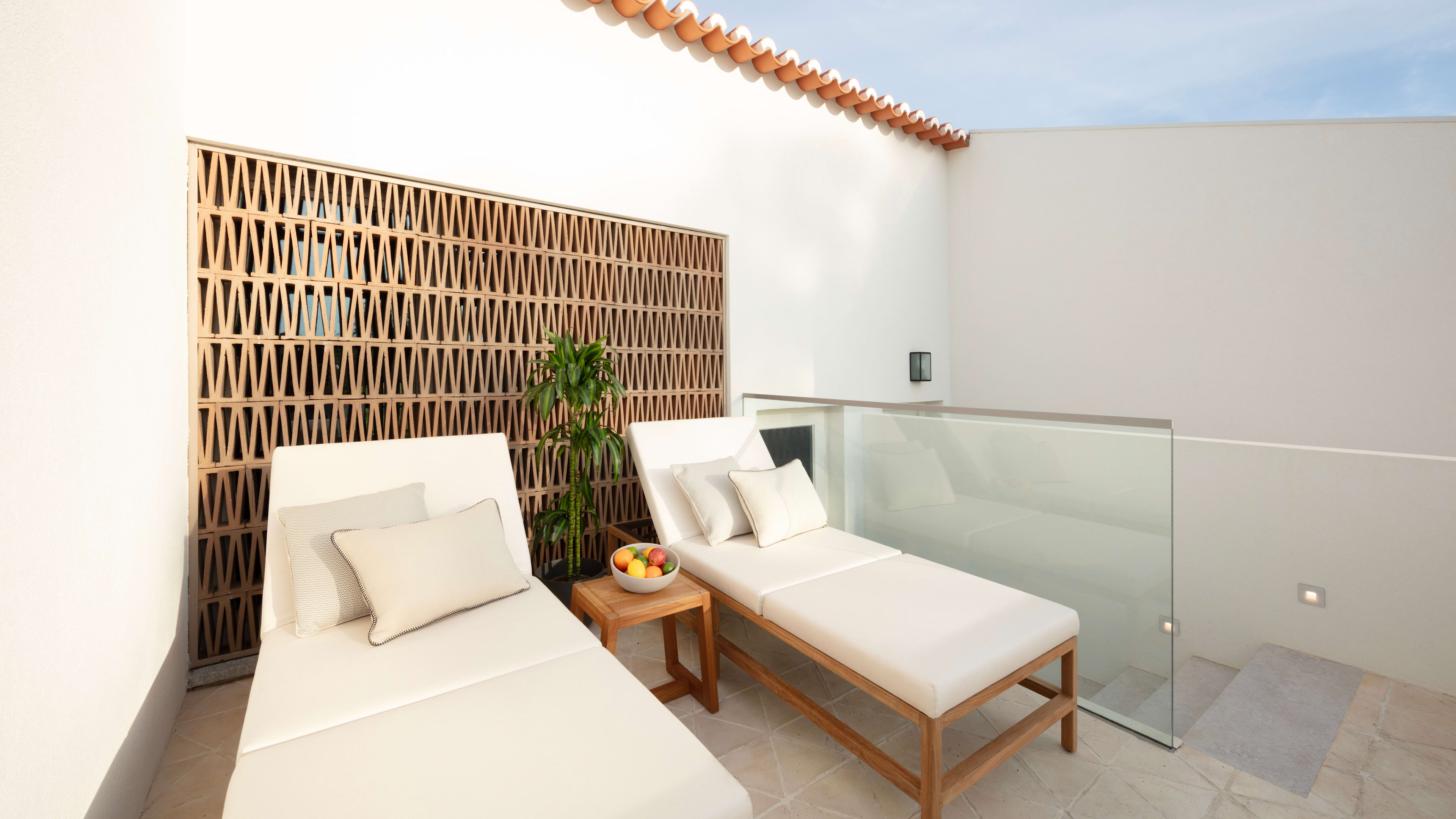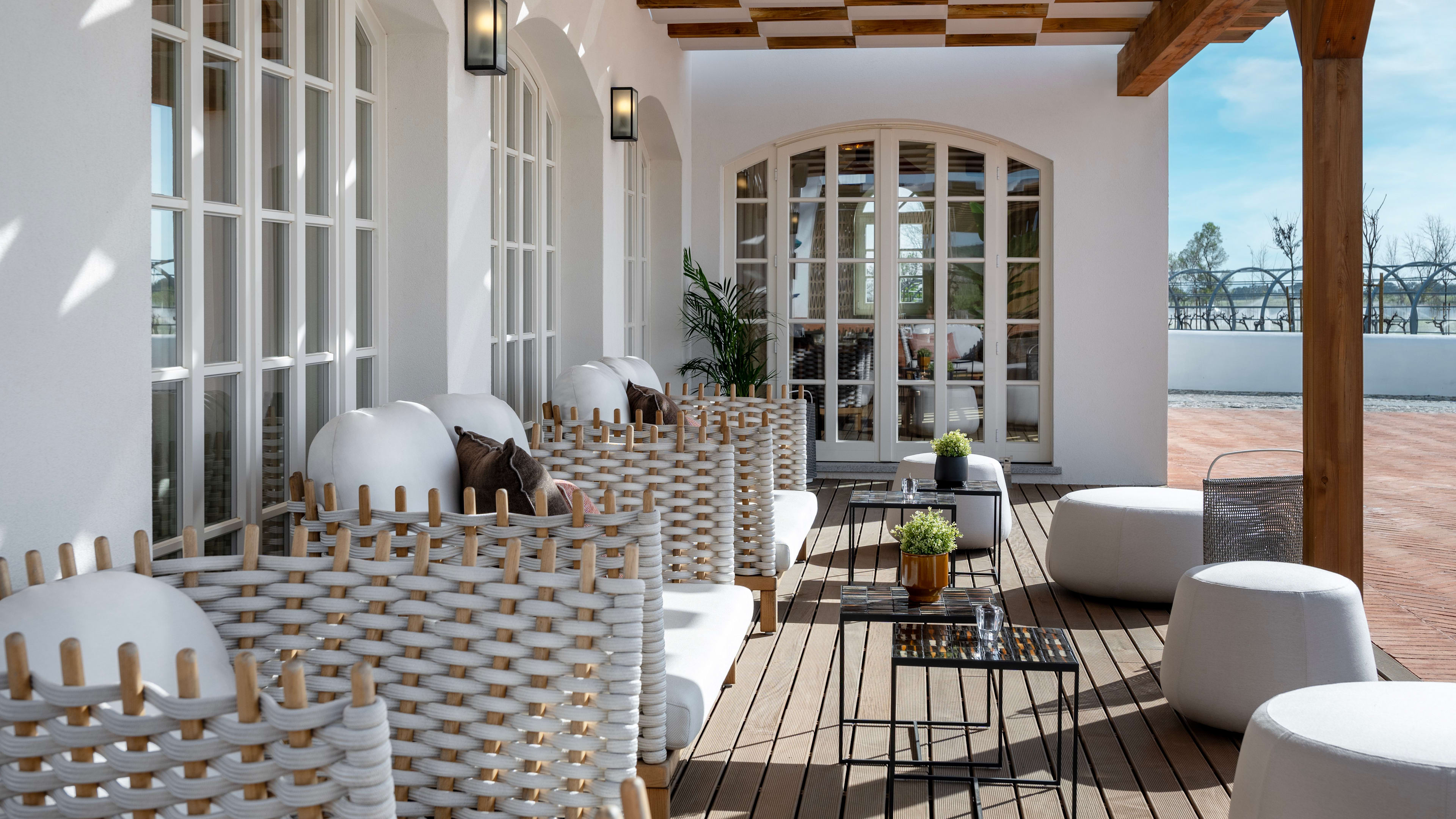 The sky-blue pool’s setting is the picture of Portugal: it sits between the whitewashed quinta and verdant vines, and its terracotta-tiled terrace is dotted with rattan furniture (ivory sunloungers are on hand for any post-tasting siestas).