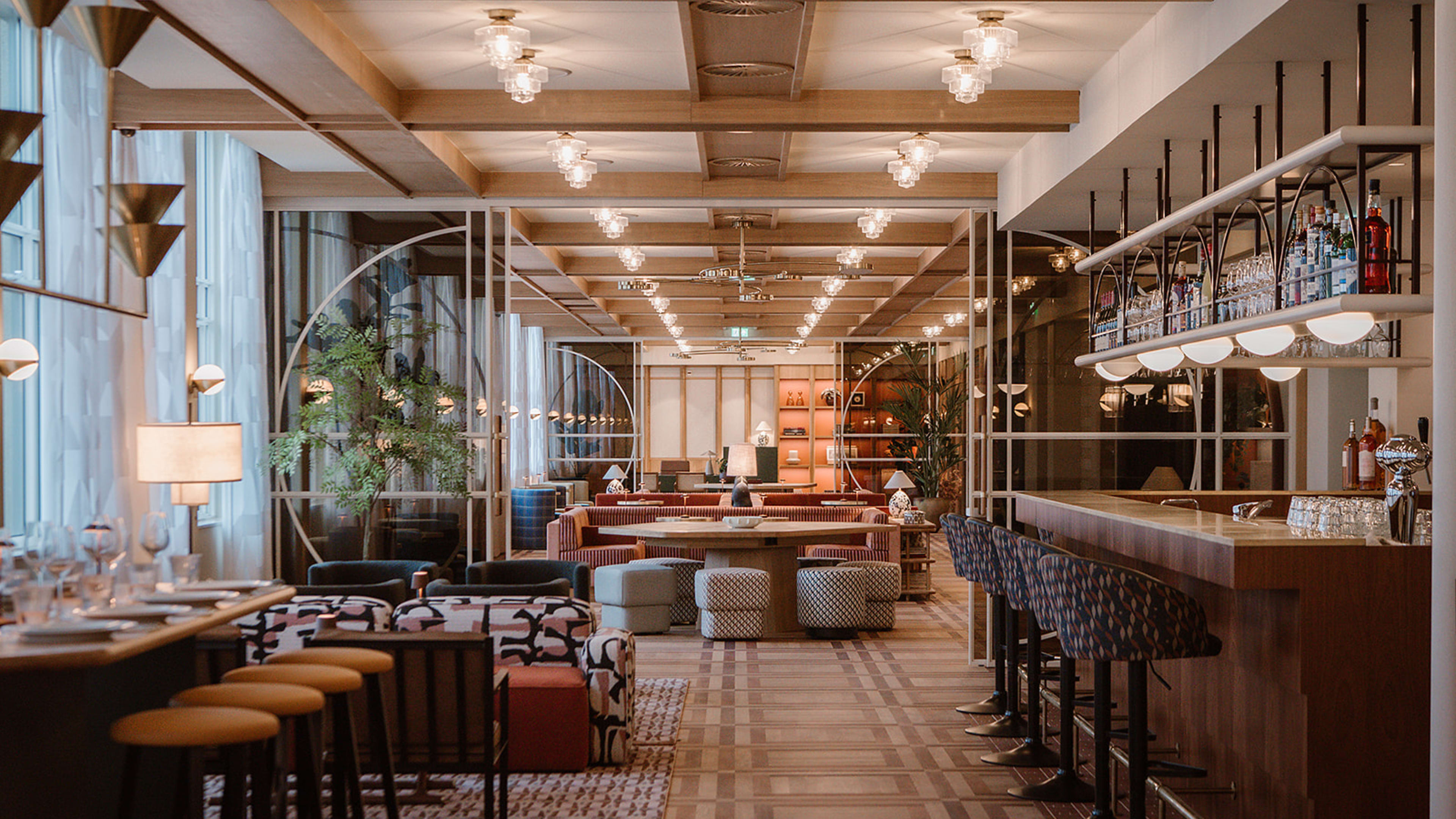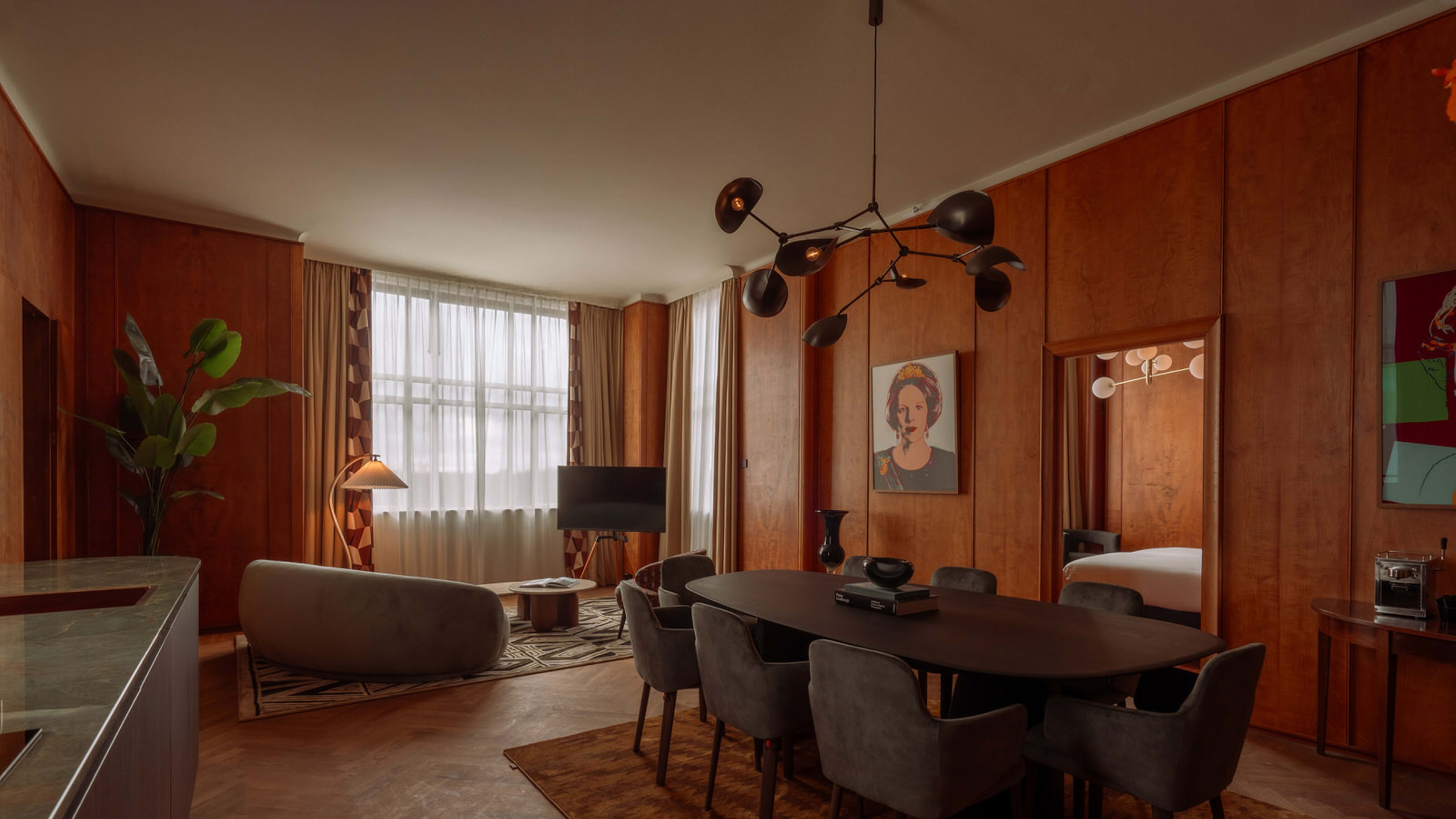 Named after Albert Plesman’s wife (who helped to broker alignment between unions and KLM bosses with her legendary hospitality), Suus restaurant has yet to open its doors, but we can’t argue with its ethos of ‘good food, done well’ and look forward to chef Paul Dingjan’s suitably international menu of polished plates — rooted in European cuisine, paired with sommelier picks from the hotel’s impressive cellar. Inviting mid-century-modern design (sculptural lighting and furniture, a coffee-and-cream palette and polished-wood finishes) continues into this expansive dining room, which also has its own bar and a mezzanine.