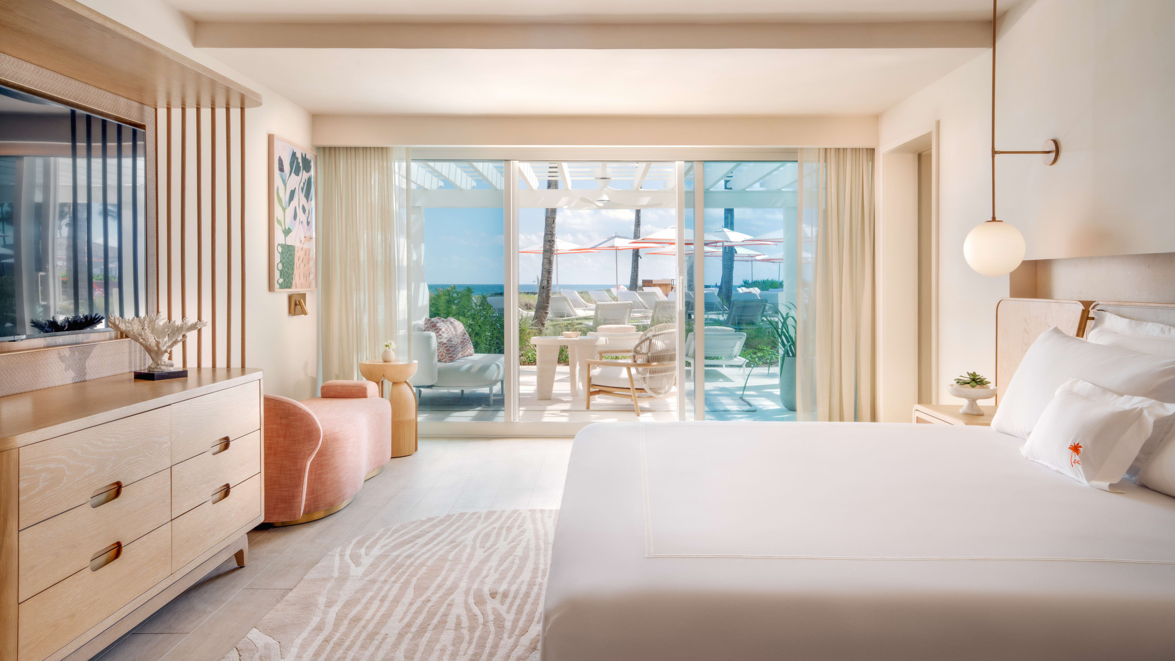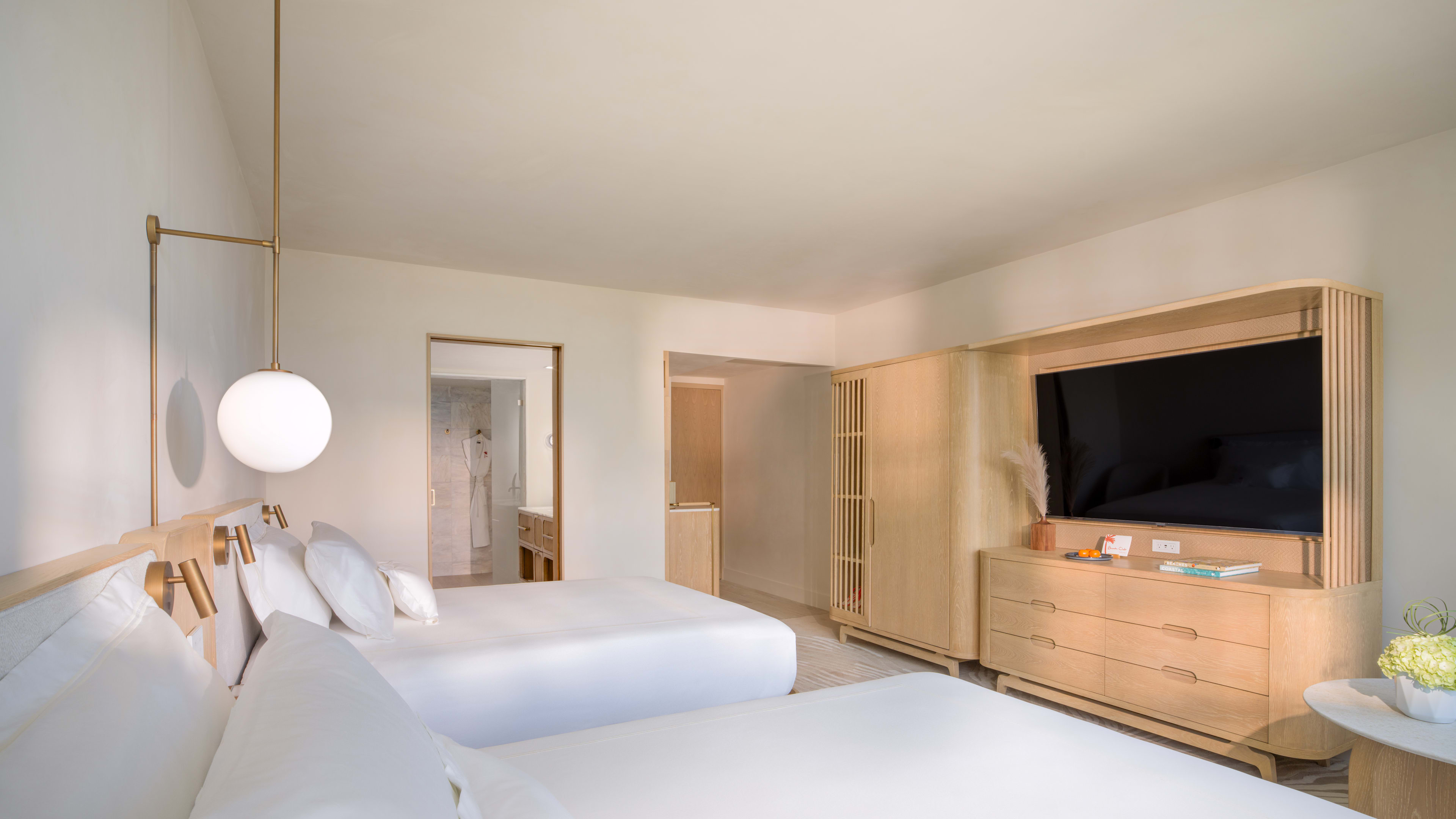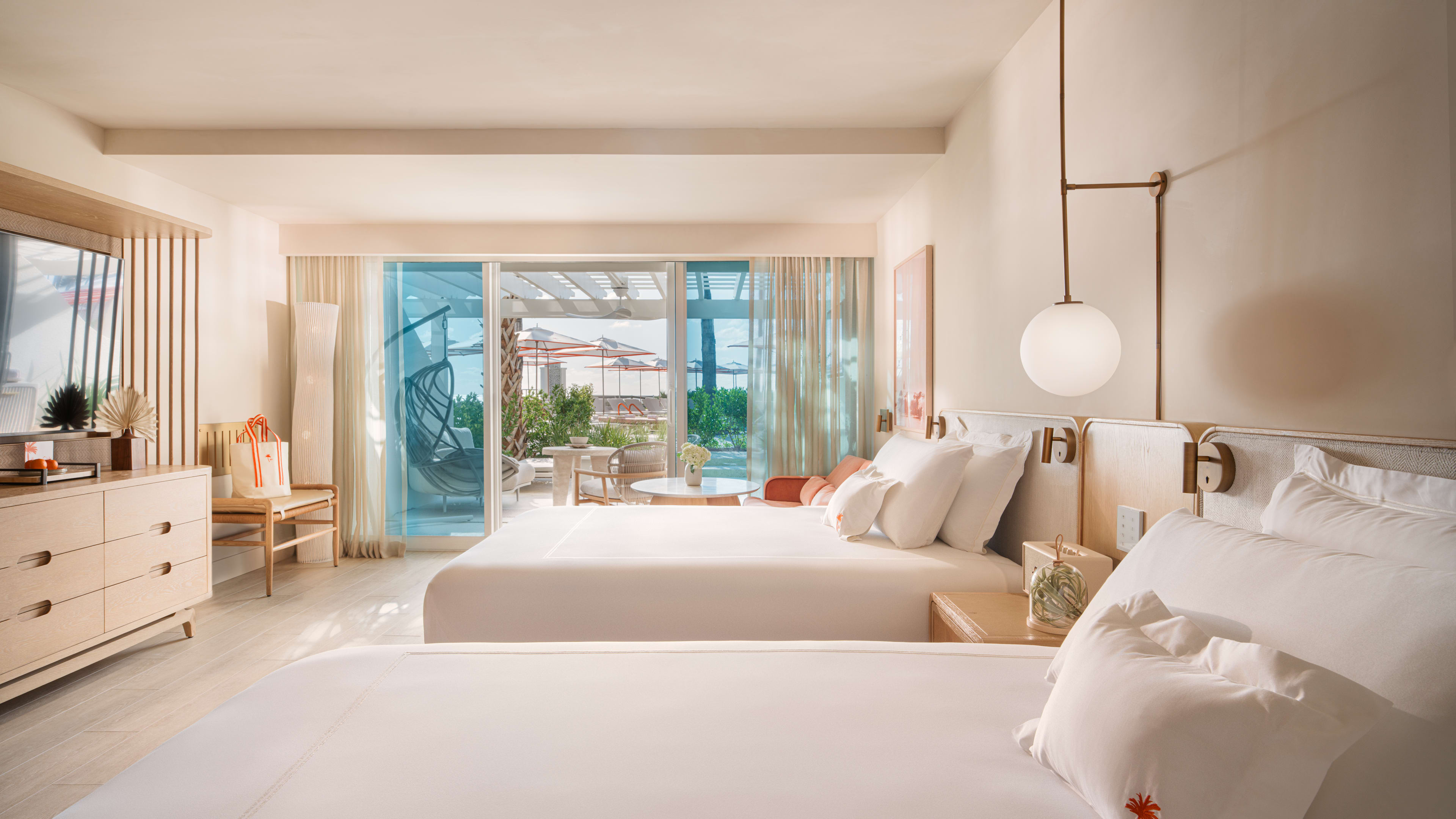 Private beach club, boat and watersports kit rental, tennis courts, pickleball courts, golf course, bikes to borrow, laundry service and free WiFi throughout. In rooms: TV, USB outlets, air-conditioning, tea-making kit, Nespresso coffee machine, wet bar with free soda and snacks or (in suites) complimentary minibar, free bottled water, bathrobes, flip flops, beach bag and Molton Brown bath products.