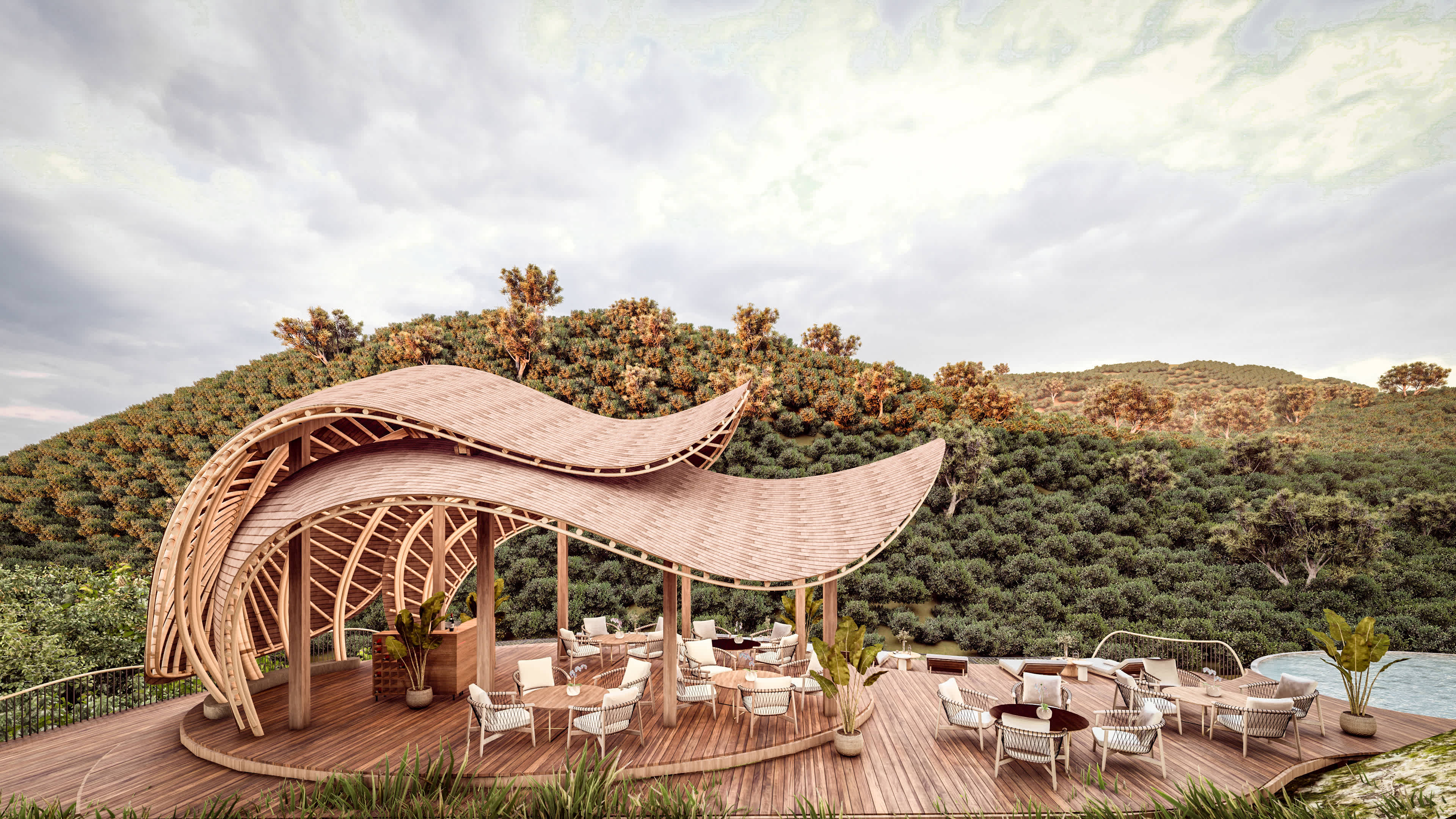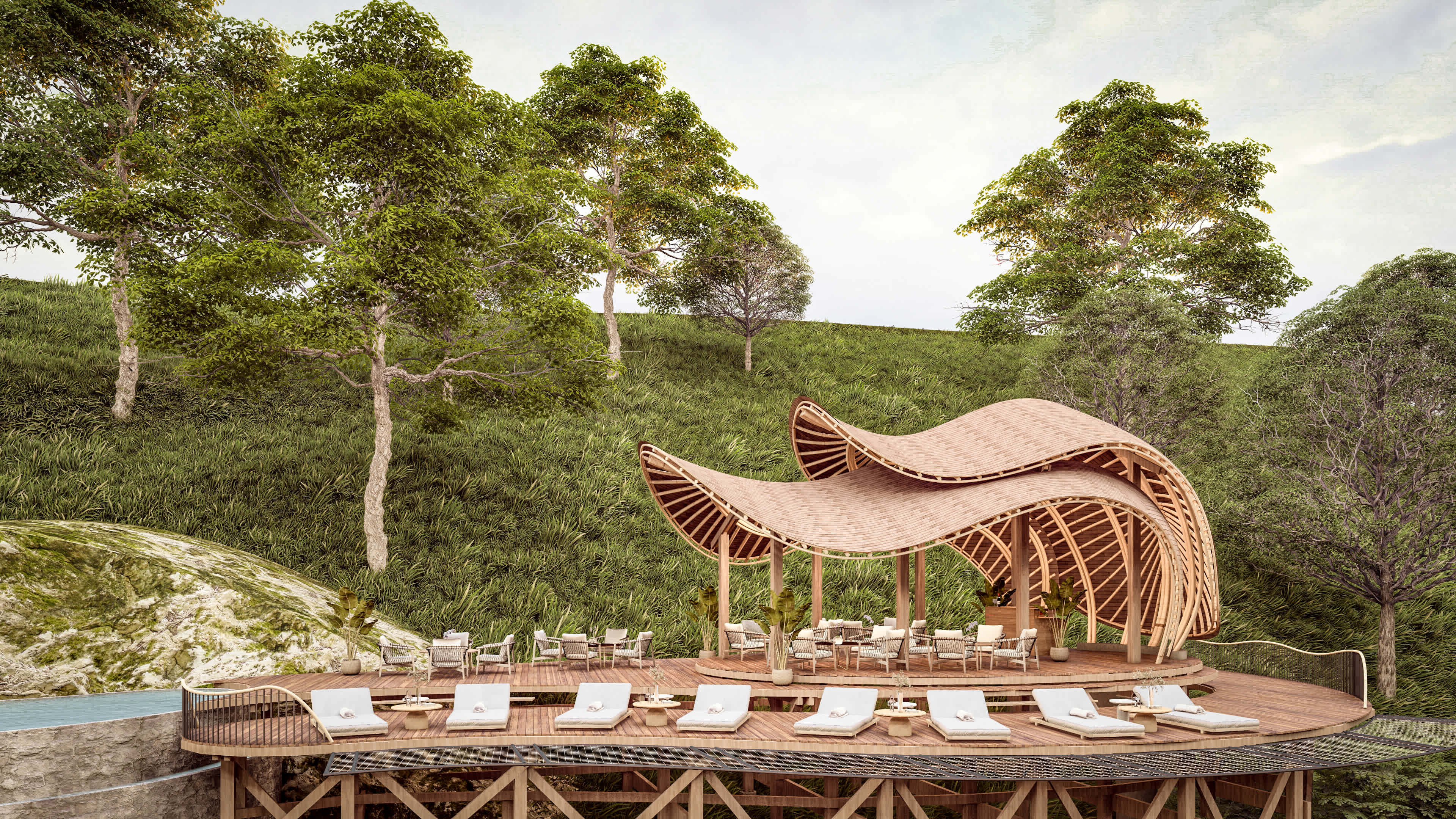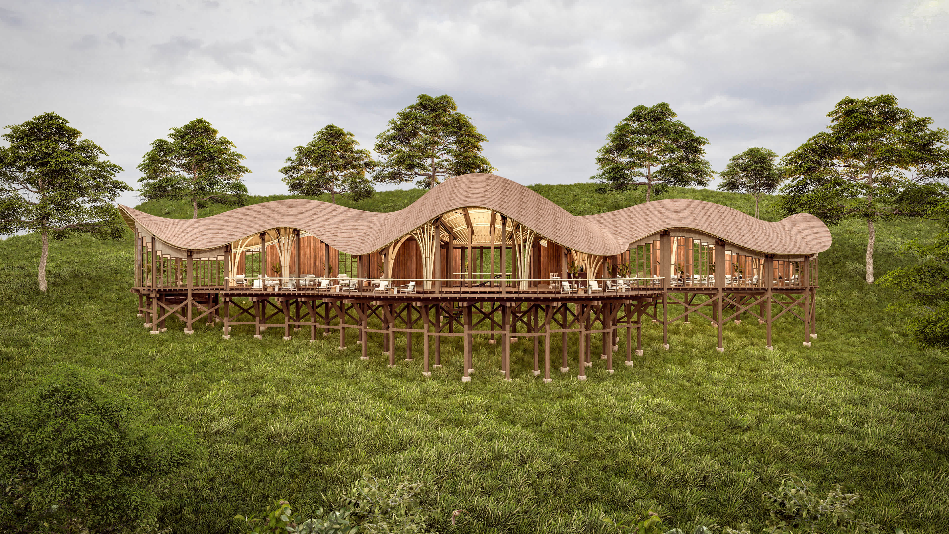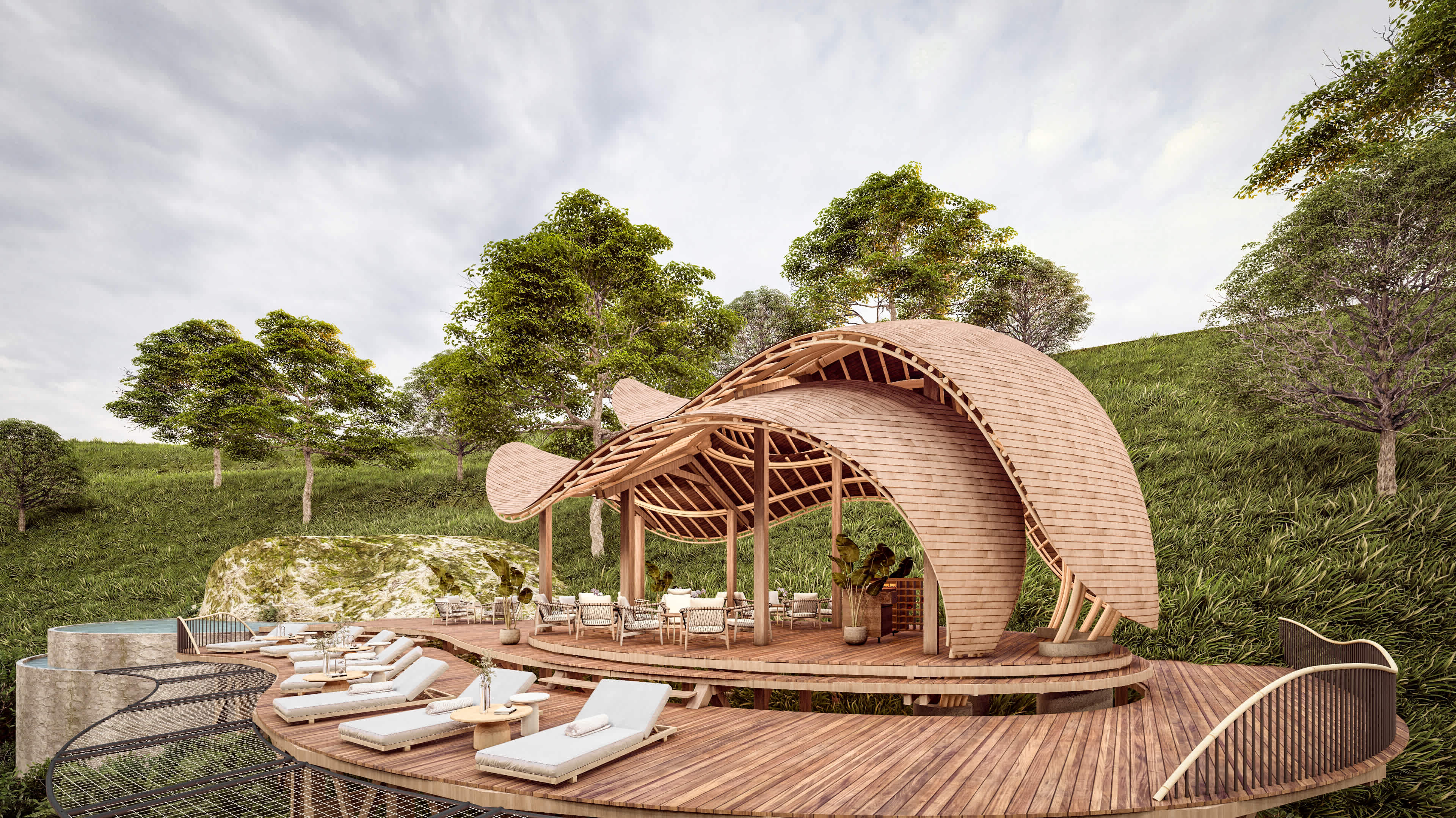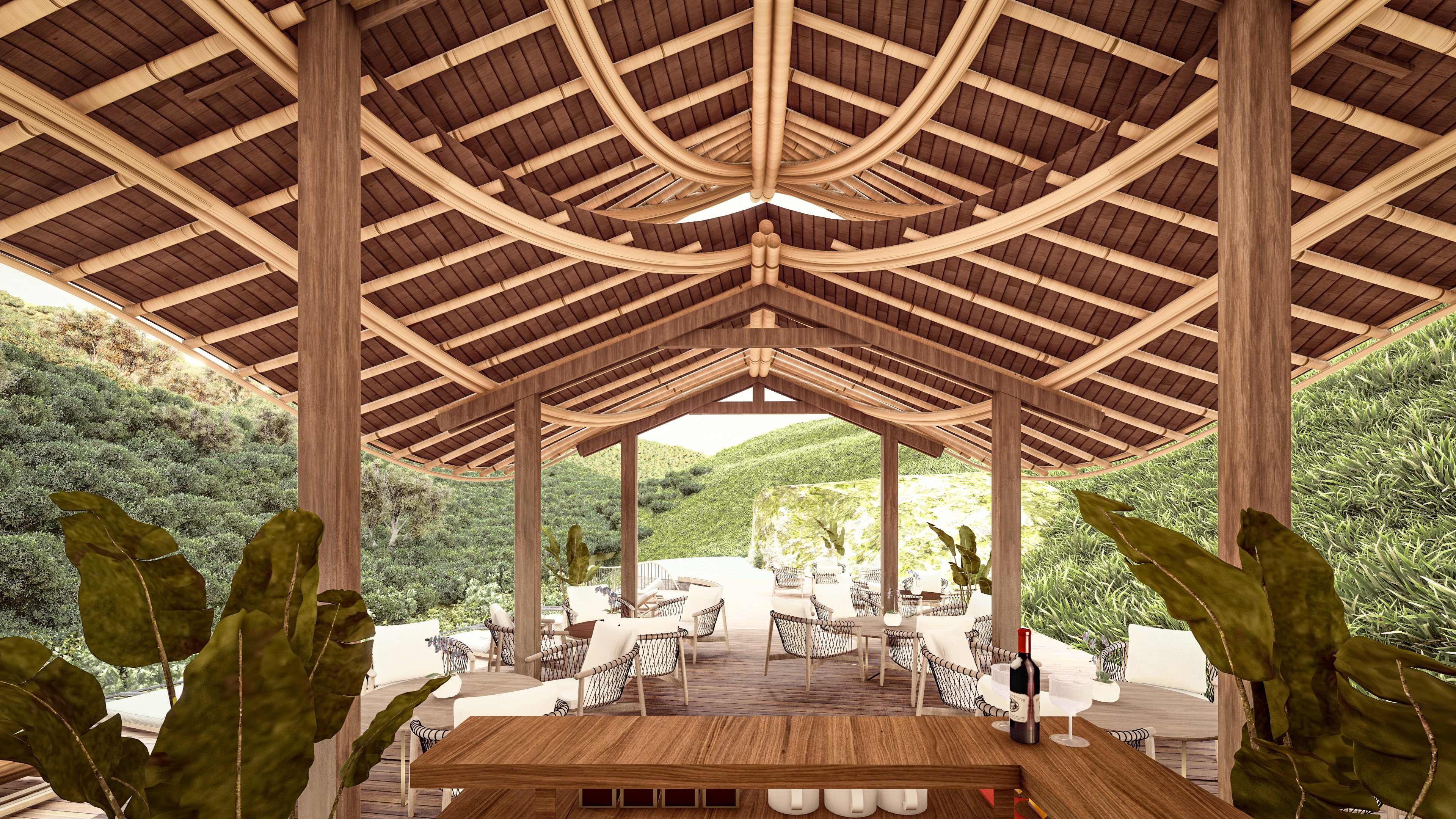 Twining between tea plantations and jutting out from the viewing deck, a small heated pool floats above the valley, edged by sunloungers and open from sunrise till sunset.