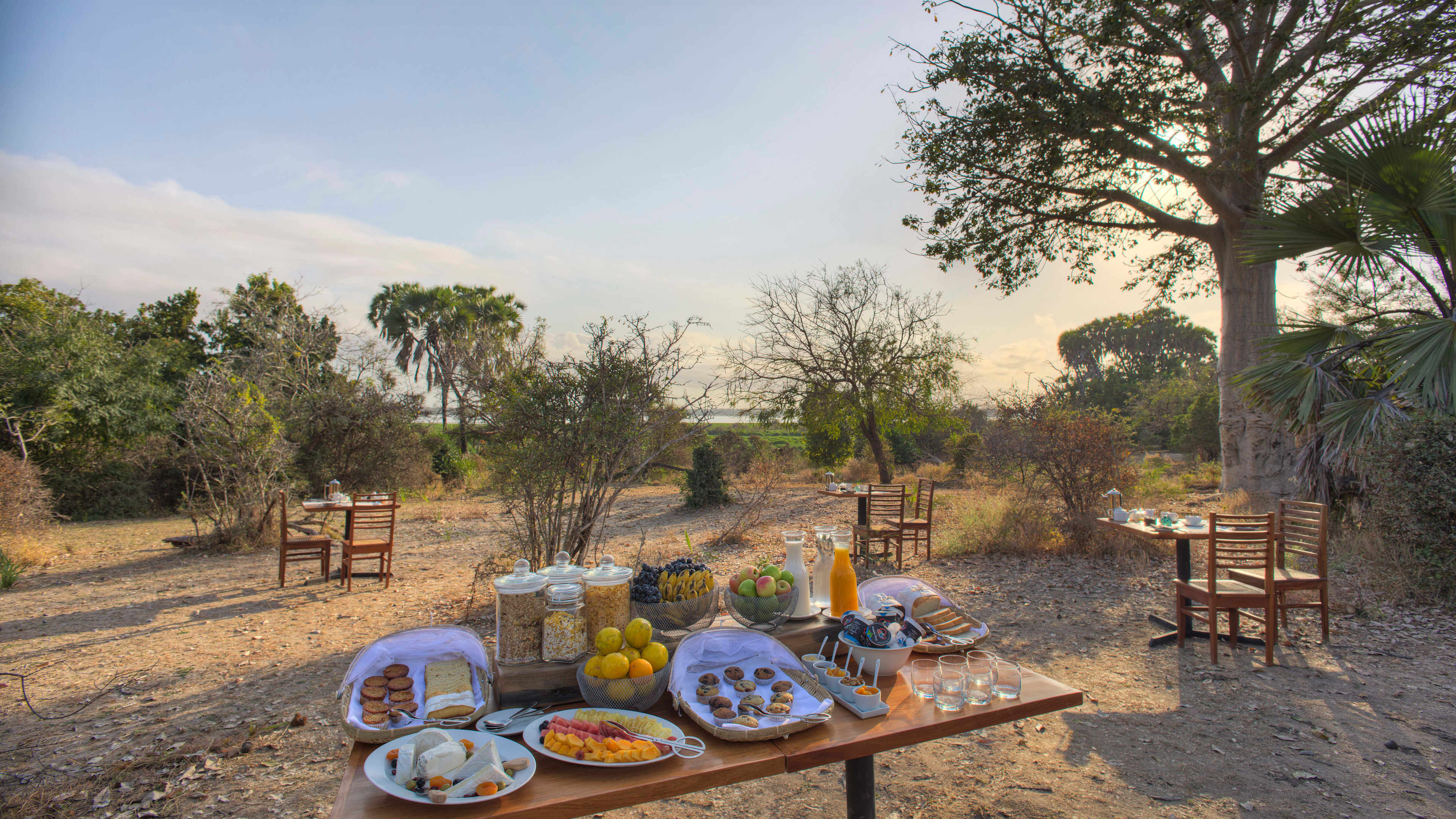 At Roho ya Selous, breakfast might be fresh fruits, yoghurt, muesli, freshly squeezed juices, baked pastries, breakfast sandwiches and wraps, with the option to enjoy hot dishes à la carte. For morning game drives, a packed breakfast will be provided.