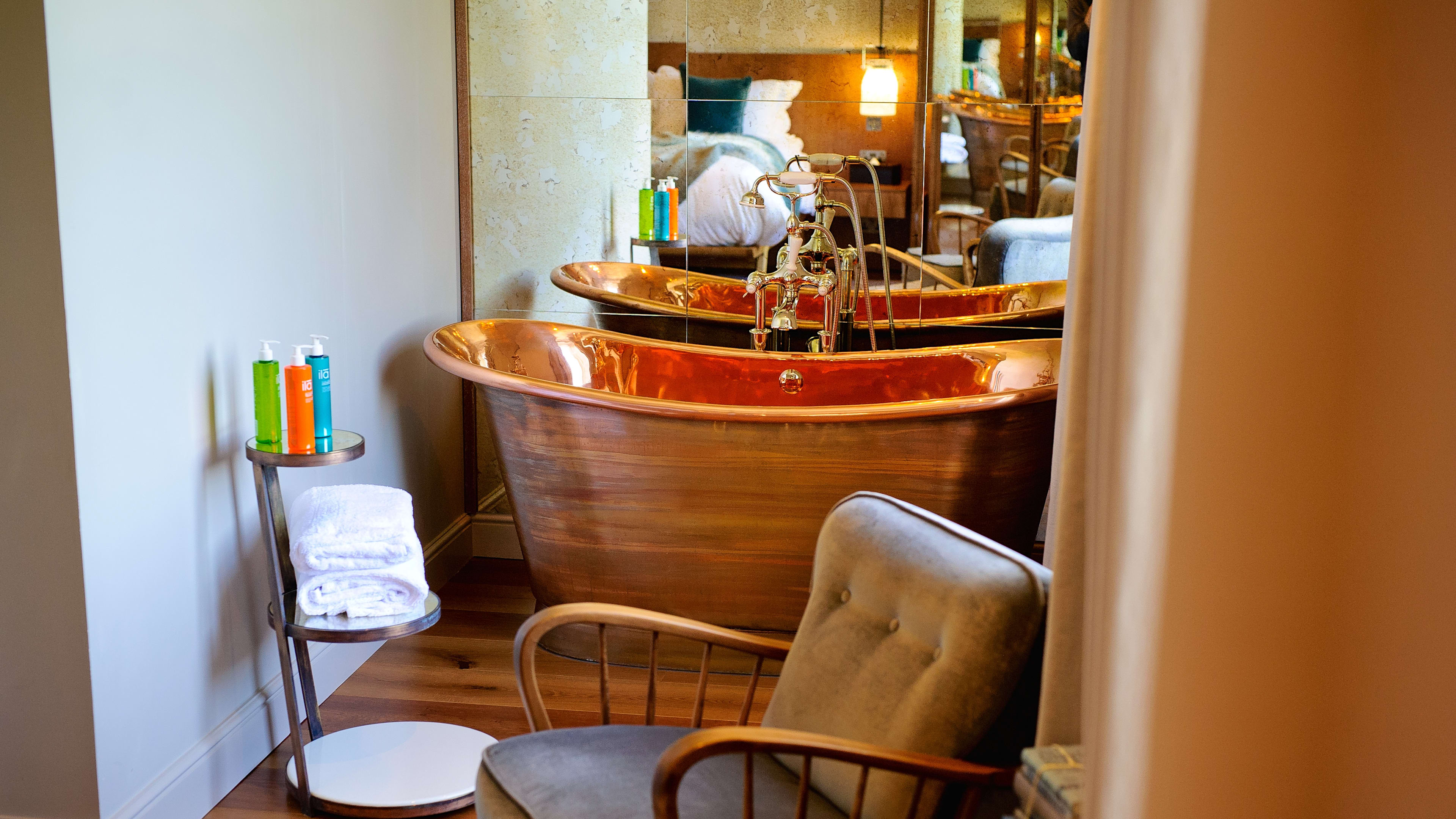Home spa products if you have a room with one of the eye-catching Catchpole & Rye copper bath tub. Riding gear, for equestrian pursuits in Richmond Park. Each room has a few books for you to flick through.