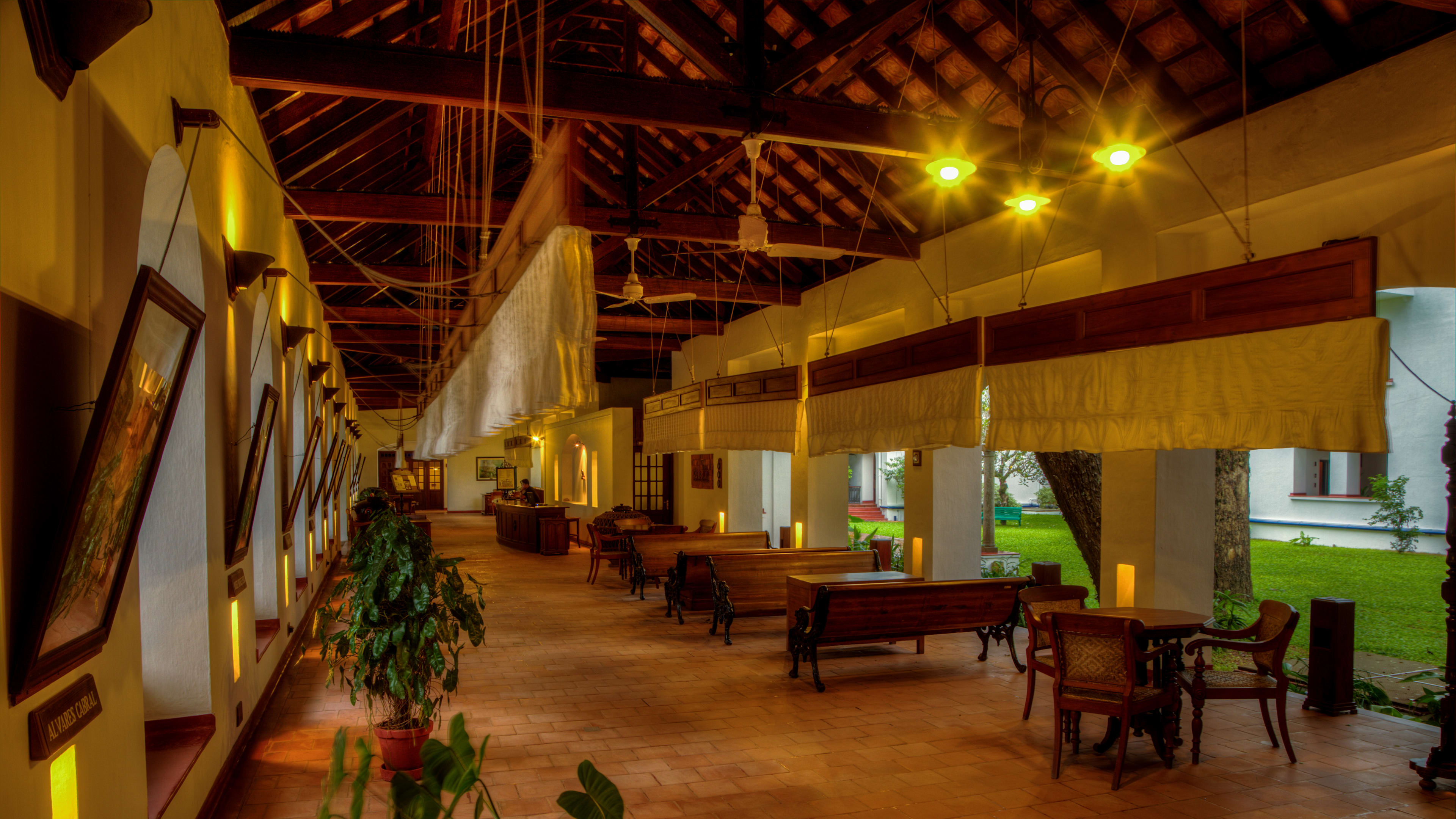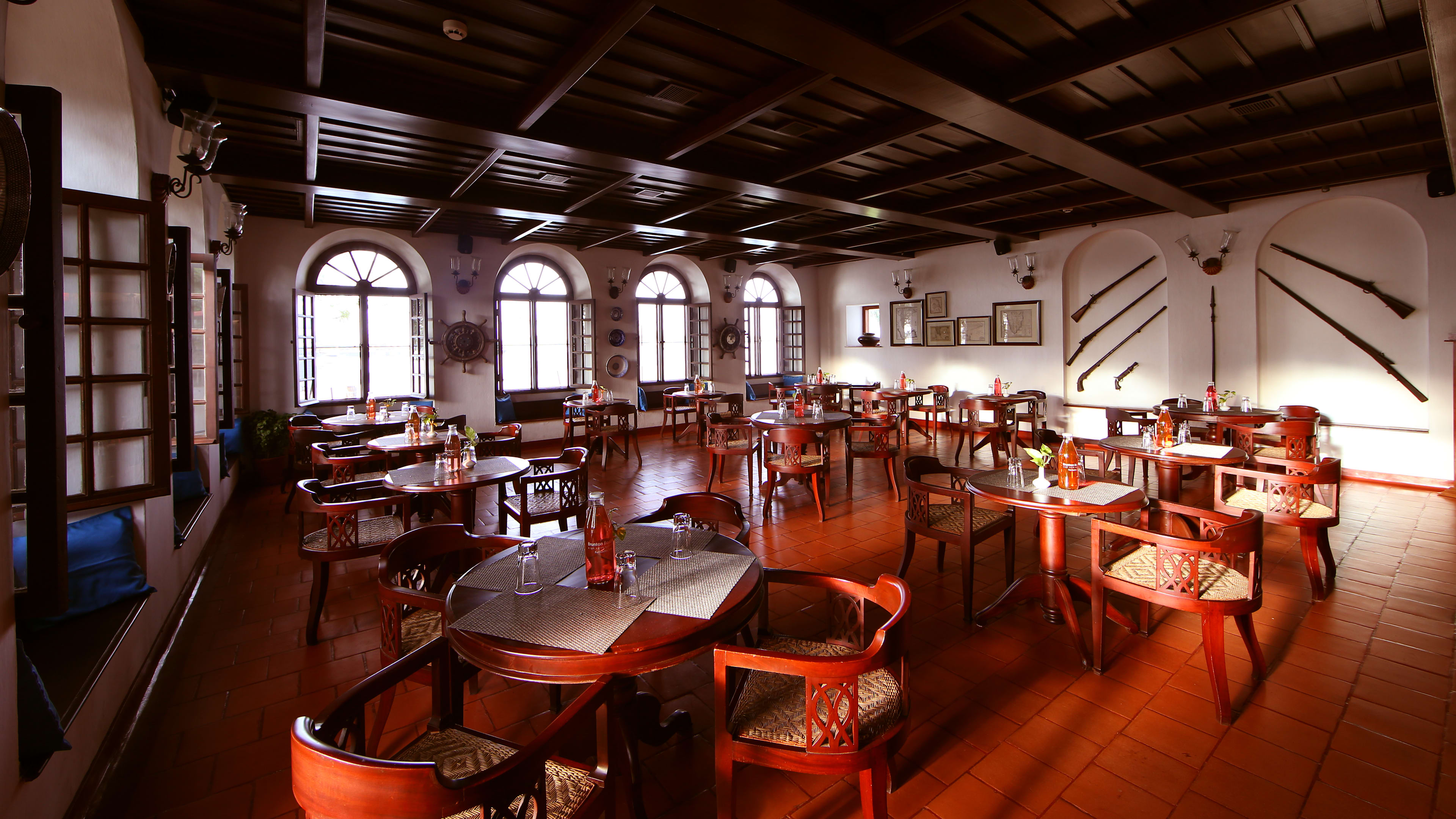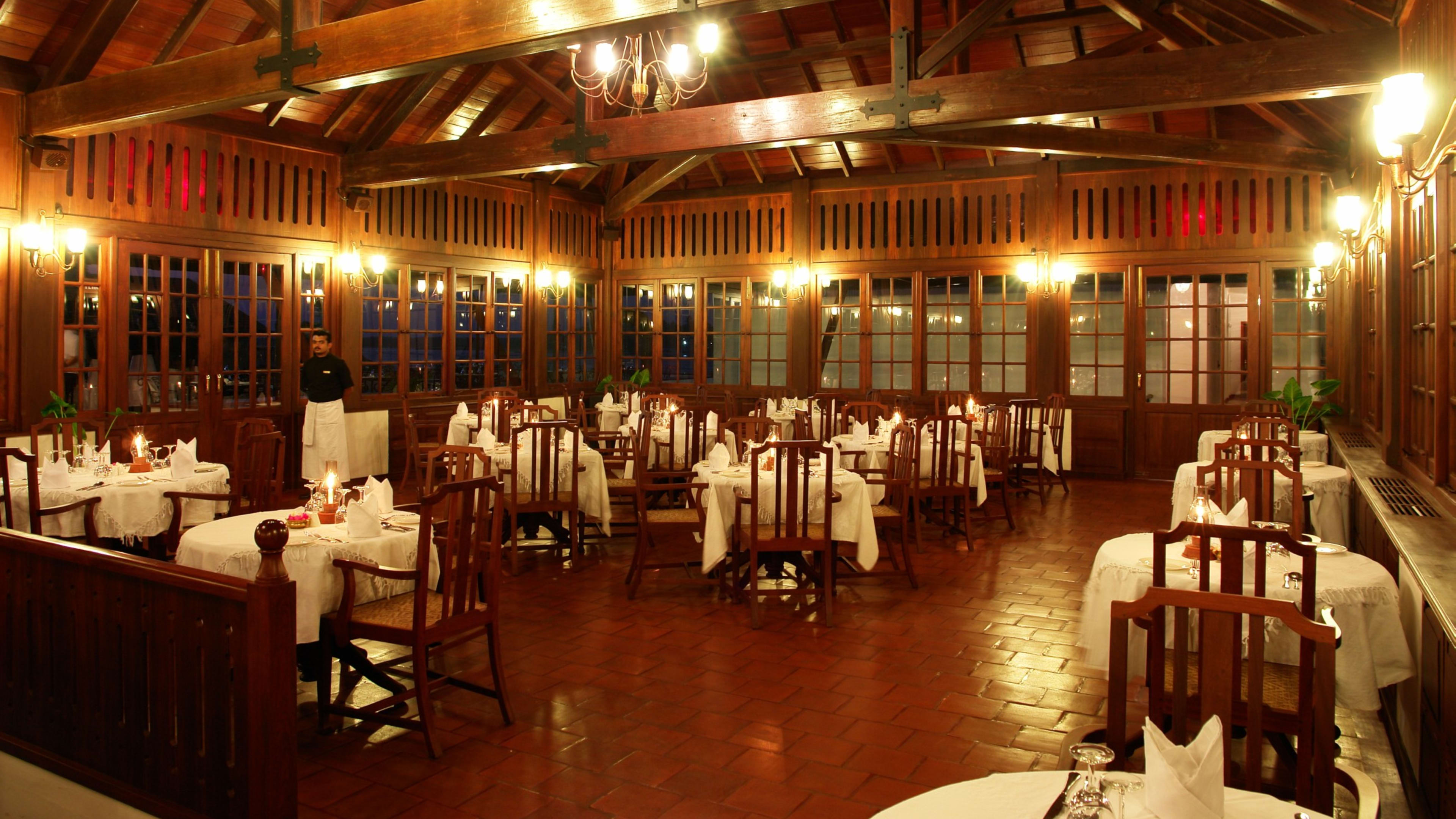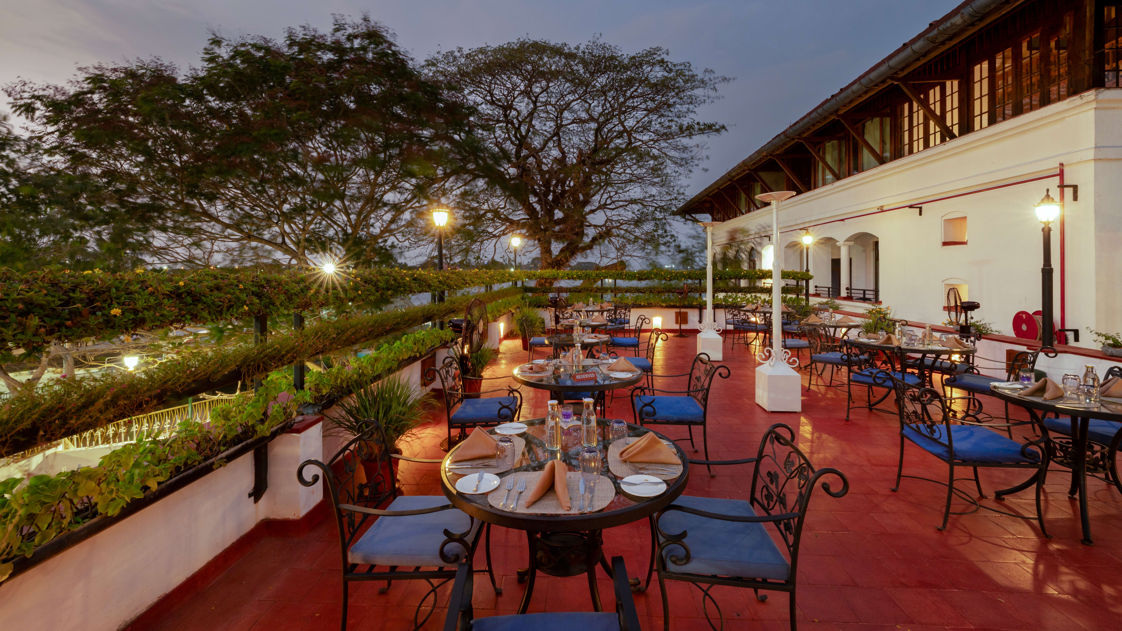 History serves Portuguese, Dutch, British Raj, Arabic, Kosher and local Keralan dishes made with local ingredients by chef Jerry Mathew. Terrace Grill (closed in monsoon season) offers seafood. Armoury provides snacks and light meals.