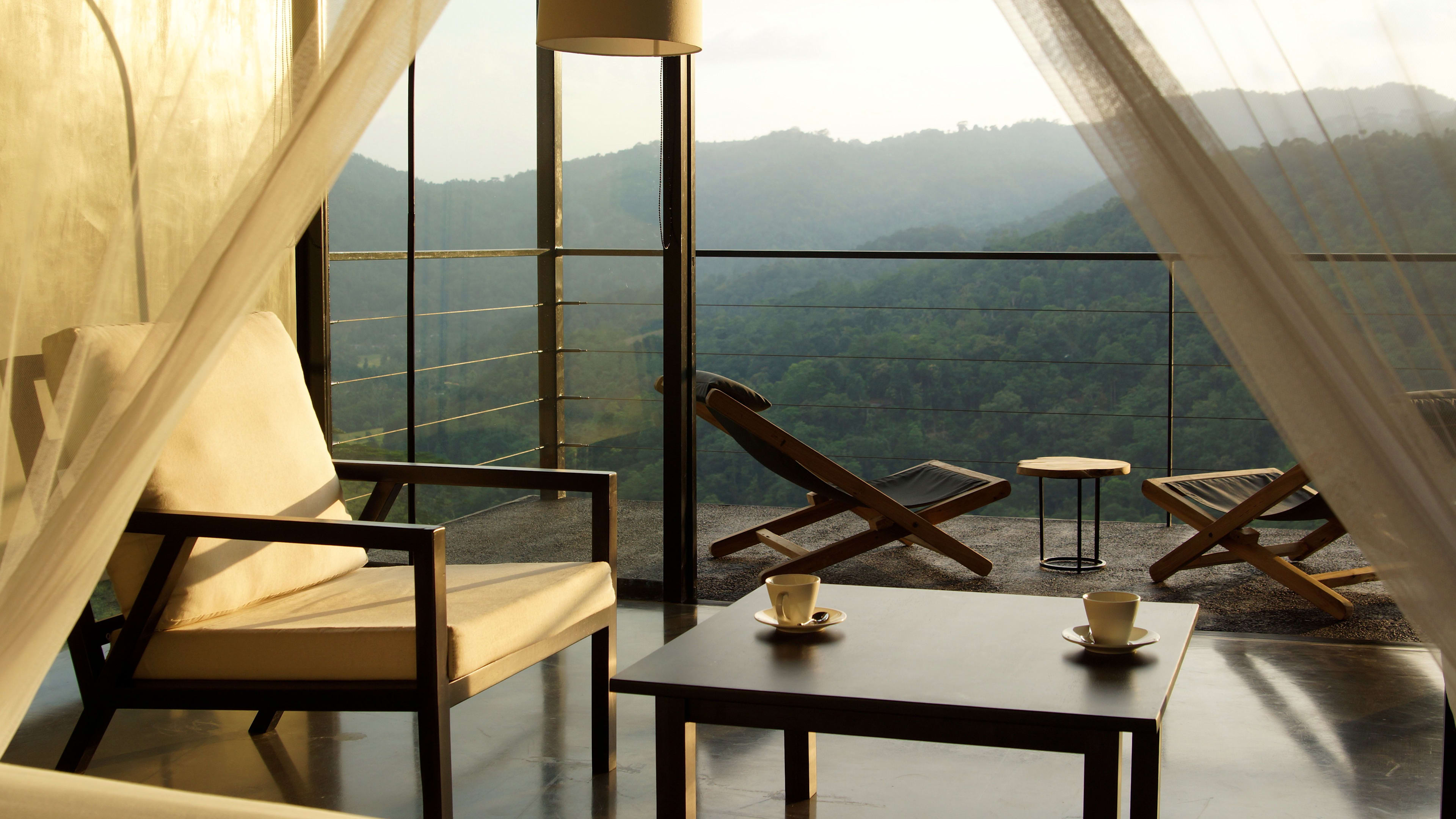 All rooms have similarly minimalist interiors, but for a room with a seriously impressive view, request ambalama one; the first in the row of hillside villas. It has totally uninterrupted views of the valley. Wake early and take a seat on your private balcony to watch the sun rise over the mountains, see the mist clear to reveal lush green paddy fields, and listen as the rainforest comes to life.