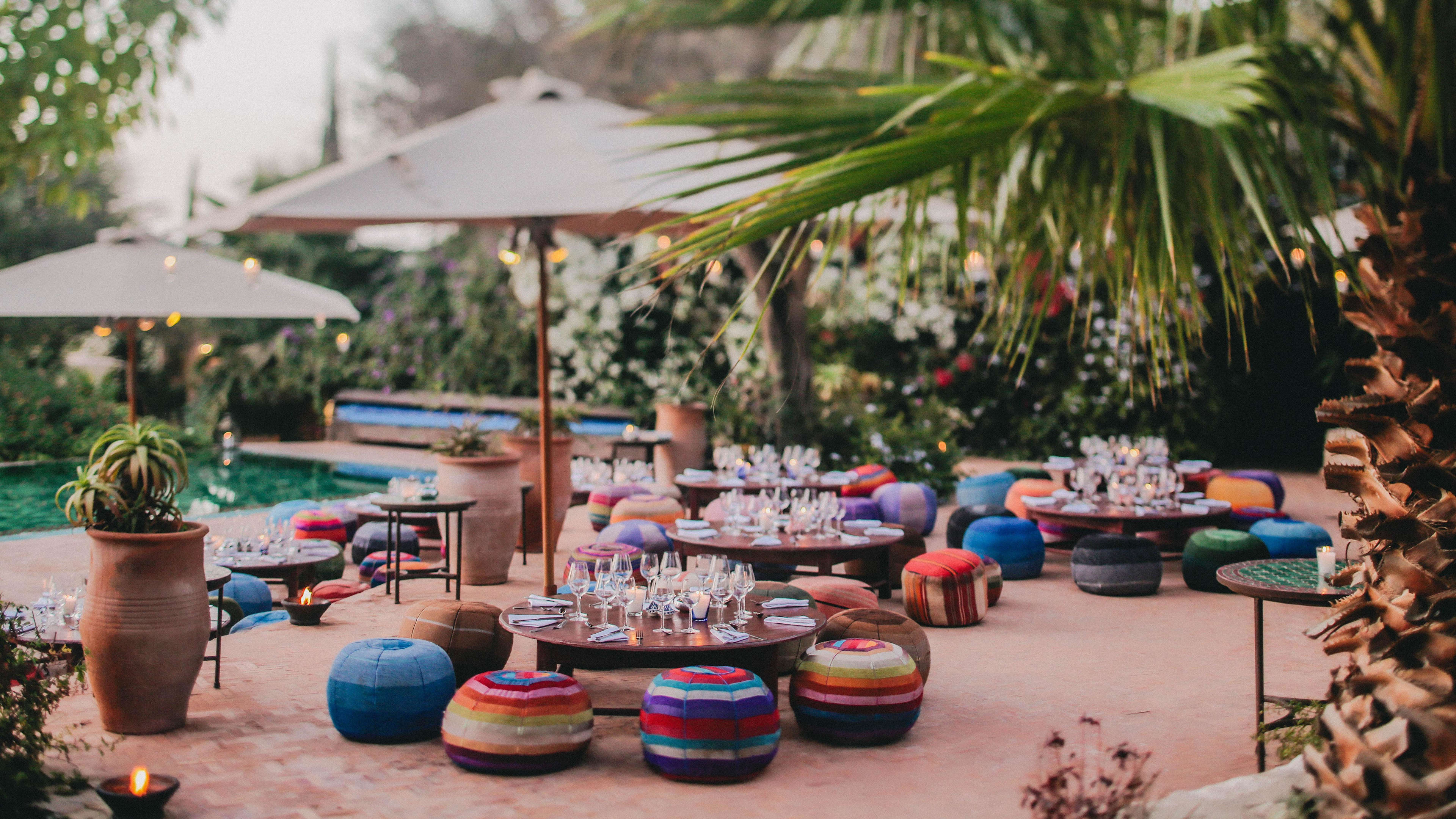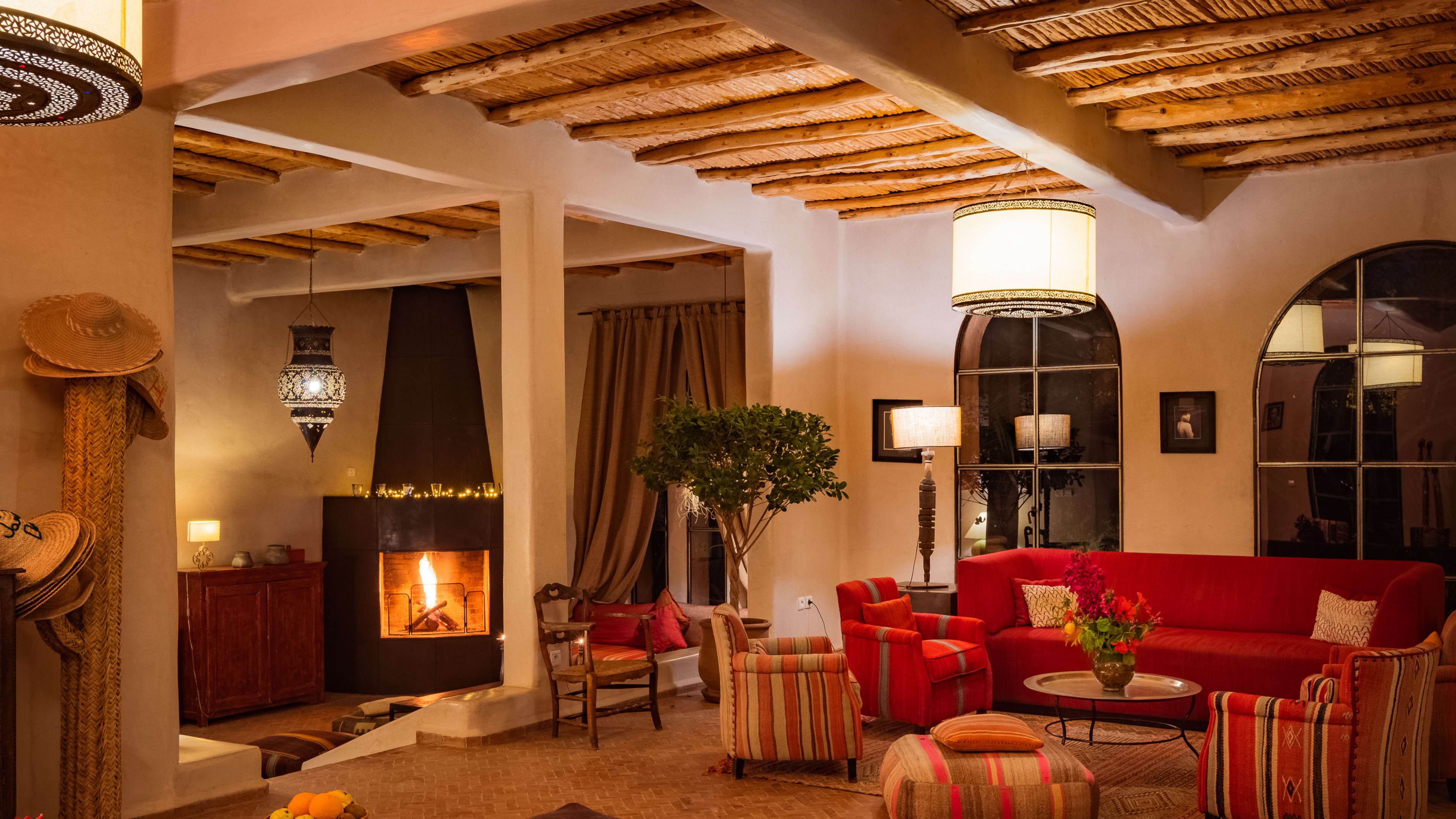 There are two restaurants serving North African cuisine with French influences. Casual Le Ksar is a spacious room in sultry reds and deep orange, with full-length windows down to the river valley and a cushioned sunken lounge area. The terrace in front of the main house is where breakfast and lunch (including a magnificent Sunday barbecue buffet) are served. The menu changes daily: check the blackboard for light fare such as salads, grilled gambas or salmon tartare. Chalk your name on the board if you want to dine in that night; the à la carte menu changes every couple of weeks. Adults-only La Table des Douars – an intimate dining room of mirrors, cosy nooks and romantic lamps – is ideal for a tête à tête. The open kitchen is a bustling walk-in affair, where guests can watch the fragrant Morrocan cuisine being prepared: there’s roast beef fillet with a herb crust, crushed potatoes with Sidi Yassine argan oil, or tender salmon maki with preserved lemons and date pesto.