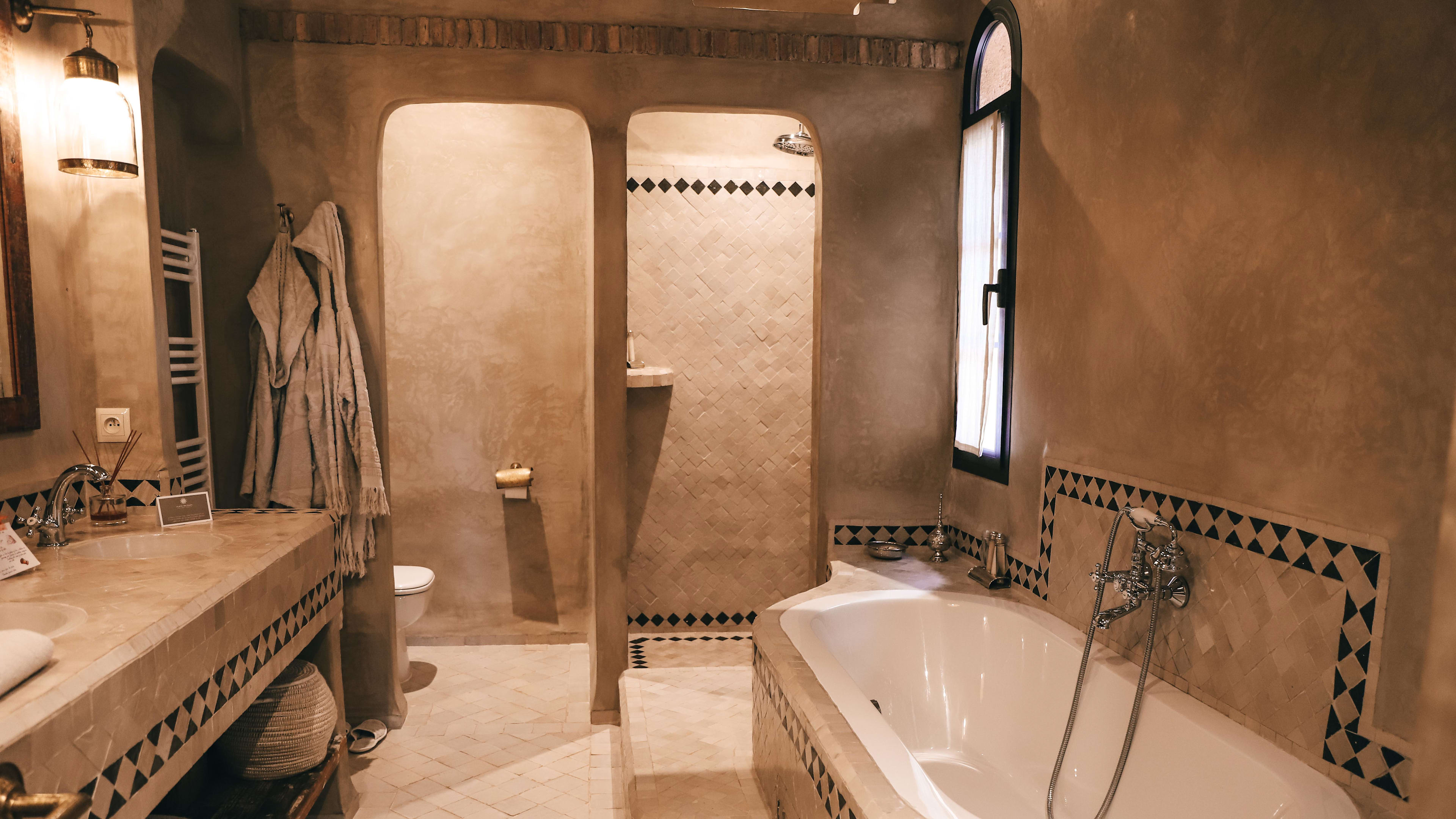 In the bathrooms, you'll find a mini hamman kit stocked with local argan-oil products.