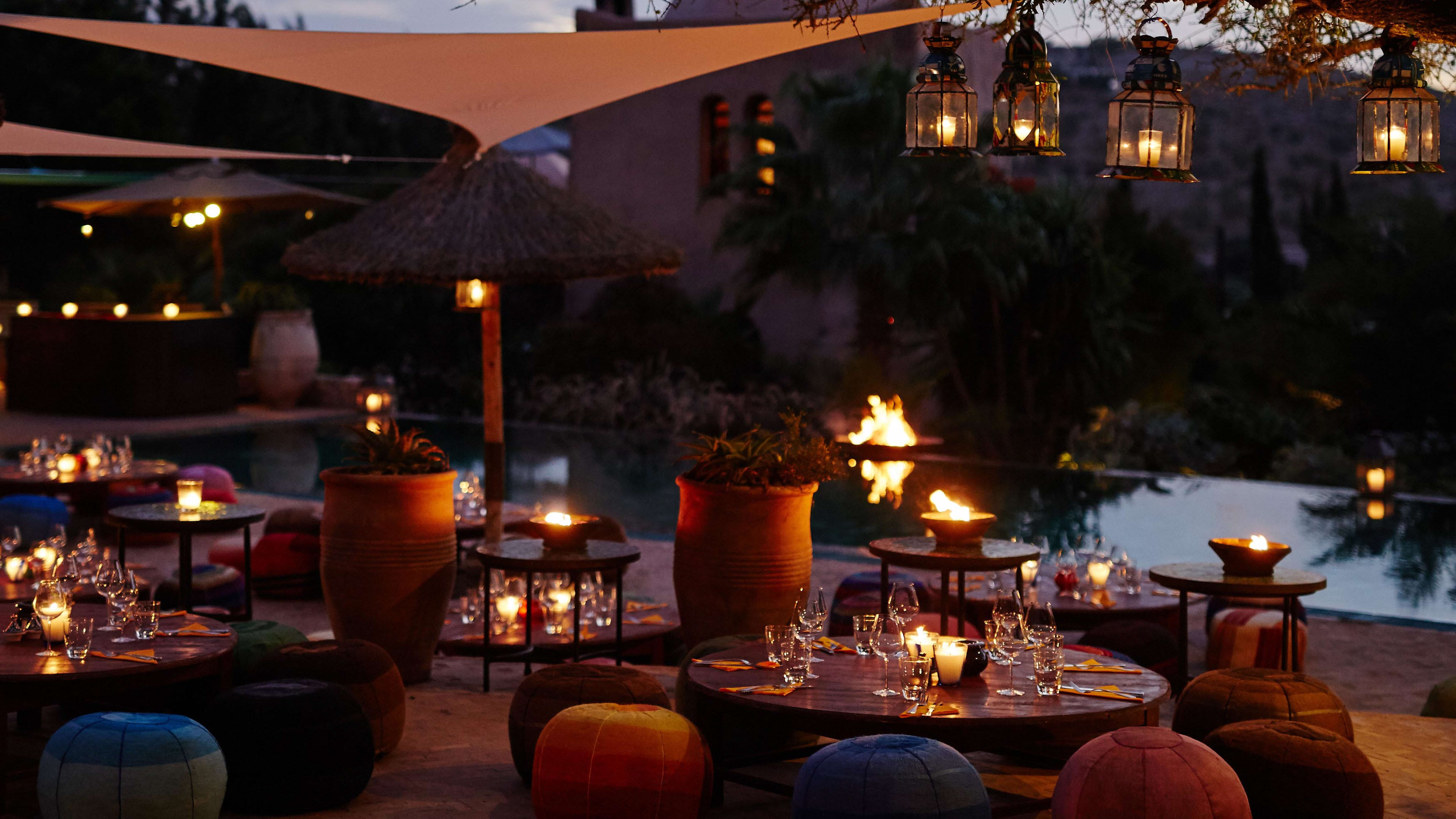 In the main restaurant, choose a window-side seat for the perfect valley view. Sweet-nothing-whispering couples should reserve a candlelit table in La Table des Douars.
