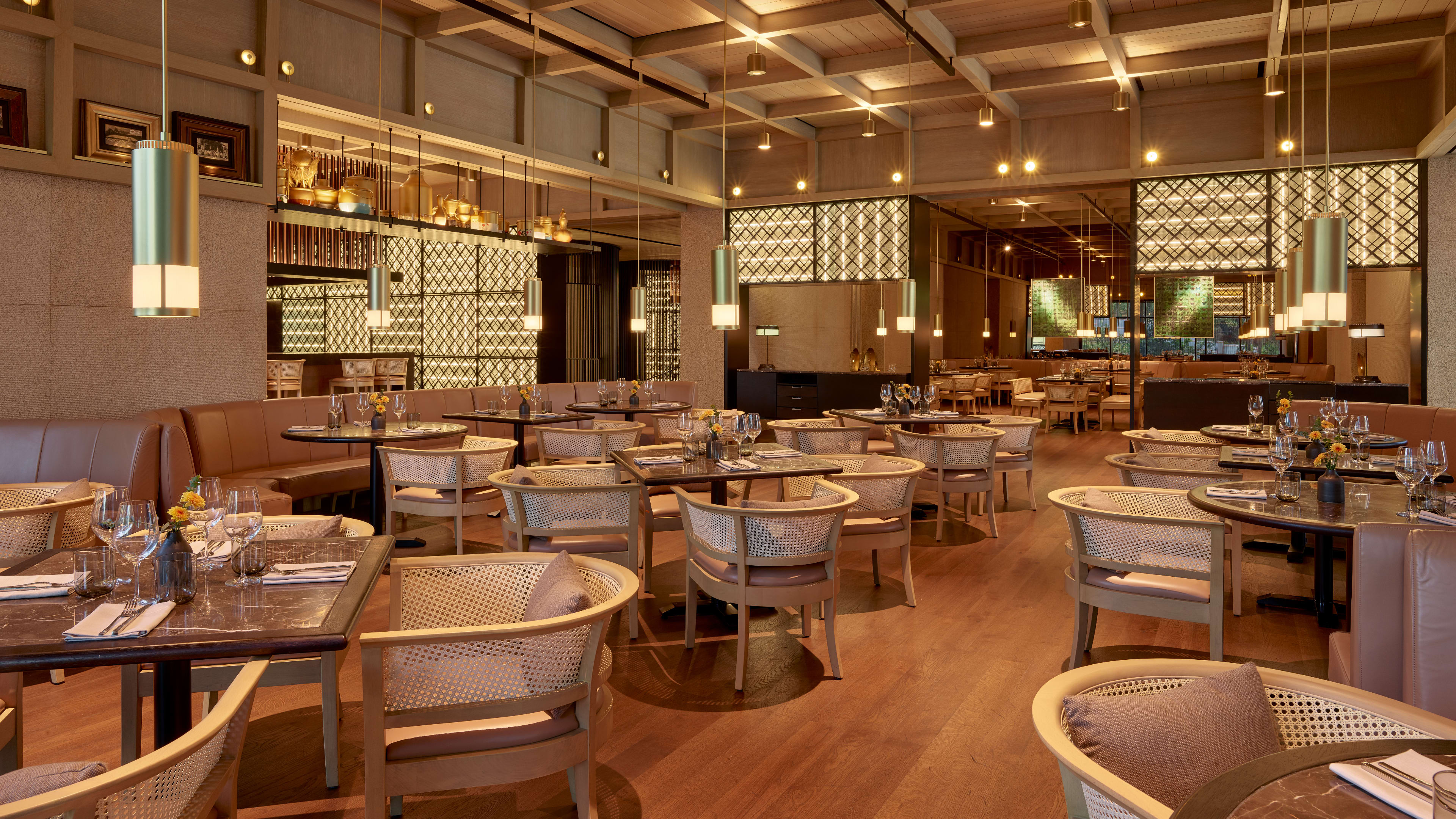 Atas Restaurant is on the mezzanine above the lobby, reached by climbing the impressive double spiral staircase. Rich-toned woods dominate the design scheme, appearing on the decorative ceiling, gleaming parquet floor and elegantly curved wicker furniture. The menu takes guests on a culinary journey, using choice local produce. It’s no run-of-the-mill heritage trip, however – dishes make a few twists and turns along the way, combining diverse flavours in new and unexpected ways. The menu is European-inspired menu has plenty to offer. Try the wagyu beef tartare with smoked egg yolk aioli and scallop ceviche to start; follow with the herb-crusted rack of lamb with mushroom arancini, heirloom carrots and black pepper jus.