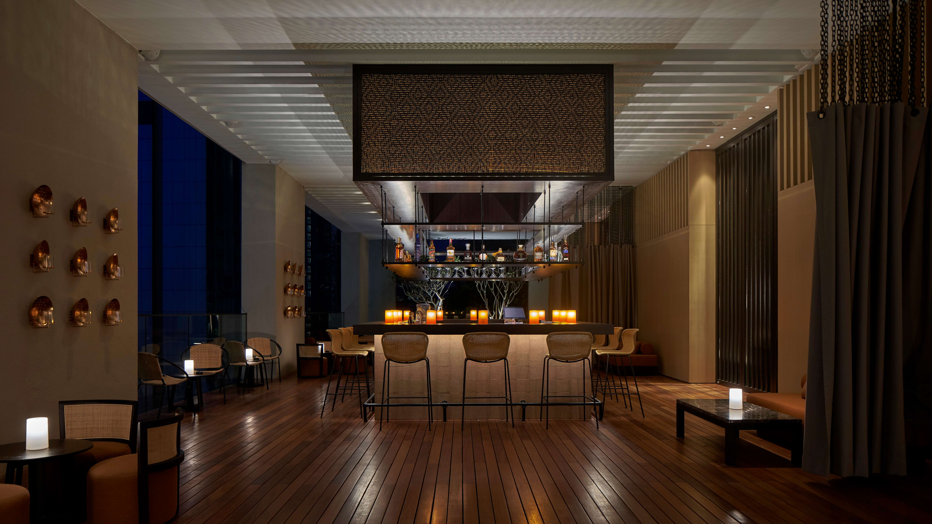 Seven Lobby Bar & Lounge is near the entrance to the hotel, with lounge chairs and sofas spread beneath the light-filled atrium. Try some of the 77 gins or their signature cocktail, the jungle bird, a blend of dark rum, Campari and pineapple.