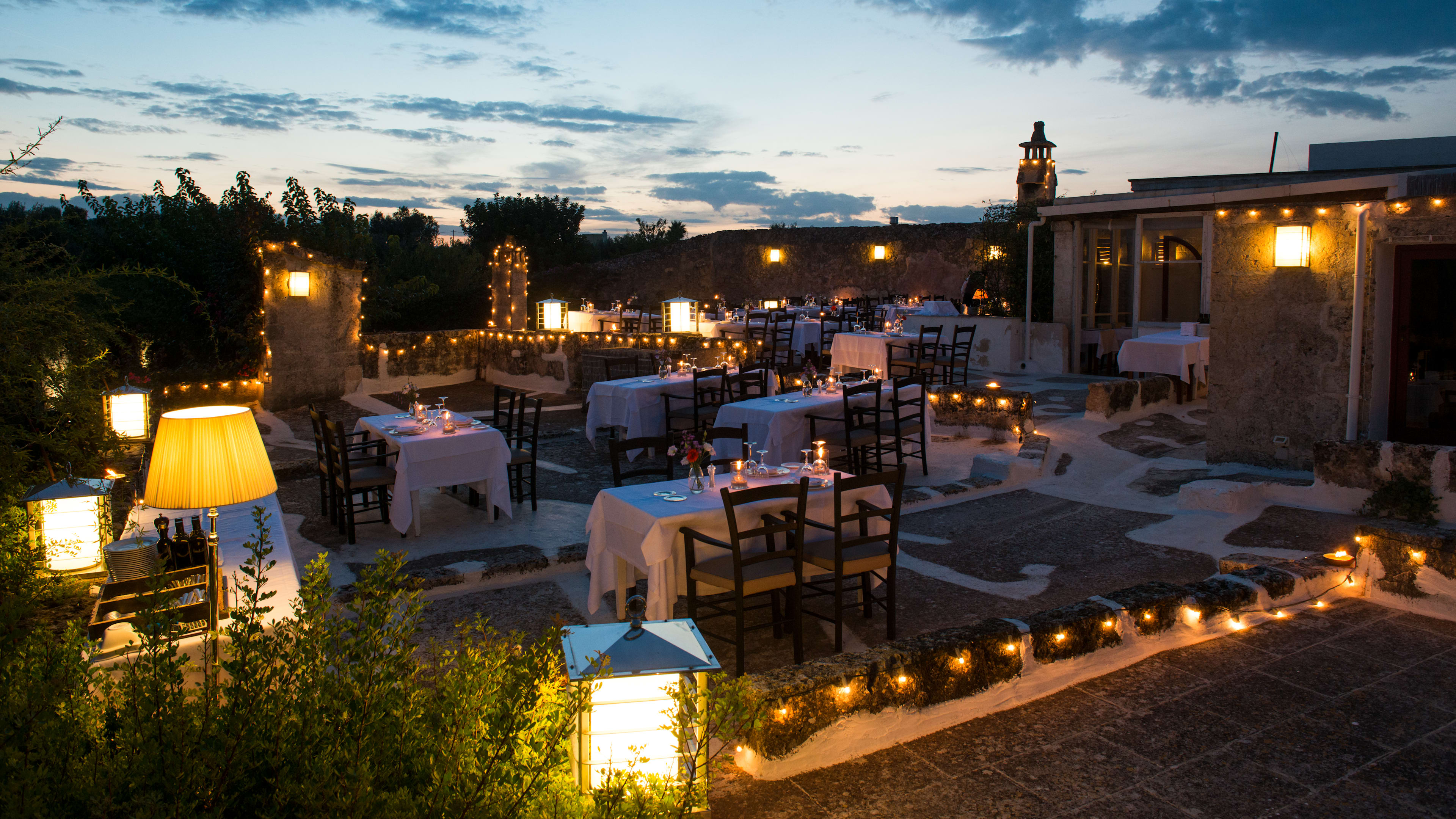 Egnathia restaurant is set under the star-shaped vaults of the old stables and serves organic Puglian cuisine. The beach-club restaurant specialises in sushi and fish dishes.