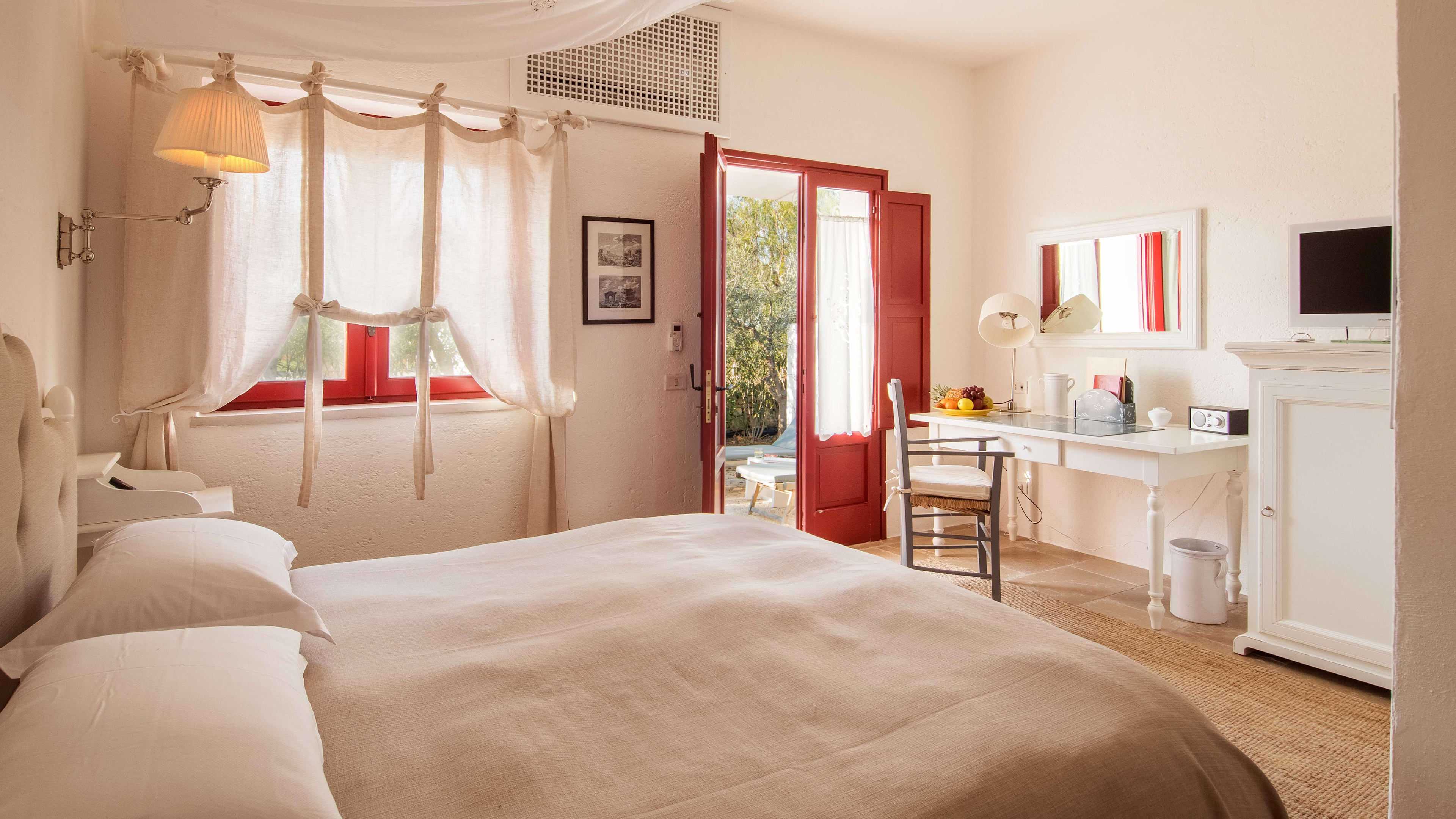 The nearest airports are Bari (served by BA and Ryanair) and Brindisi (served by Ryanair), both roughly an hour’s drive from Masseria Torre Coccaro. Alternatively, it’s 40 minutes by train to Fasano (transfer from the airport to the train station by bus).
