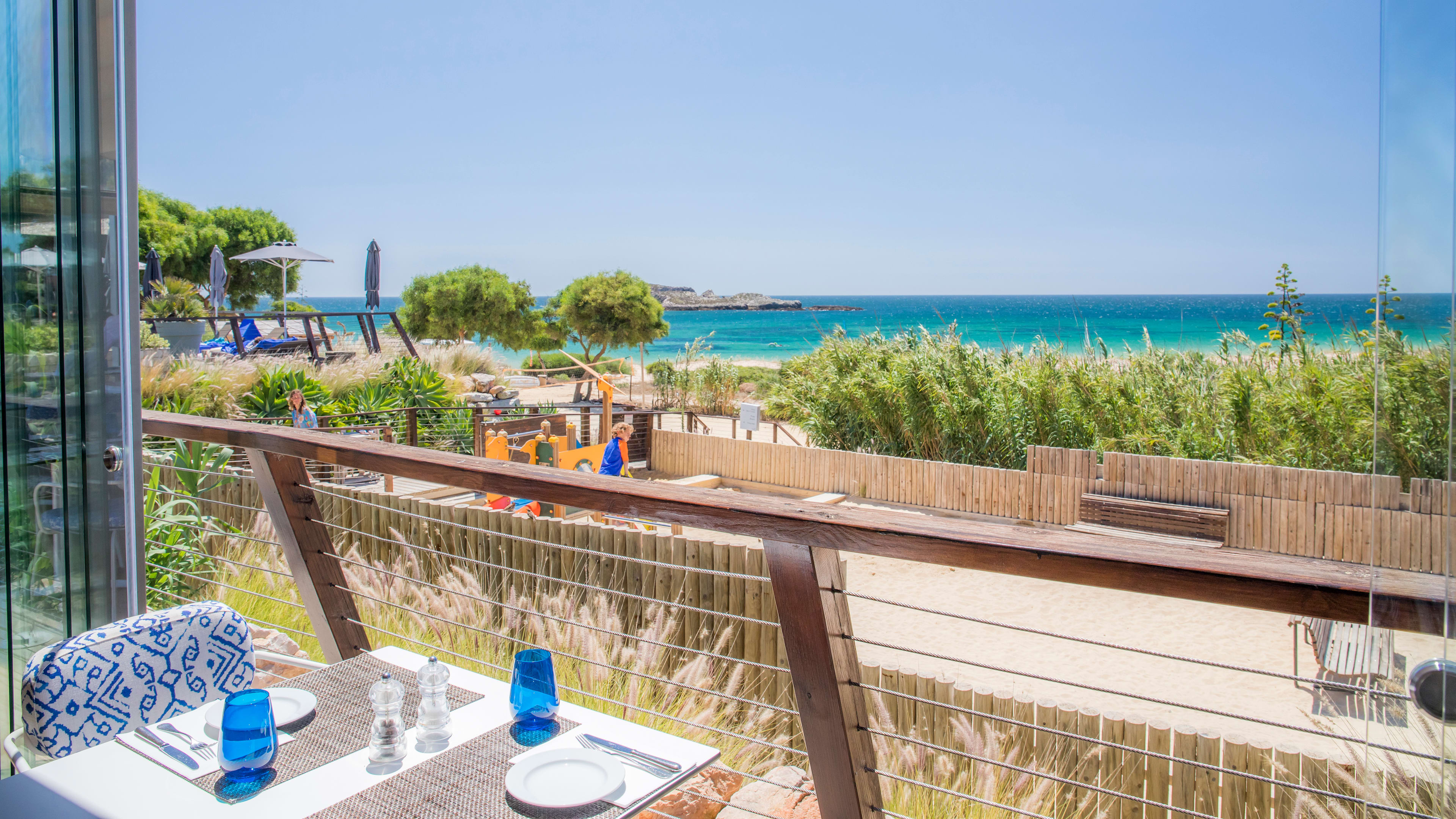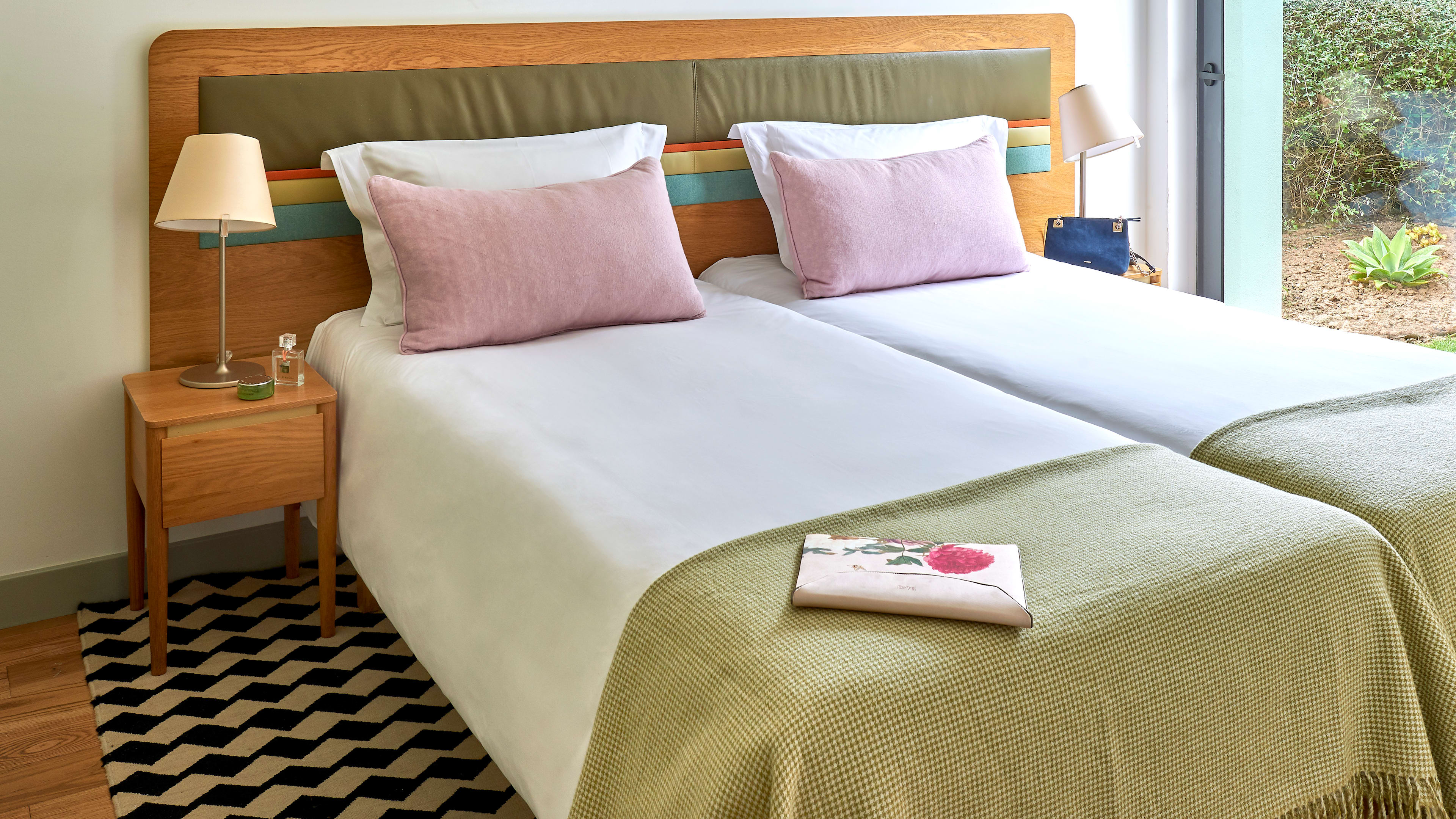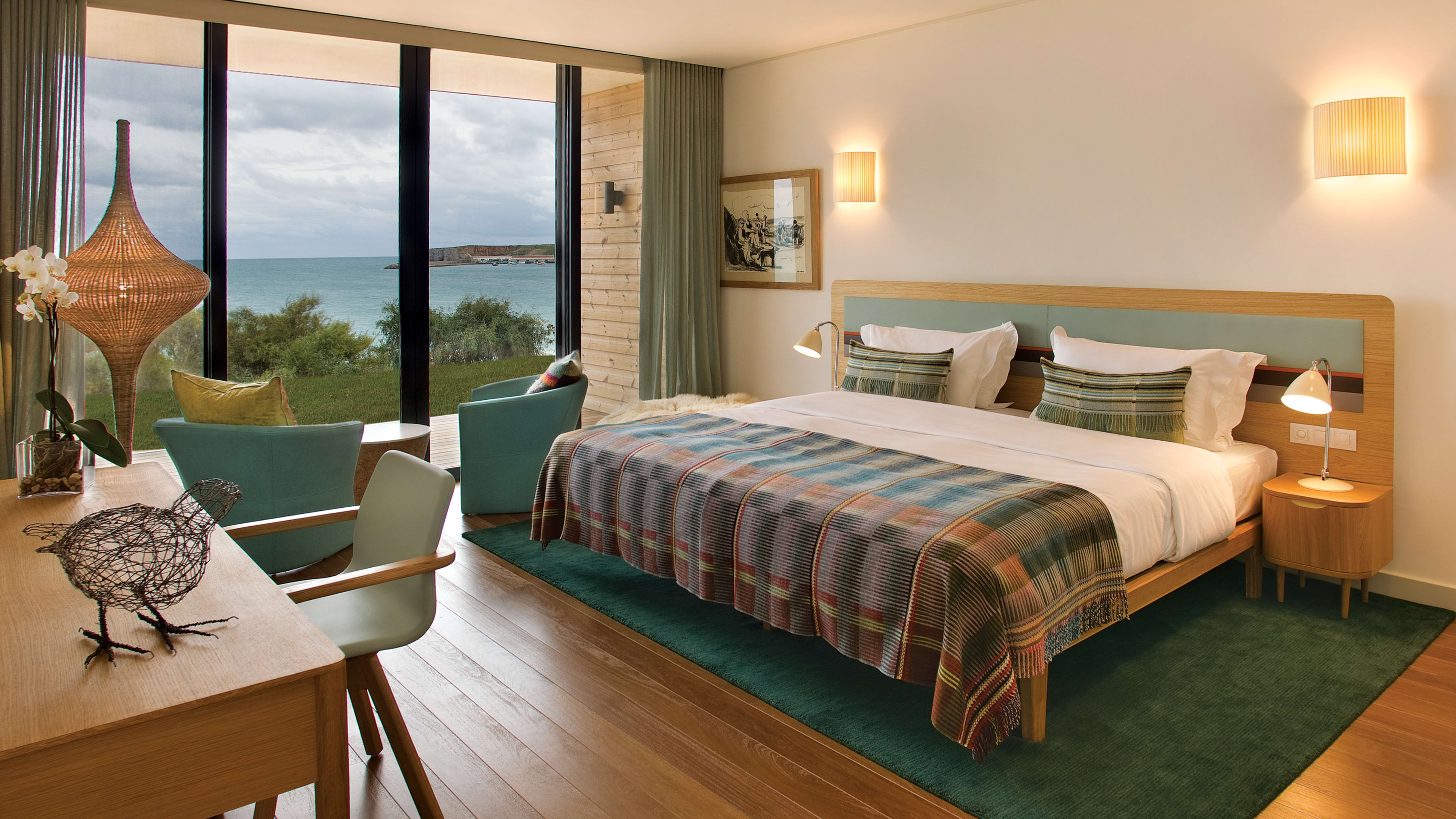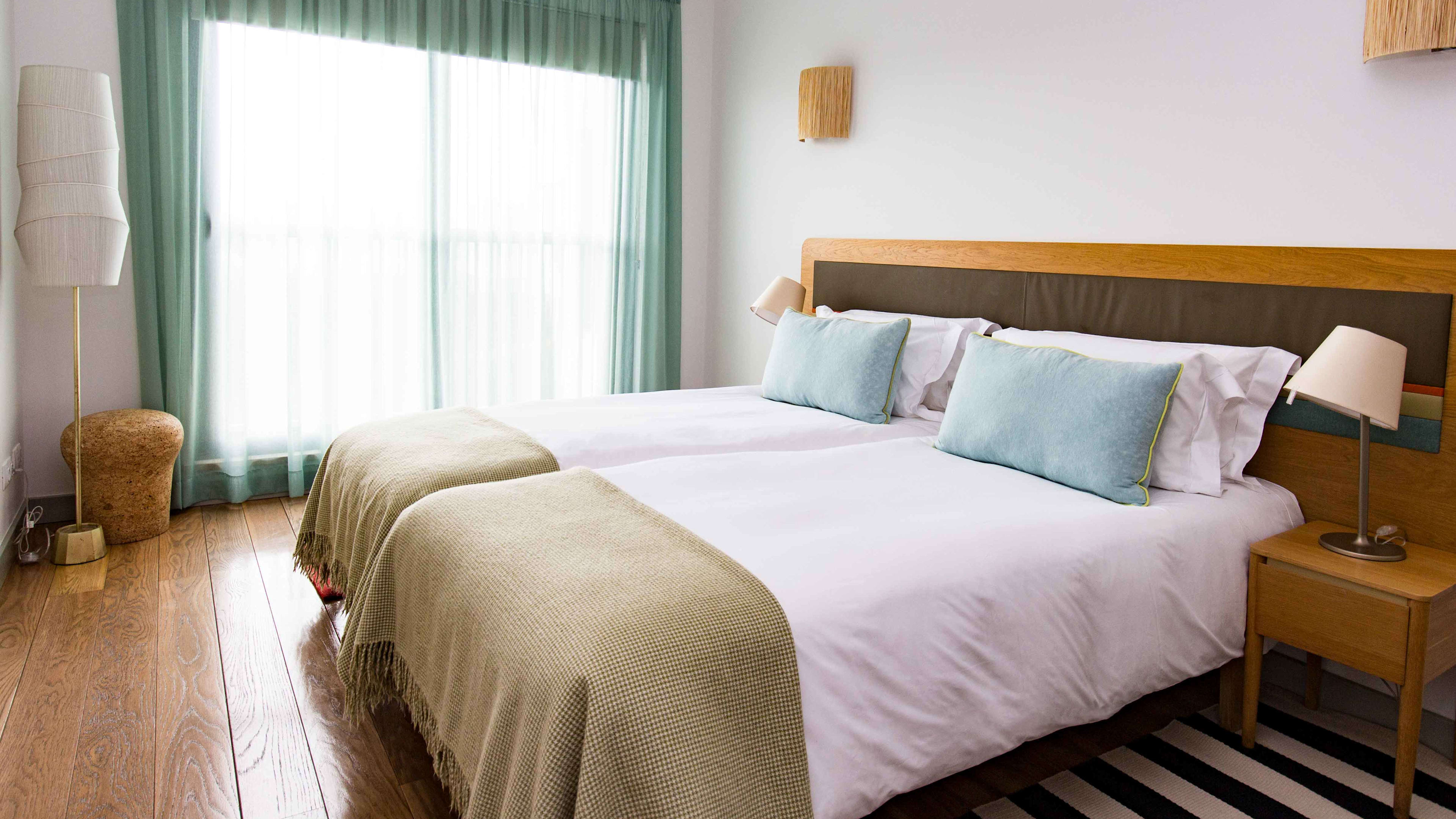 The hotel’s main restaurant O Terraço surveys the sea, with floor-to-ceiling windows, white linen-clad tables and timber decking. Traditional Portuguese recipes are inventively reinterpreted; try the signature starter of sea urchin with scrambled egg. There’s also As Dunas Beach Bar and Restaurant; casual by day and candlelit by night, it champions fresh fish and seafood at all times. On top of this you’ll find Os Gambozinos (pizza and pasta on the square) and the Beach Club bar (serving snacks, juices and ice creams to have straight on the sands). Back on the square there’s a juice bar, while Club 98 within the hotel’s tennis club also serves snacks and drinks. Because lots of guests are here with tots in tow, meals tend to be eaten early. The hotel has put some Covid-19 restrictions in place. During this time, As Dunas will serve à la carte breakfast (must be booked in advance), some light snacks and drinks, and seated lunch and dinner; Os Gambozinos will be open for pre-booked dinners; and Club 98 will serve drinks and ice-cream – delivery and takeaway options will be available too.