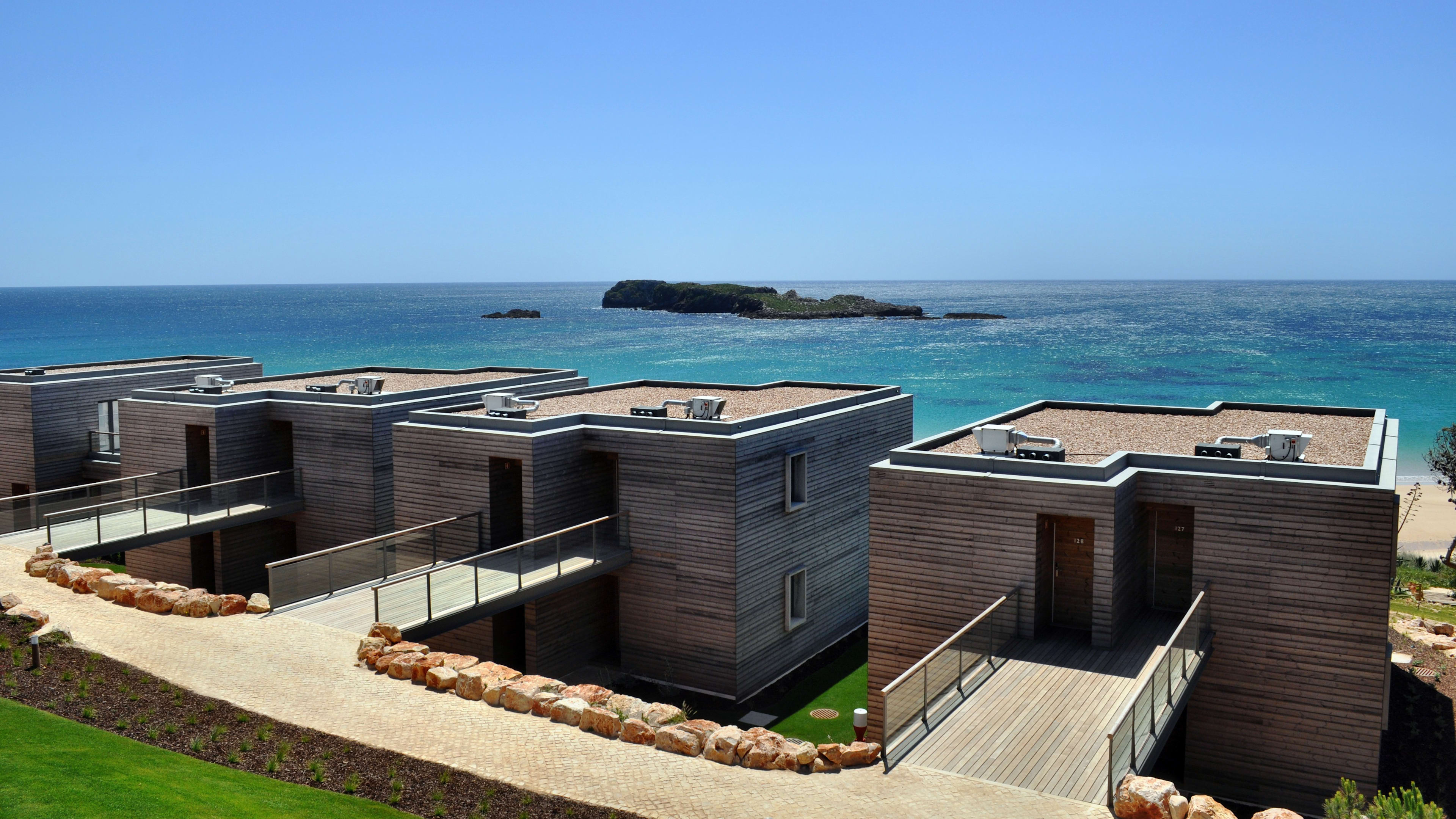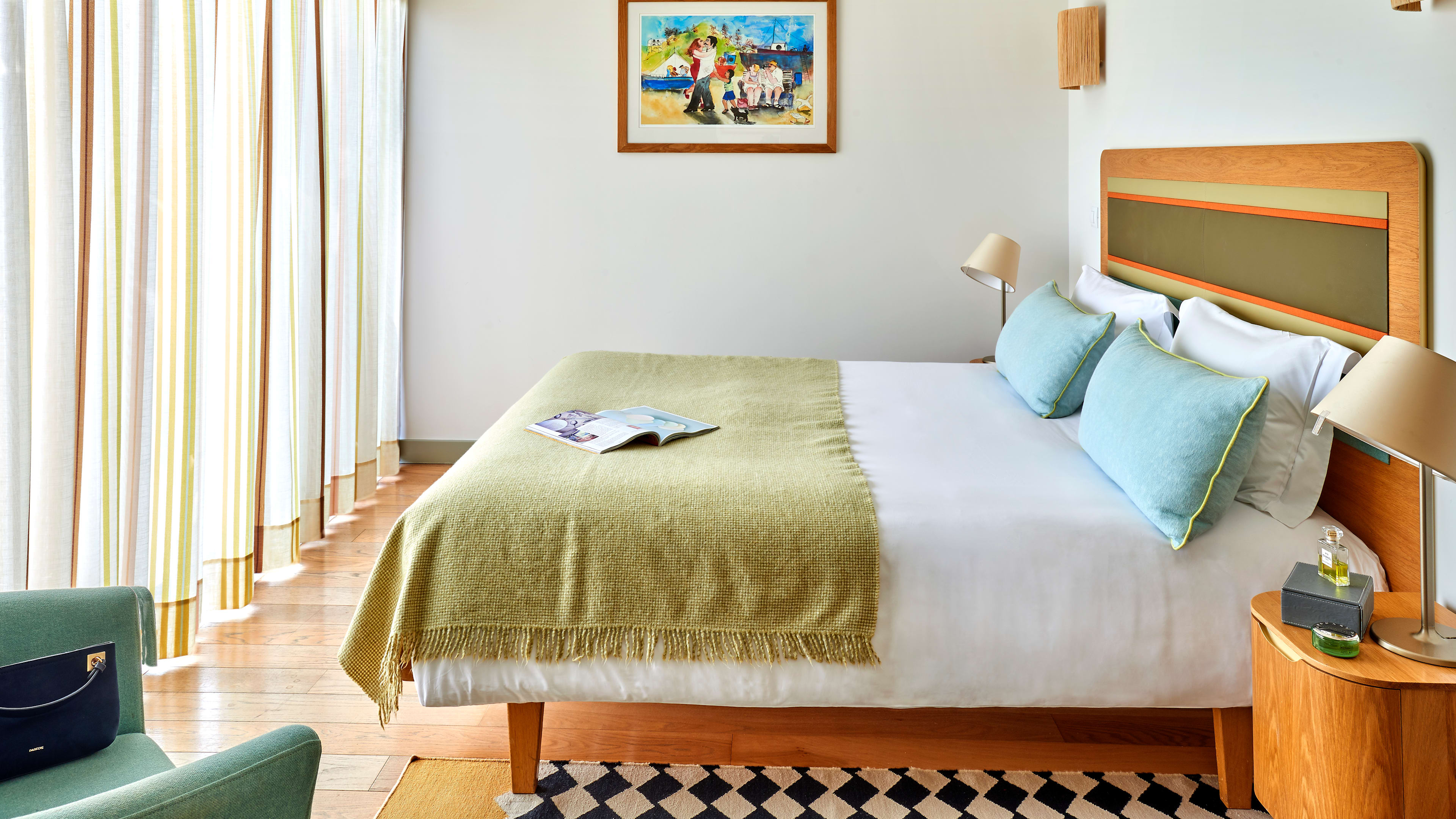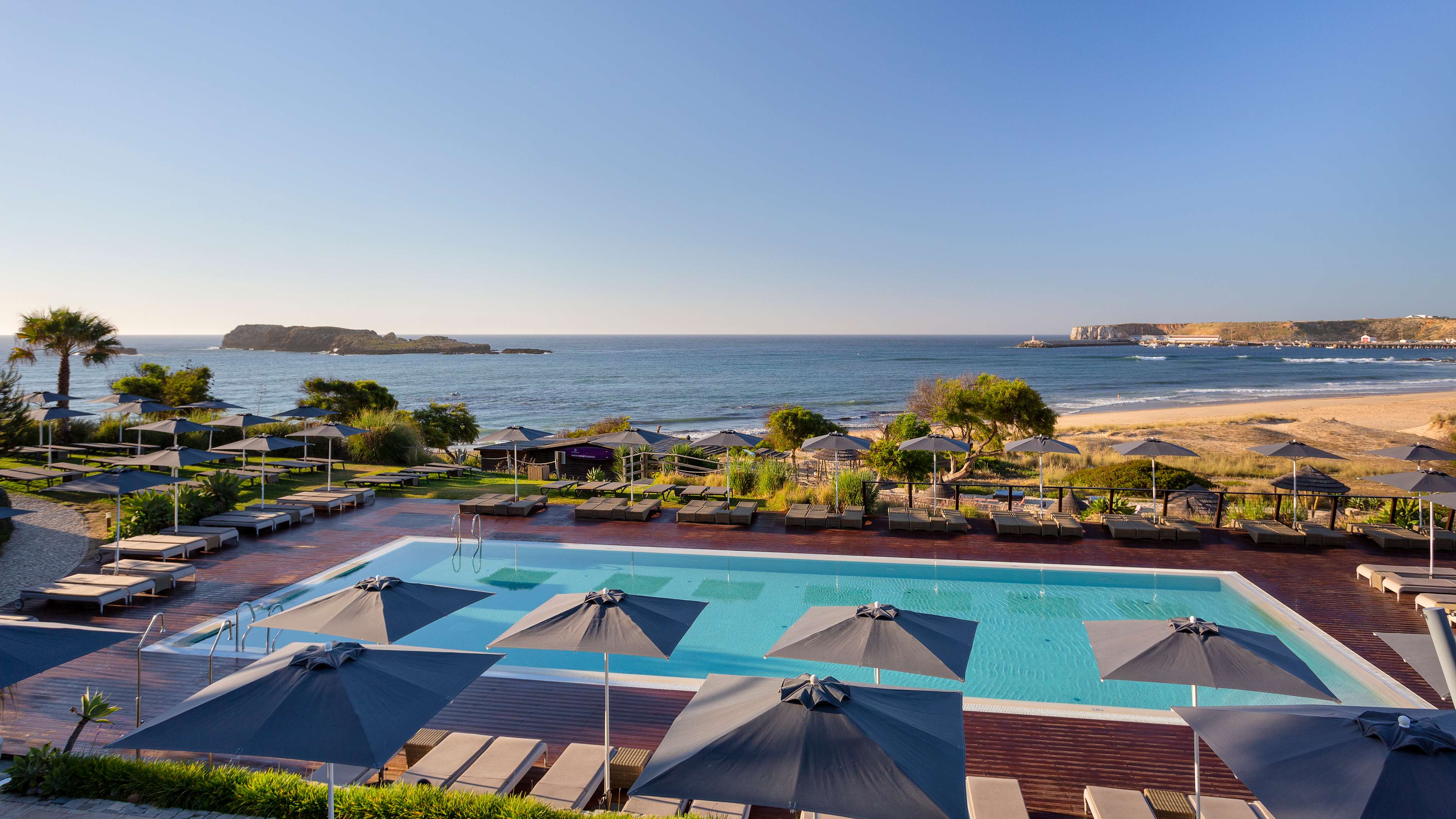 The hotel’s main restaurant O Terraço surveys the sea, with floor-to-ceiling windows, white linen-clad tables and timber decking. Traditional Portuguese recipes are inventively reinterpreted; try the signature starter of sea urchin with scrambled egg. There’s also As Dunas Beach Bar and Restaurant; casual by day and candlelit by night, it champions fresh fish and seafood at all times. On top of this you’ll find Os Gambozinos (pizza and pasta on the square) and the Beach Club bar (serving snacks, juices and ice creams to have straight on the sands). Back on the square there’s a juice bar, while Club 98 within the hotel’s tennis club also serves snacks and drinks. Because lots of guests are here with tots in tow, meals tend to be eaten early. The hotel has put some Covid-19 restrictions in place. During this time, As Dunas will serve à la carte breakfast (must be booked in advance), some light snacks and drinks, and seated lunch and dinner; Os Gambozinos will be open for pre-booked dinners; and Club 98 will serve drinks and ice-cream – delivery and takeaway options will be available too.