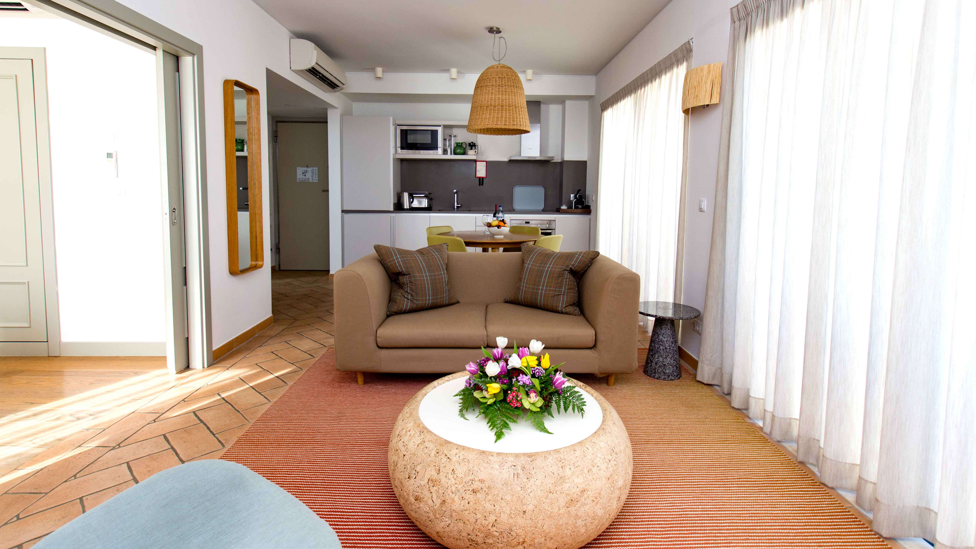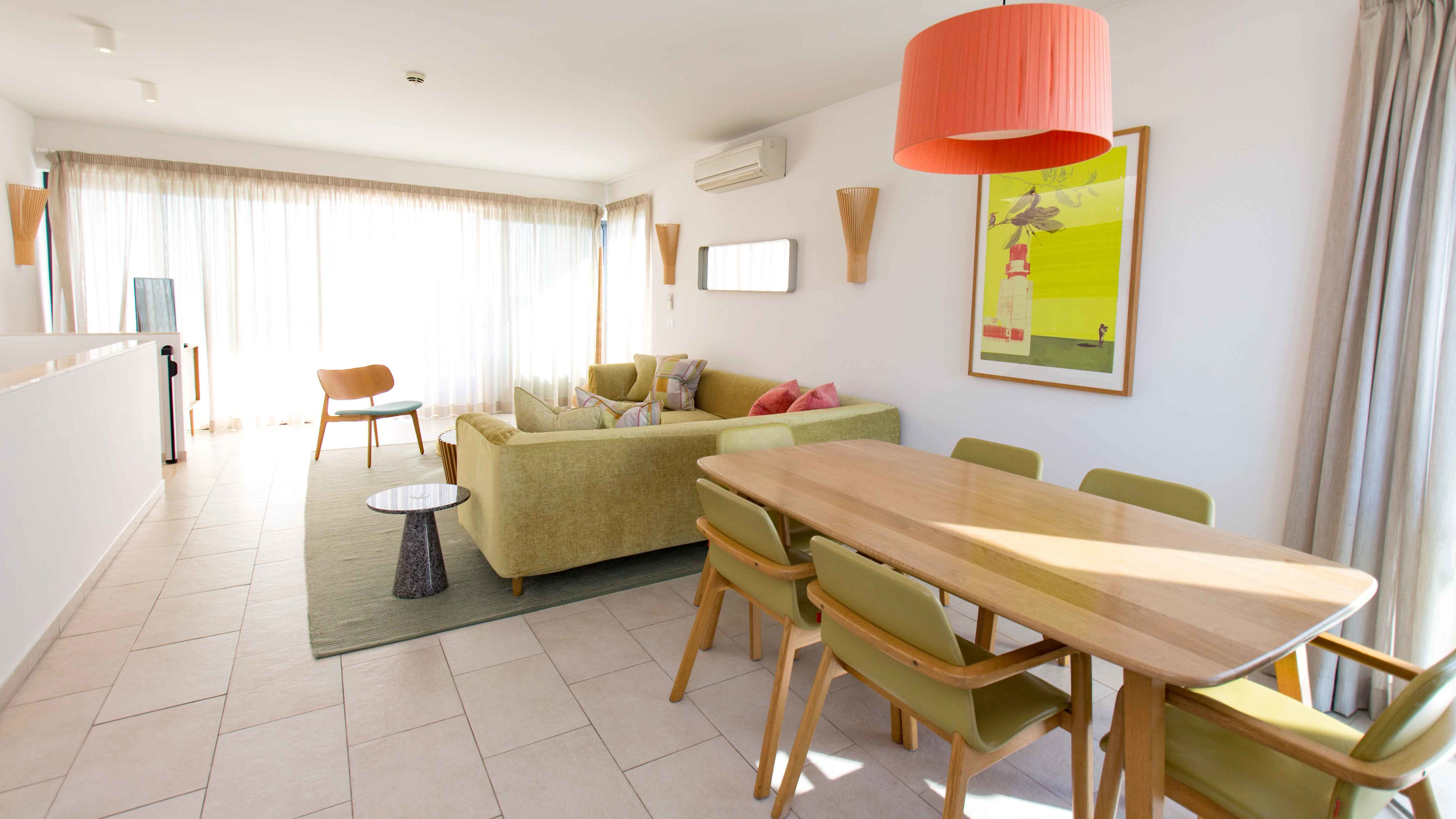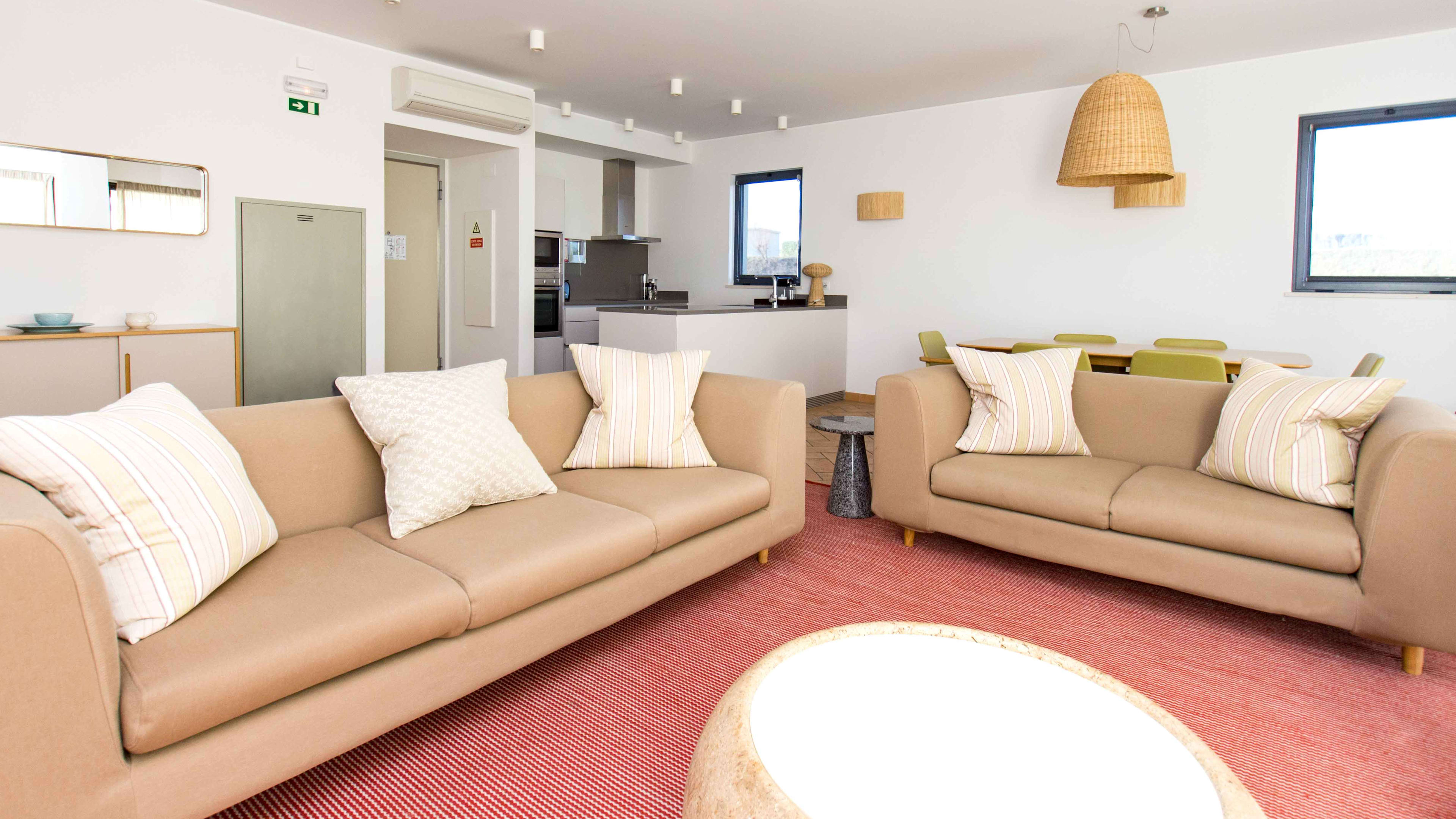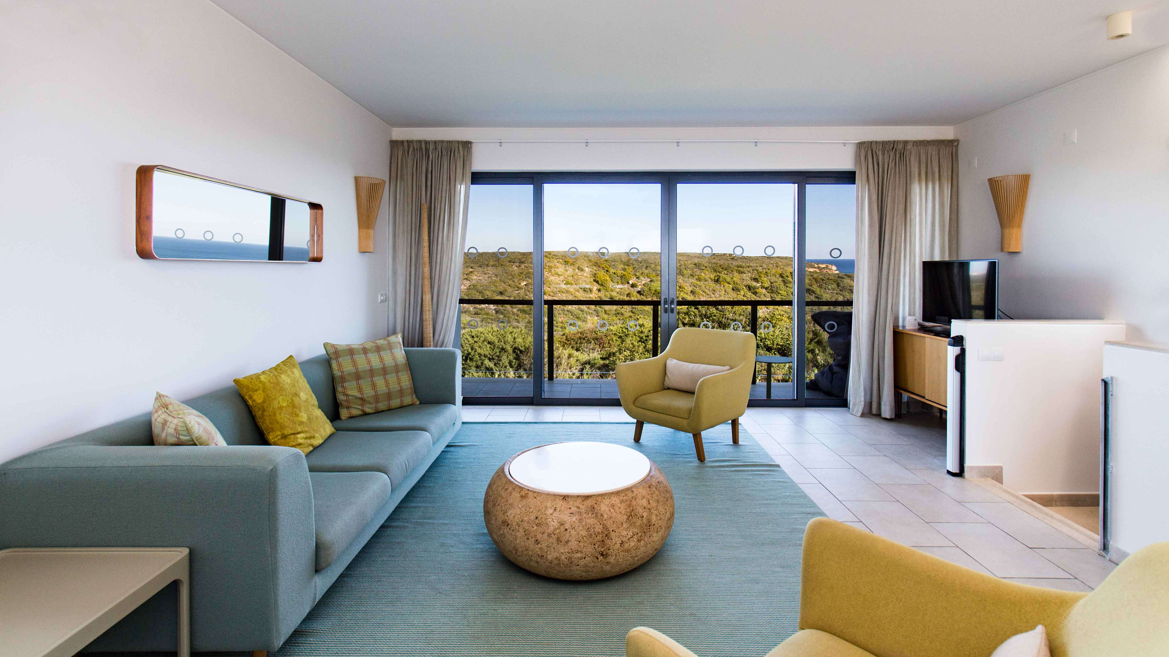 The hotel’s main restaurant O Terraço surveys the sea, with floor-to-ceiling windows, white linen-clad tables and timber decking. Traditional Portuguese recipes are inventively reinterpreted; try the signature starter of sea urchin with scrambled egg. There’s also As Dunas Beach Bar and Restaurant; casual by day and candlelit by night, it champions fresh fish and seafood at all times. On top of this you’ll find Os Gambozinos (pizza and pasta on the square) and the Beach Club bar (serving snacks, juices and ice creams to have straight on the sands). Back on the square there’s a juice bar, while Club 98 within the hotel’s tennis club also serves snacks and drinks. Because lots of guests are here with tots in tow, meals tend to be eaten early. The hotel has put some Covid-19 restrictions in place. During this time, As Dunas will serve à la carte breakfast (must be booked in advance), some light snacks and drinks, and seated lunch and dinner; Os Gambozinos will be open for pre-booked dinners; and Club 98 will serve drinks and ice-cream – delivery and takeaway options will be available too.