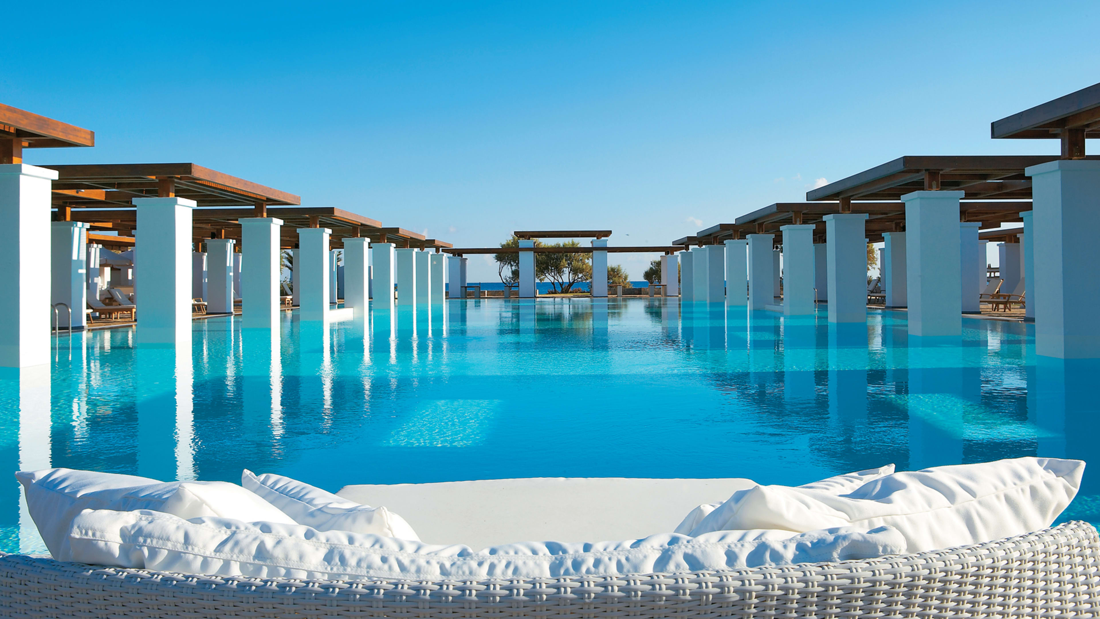 Amirandes has seven restuarants, offering everything from Med fine-dining to typical taverna fare. The choice will keep your palate piqued on longer stays, but we like Blue Monkey for its sublime sushi best. Head to Amirandes, set around a water feature, if you’re indecisive: extensive buffets, with healthy and vegetarian options, are on offer for breakfast and dinner. For a romantic dinner à deux, it has to be Lago di Candia, where floor-to-ceiling windows showcase the lagoon and international cuisine is served. Just be sure to reserve if you're planning on heading to the à la carte restaurants.