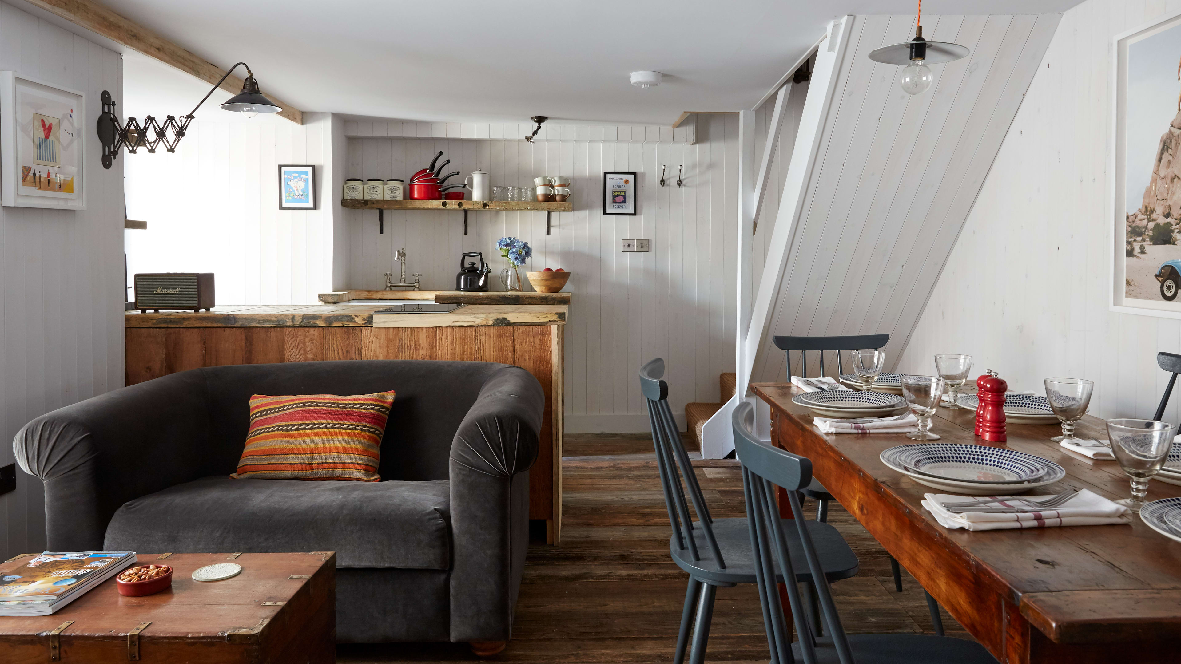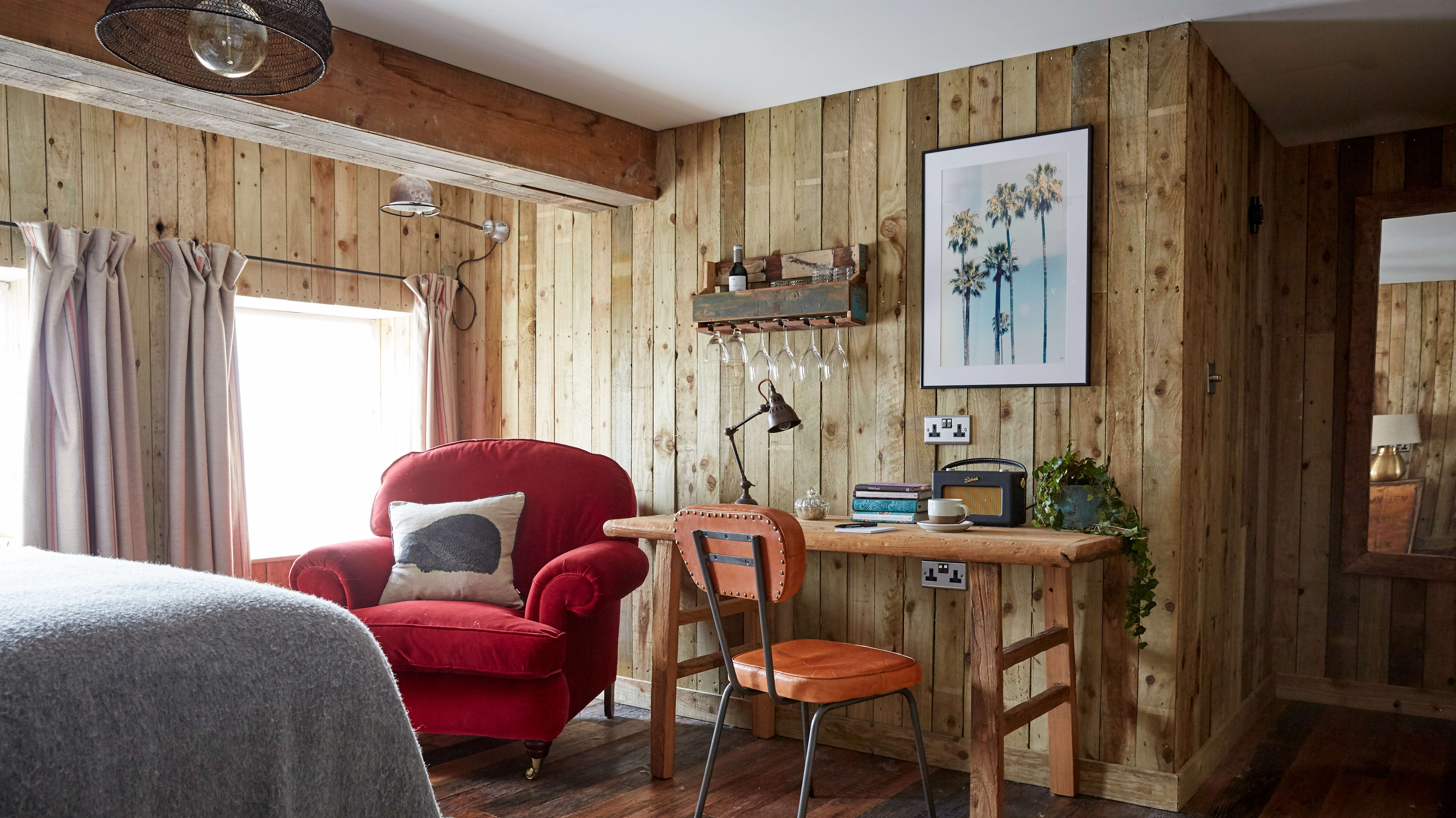 For longer stays and extra space, look to the third-floor Lookout suite, with its exposed beams, reclaimed furniture and a log burning stove. Some of the seaside-themed Comfy Luxe rooms have a roll-top bath tub in the bedroom, and each Super Comfy Luxe Double has cabin-style wood-plank walls, tea-chest bedside tables and a cavernous freestanding bath tub in the ensuite bathroom.