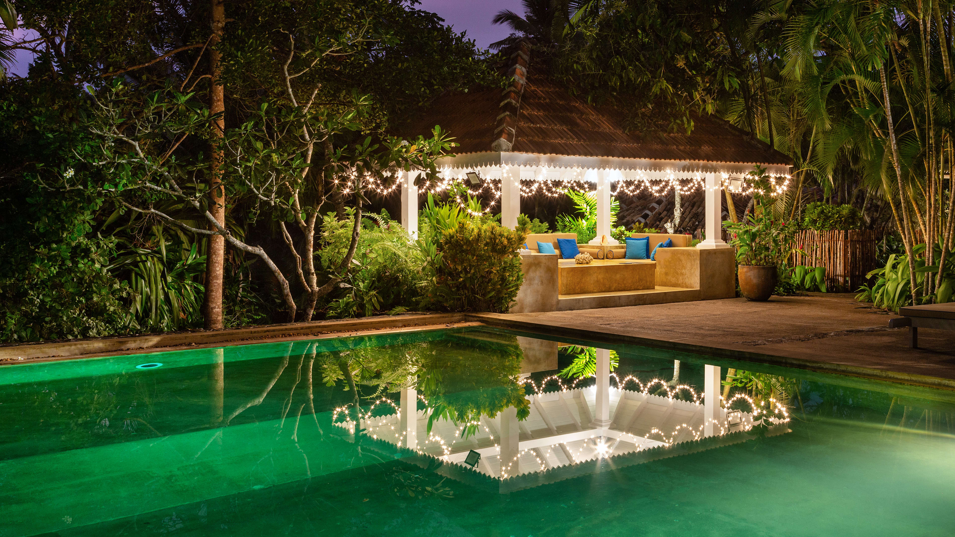 Vast tropical gardens; pool pavilion; massage pavilion; yoga shala; mini boutique; free WiFi throughout. In rooms: desk, air conditioning, minibar, free bottled water, locally sourced bath products.