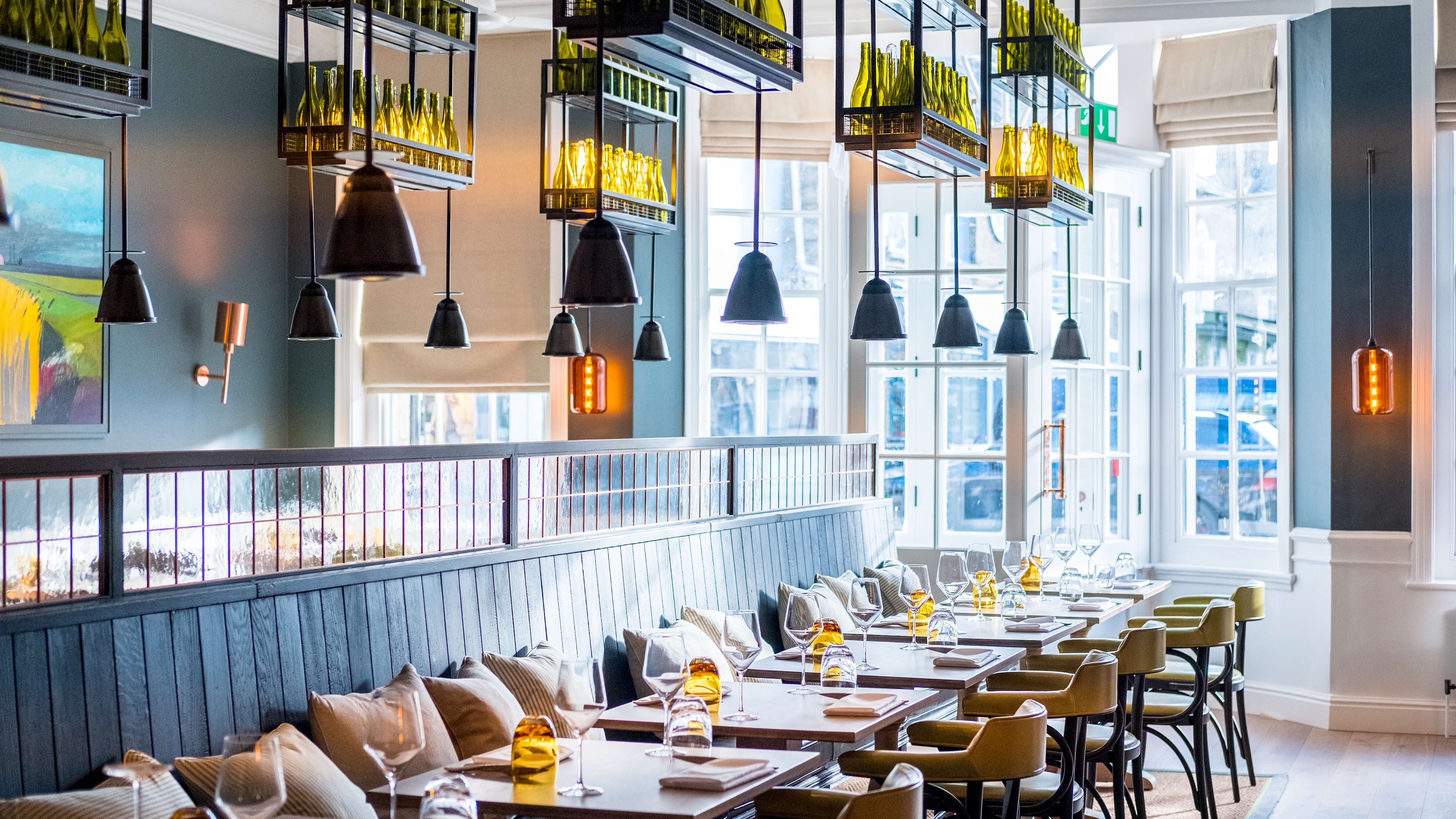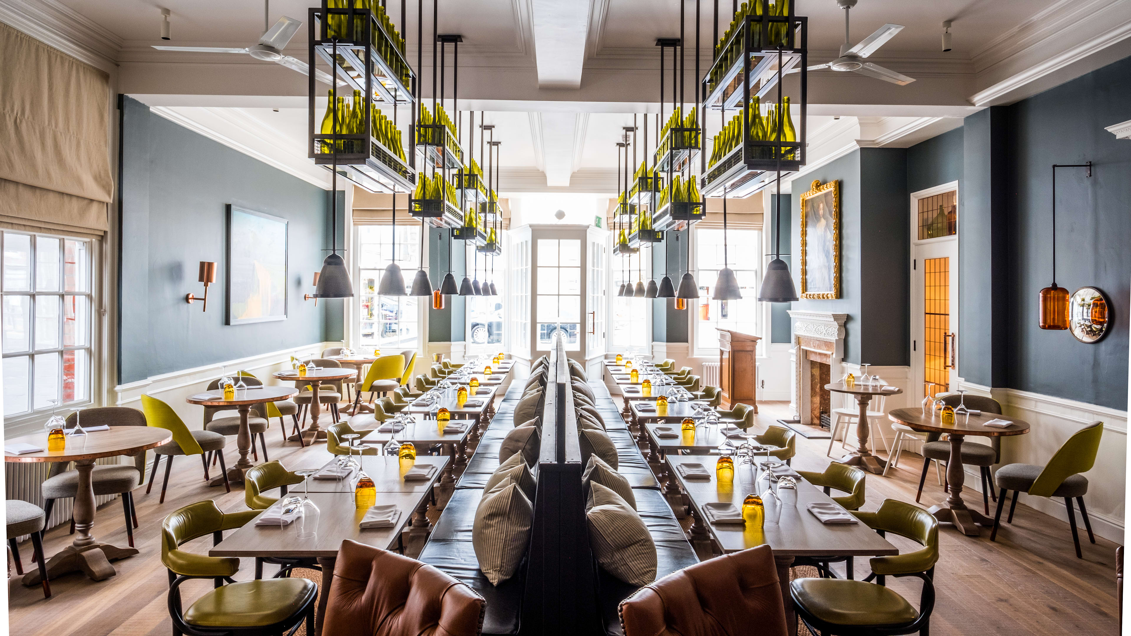 The restaurant takes many of its design cues from the distillery next door, the most obvious being the being the gleaming copper bar, which is lit by four still-shaped lamps. Over the tables, lights are hidden inside cases of wine bottles – a nod to Adnams’ wine makers across the channel. The menu is the work of chef Rory Whelan, who’s kept things as local as possible: seafood like scorched mackerel and hand-collected scallops champion the bounty of the local waters; meat offerings like duck breast and pork fillet fly the standard for Suffolk’s fields and fens. You’ll have no trouble finding an appropriate tipple to pair with, either – there’s a lengthy selection of Adnams beers and a carefully curated wine list.