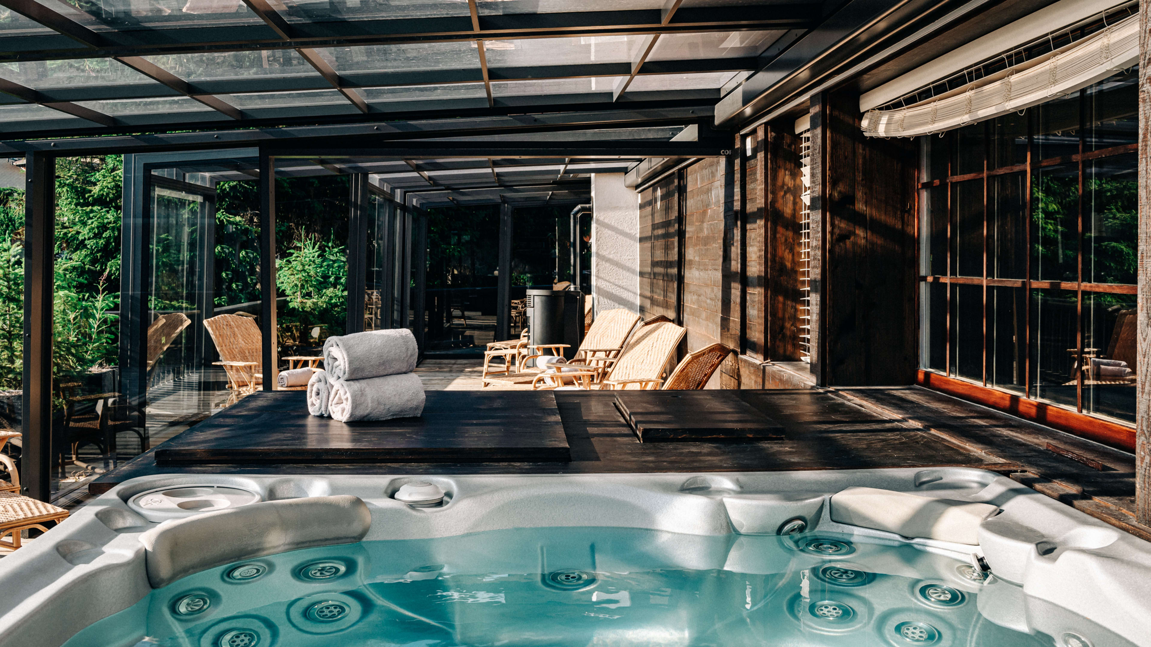 Experimental Chalet Spa is on the ground floor, and has three treatment rooms, a Jacuzzi, a hammam and a solarium. For their first ever spa, Experimental Group have collaborated with French skin specialists Biologique Recherche, who’ve been making cutting-edge cosmetics for more than 40 years. The treatments have been designed to make the most of their unique formulas, restoring skin that’s been tested by the Alpine elements.