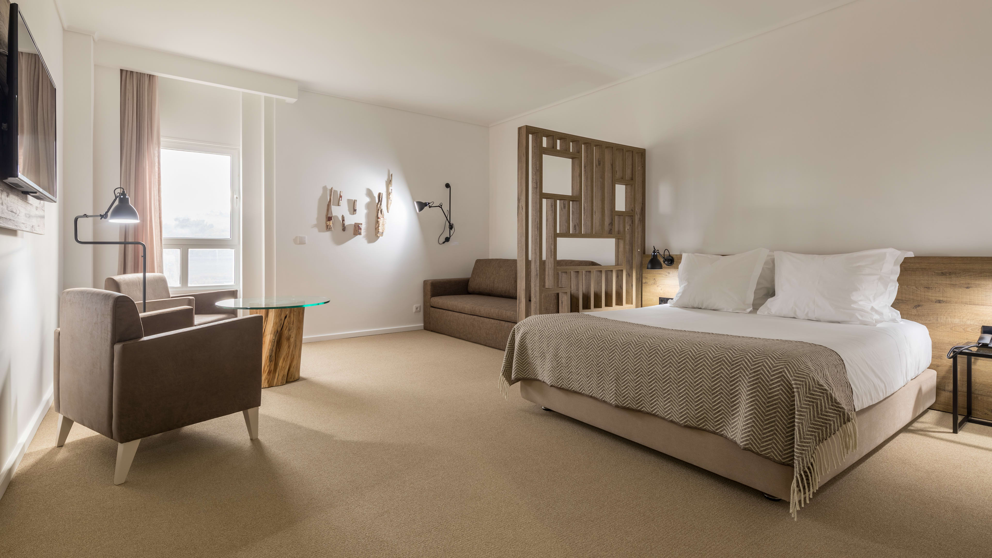 Gym, foosball and tennis courts, charging station for electric vehicles, kids club, free WiFi throughout. In rooms: flatscreen TV, minibar, air-conditioning, free bottled water, Castelbel toiletries.