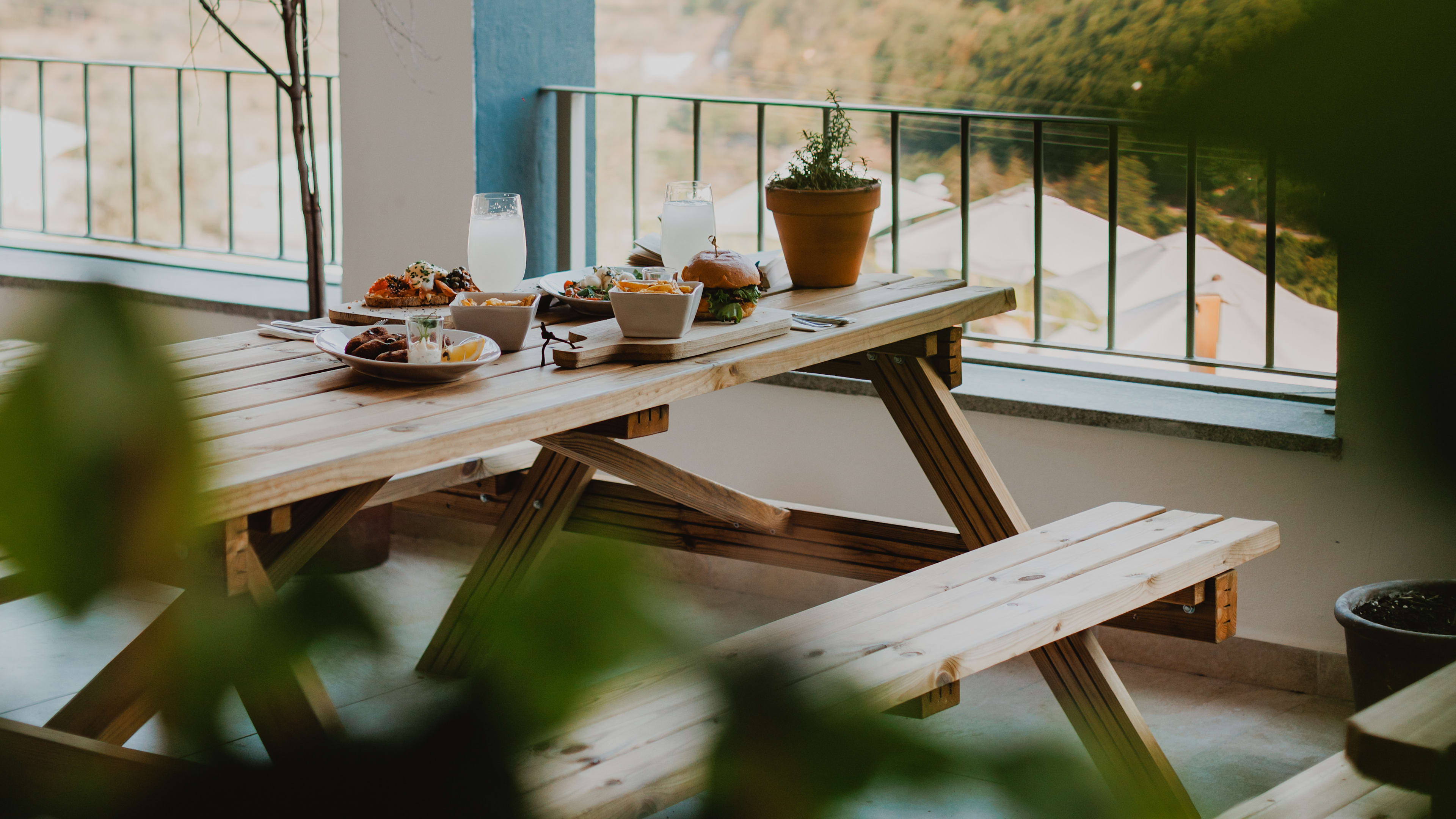 Head out onto the terrace if the weather’s playing ball, whether you prefer a sun-kissed view of the pool or a shaded spot under the parasols.