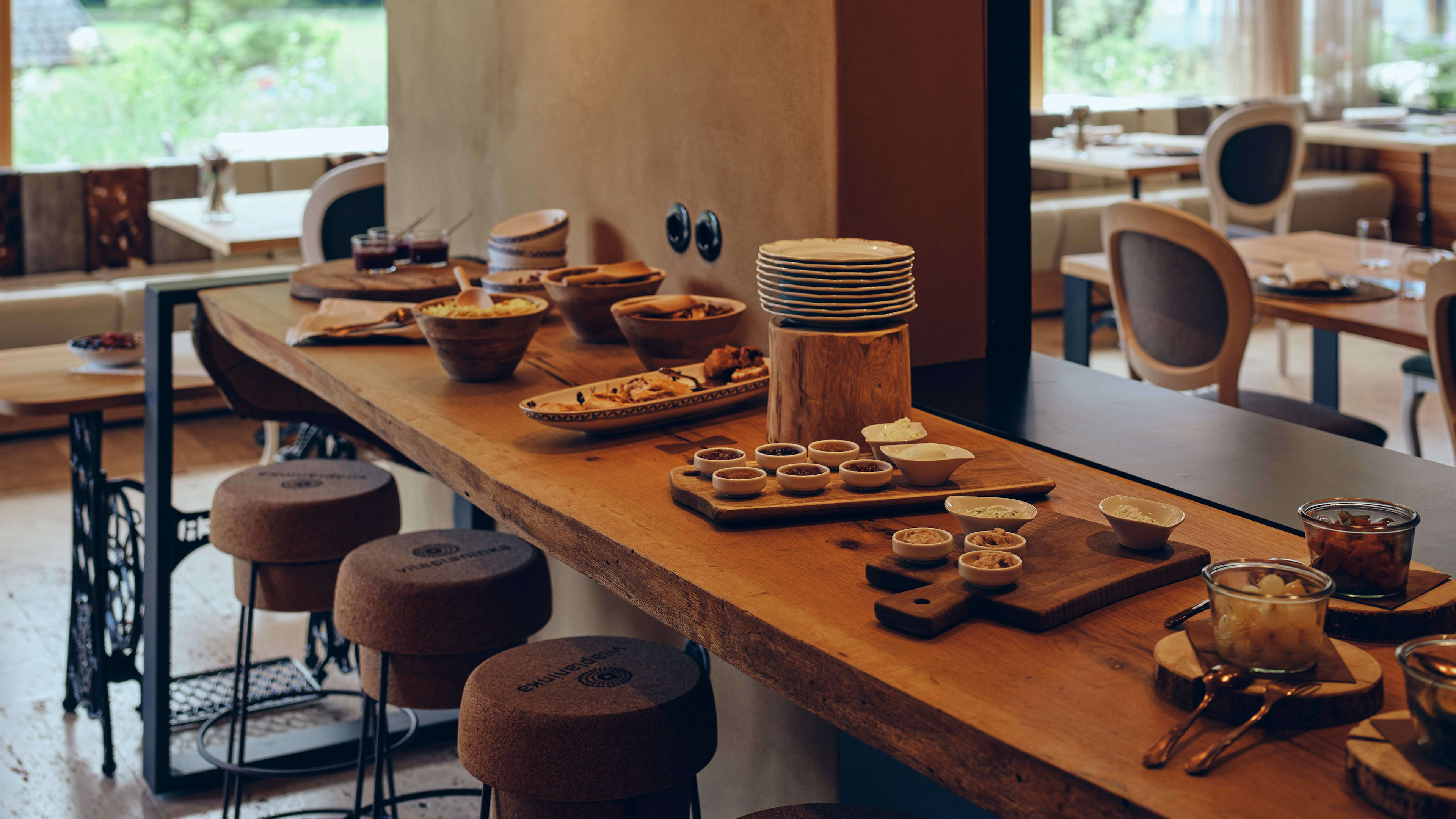 To one side of the dining room, you’ll find a counter bar where sommelier Marko Koren holds weekly wine tastings, showcasing the highlights of the hotel’s cellar of fine wines, including a good selection of biodynamic orange wines from the country’s south-west.