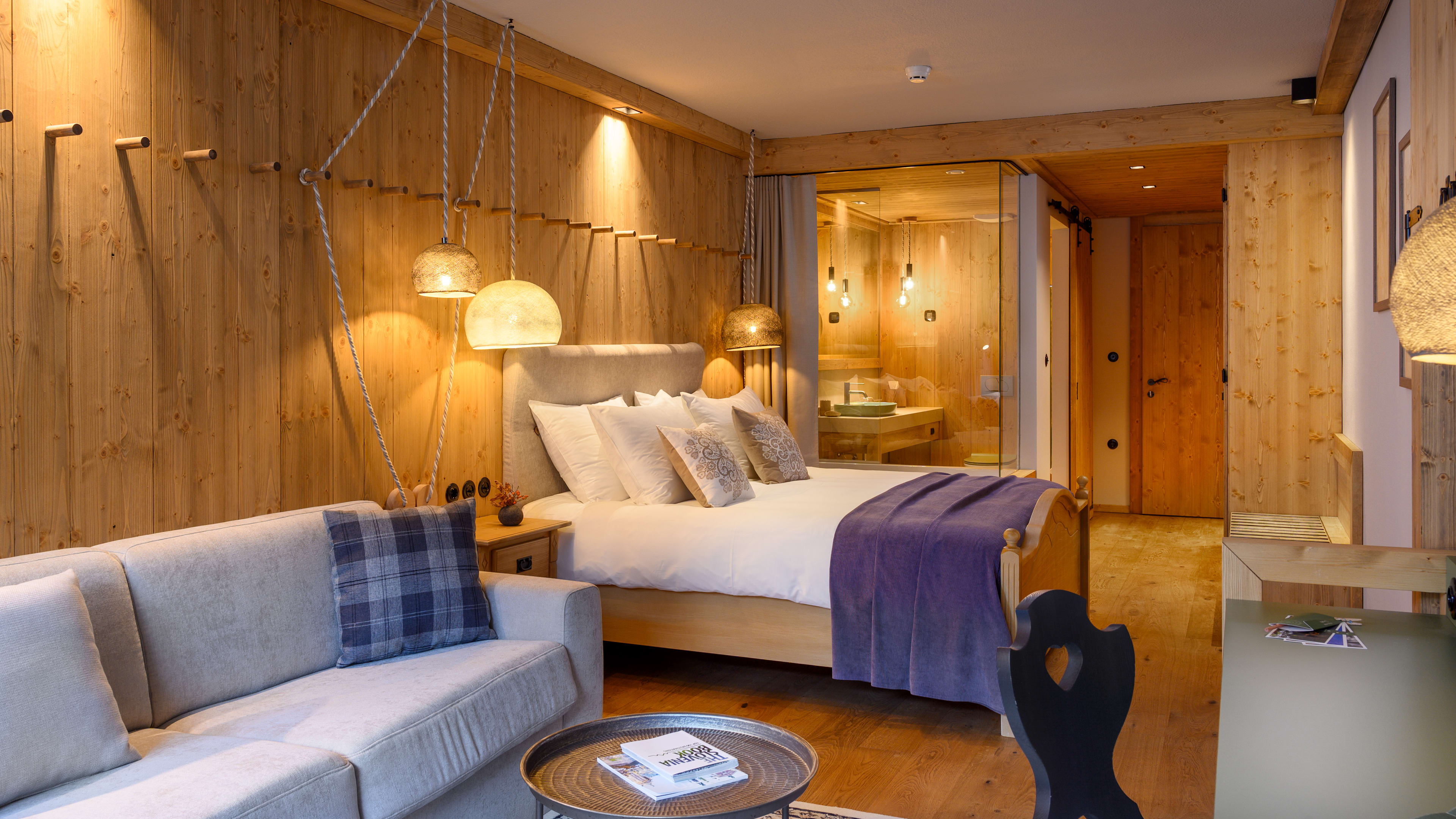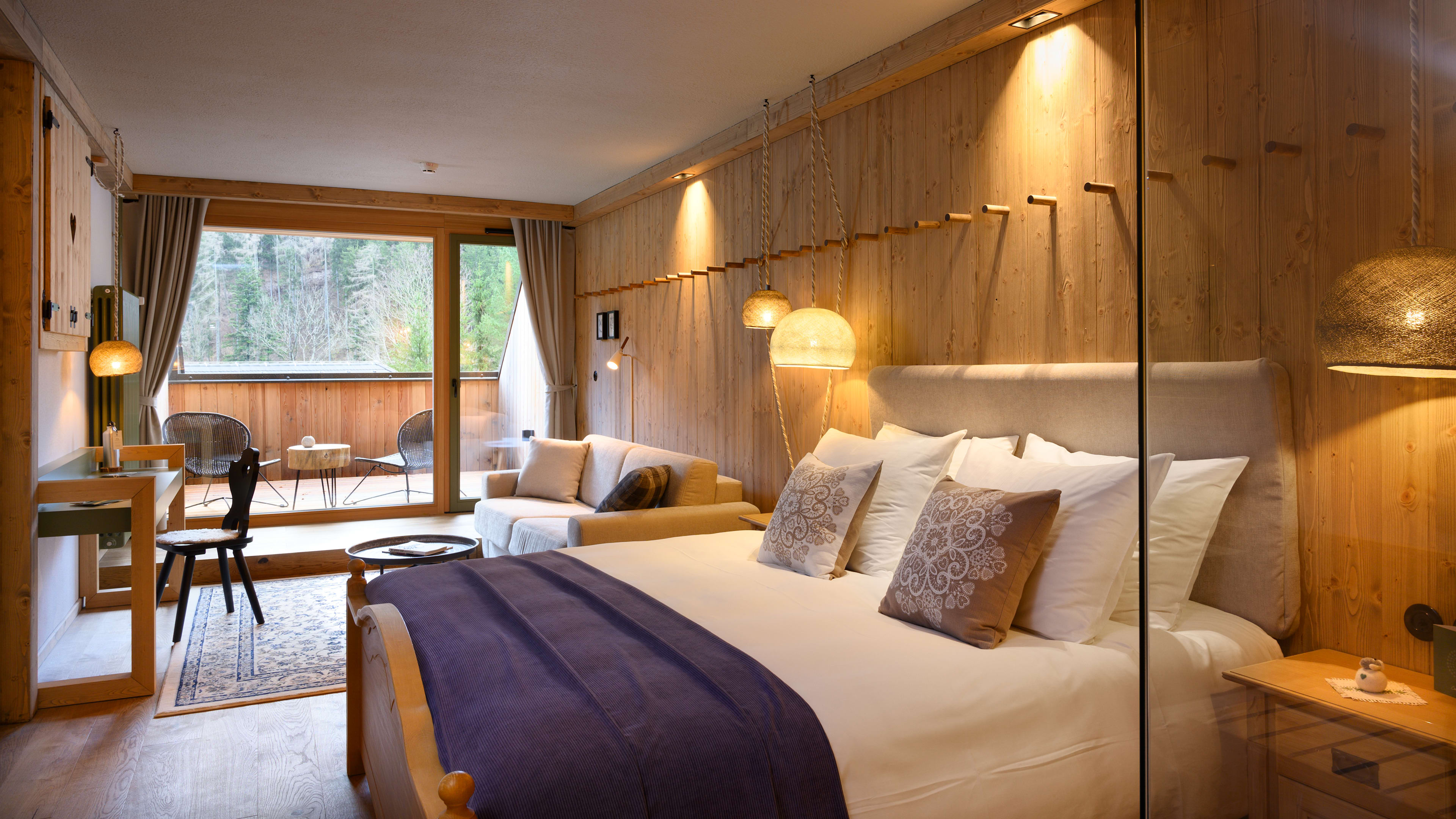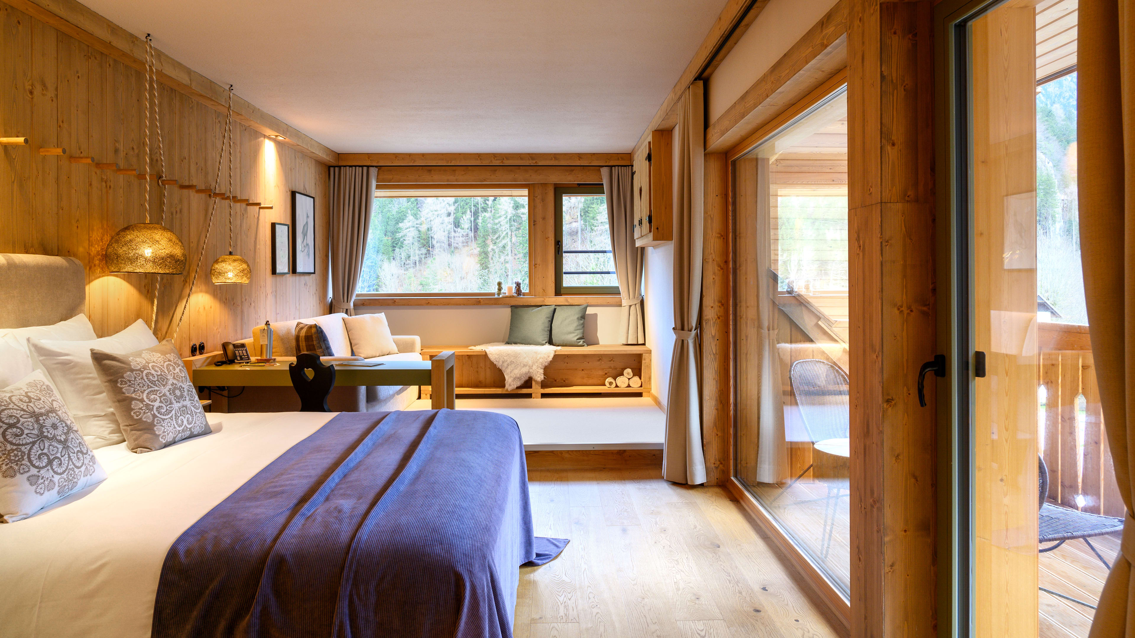 All rooms are beautifully appointed with modern Alpine interiors, local art and handmade curios – but with views this good, it’s worth investing in a room with a balcony; the dual aspect offered by corner rooms and suites is also hard to resist. The capacious corner deluxe apartment is a showstopper, with a kitchen, dining space and broad, wooden balcony. Different room types come with either a bath or shower, worth identifying before you make up your mind.
