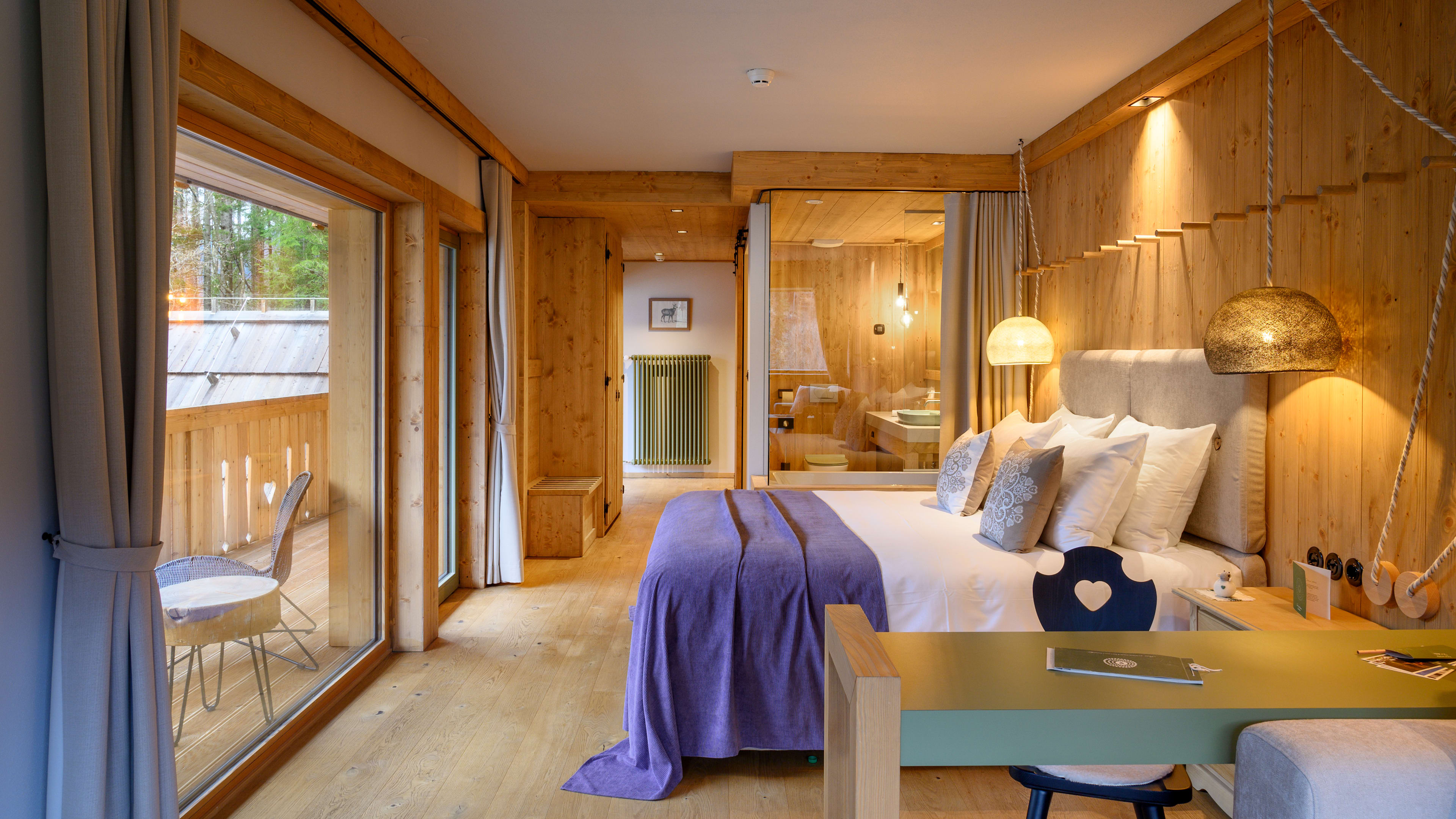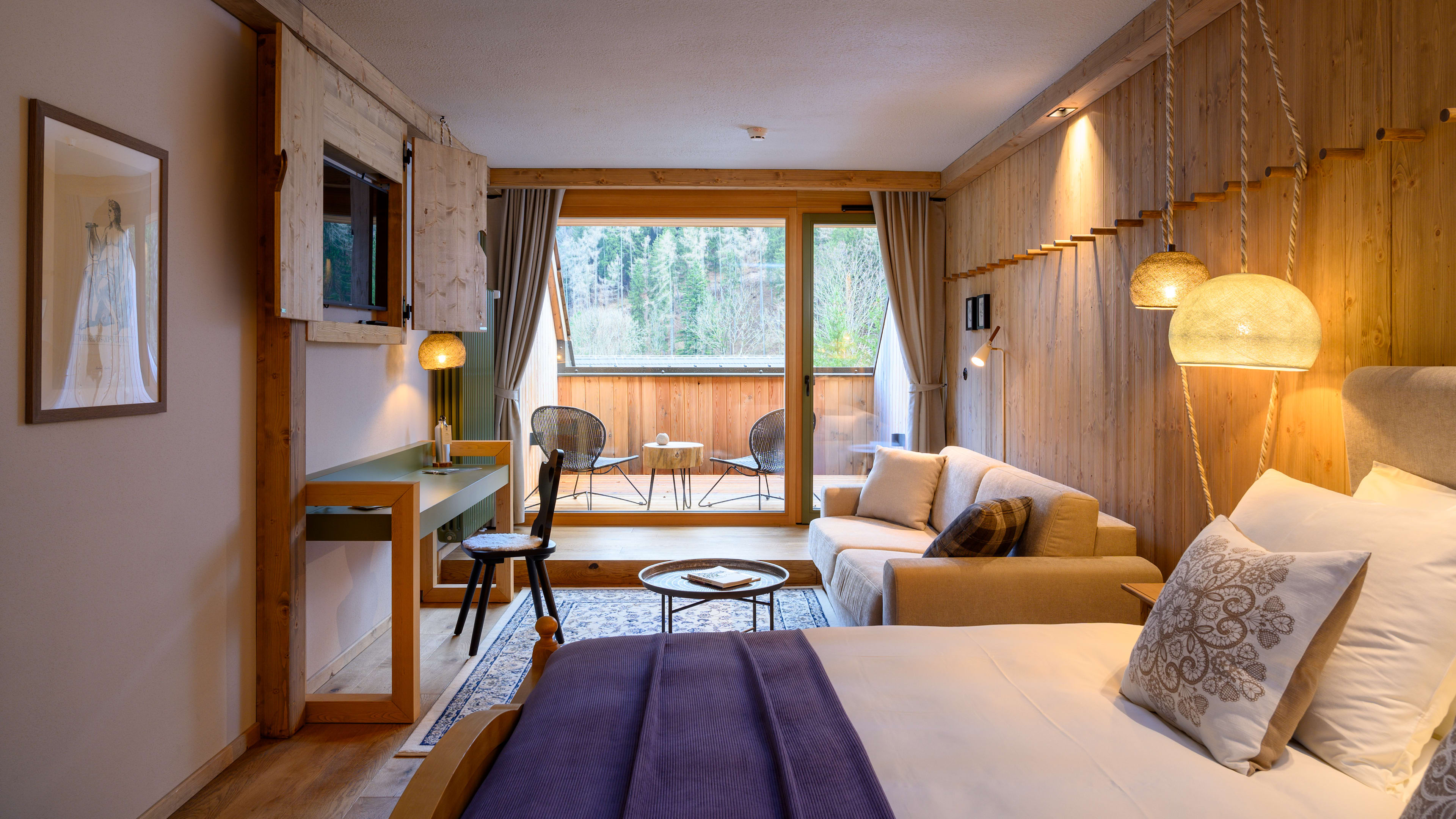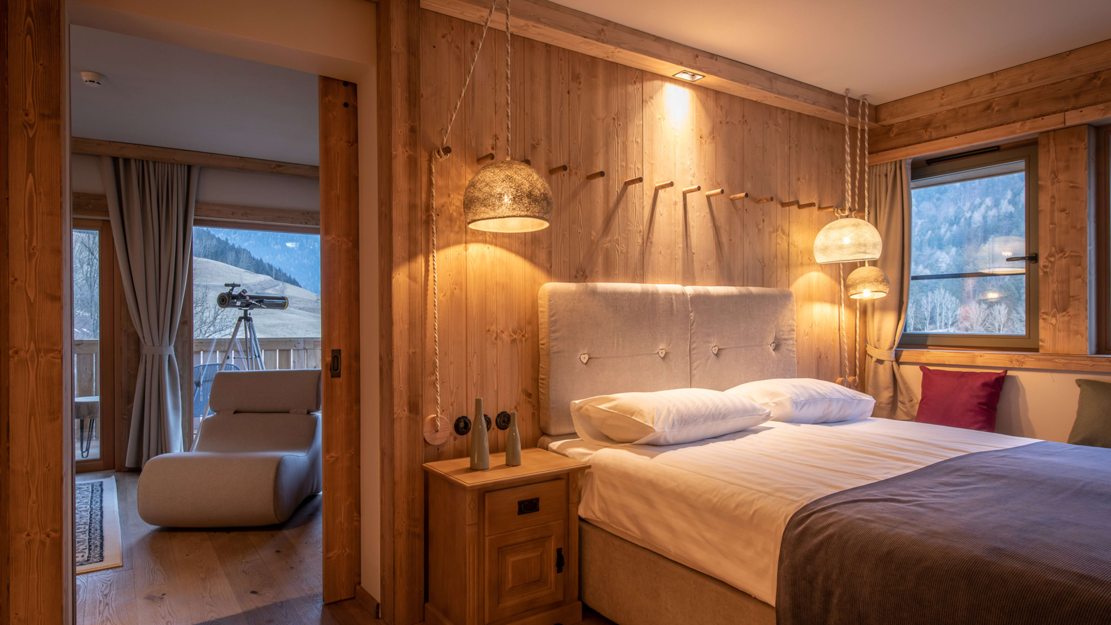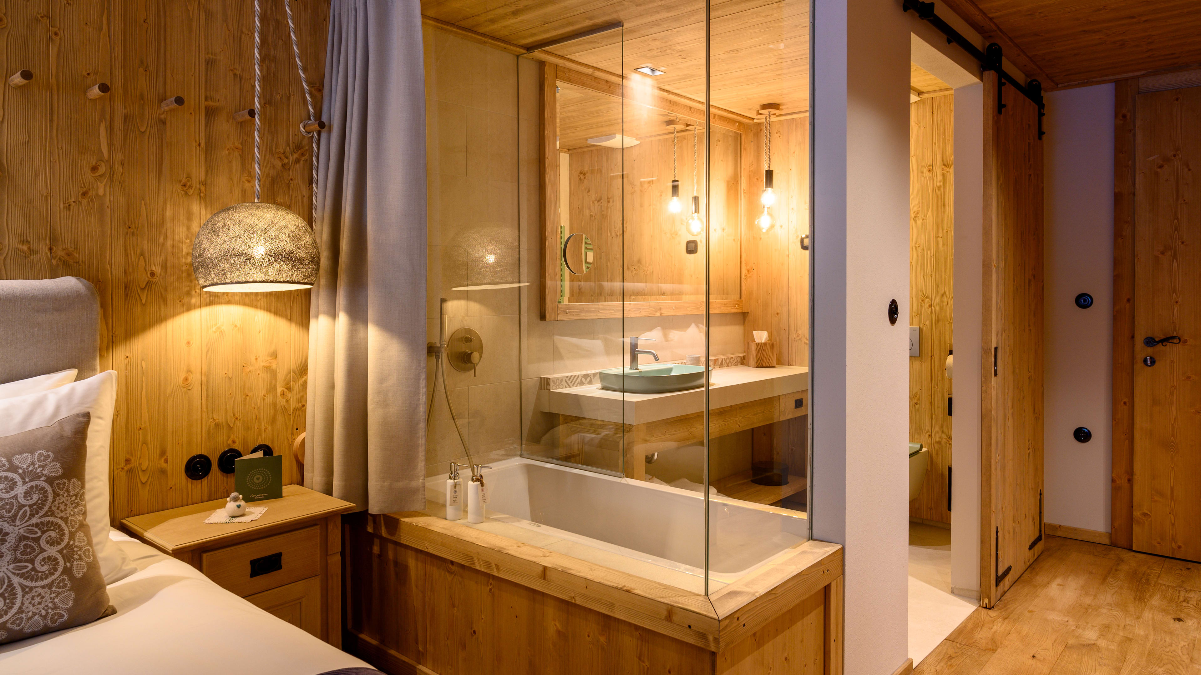 All rooms are beautifully appointed with modern Alpine interiors, local art and handmade curios – but with views this good, it’s worth investing in a room with a balcony; the dual aspect offered by corner rooms and suites is also hard to resist. The capacious corner deluxe apartment is a showstopper, with a kitchen, dining space and broad, wooden balcony. Different room types come with either a bath or shower, worth identifying before you make up your mind.