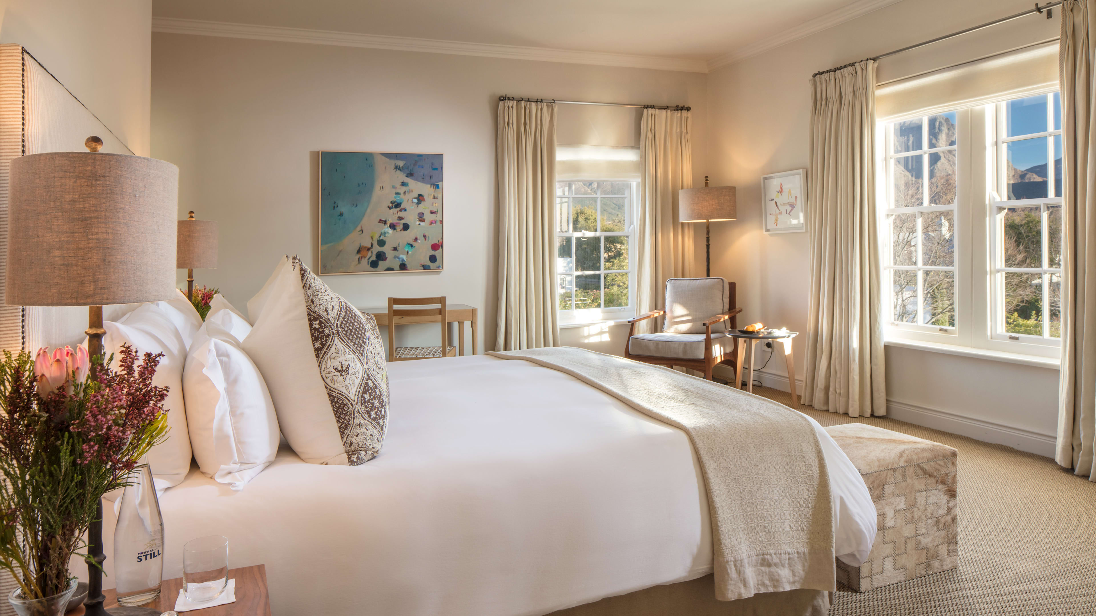 A stay as endorphin-releasing as that first sip of holiday wine, intimate hideaway Leeu House feels like a remote country residence, with its quiet tropical gardens, chenin-hued suites and mountainous backdrop. But, it’s actually on one of Franschhoek’s main drags, a toddle from the wine-tram stop, superlative cellar doors and a run of restaurants with serious reputations. Get a taste for the landscape (both cultural and farm-to-fork), then sequester yourself away to muse over intriguing South African artworks, be fussed over by staff who are discreet and detail-oriented, and a little more of that happy-making holiday wine, courtesy of the Mullineux & Leeu estates.