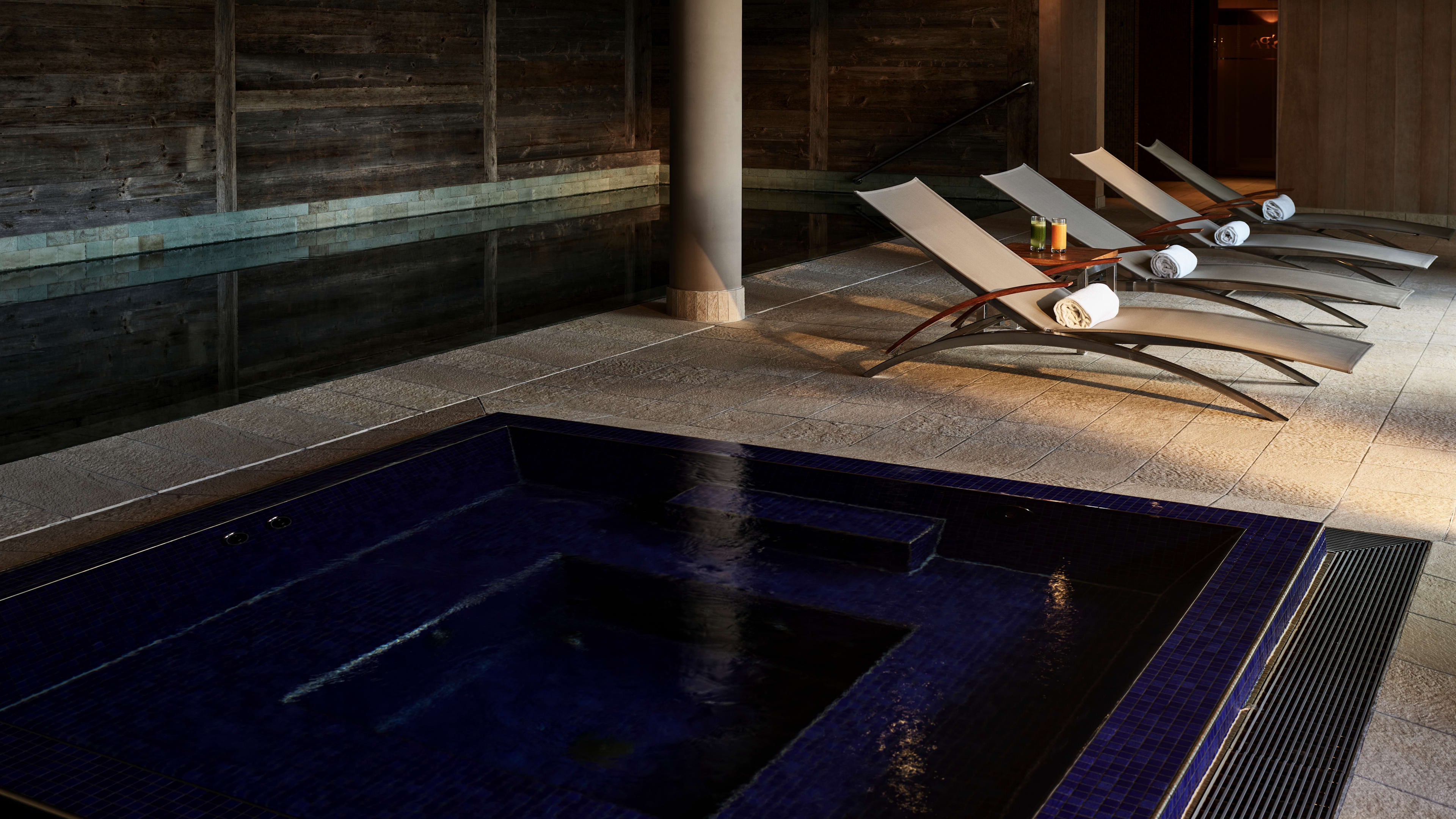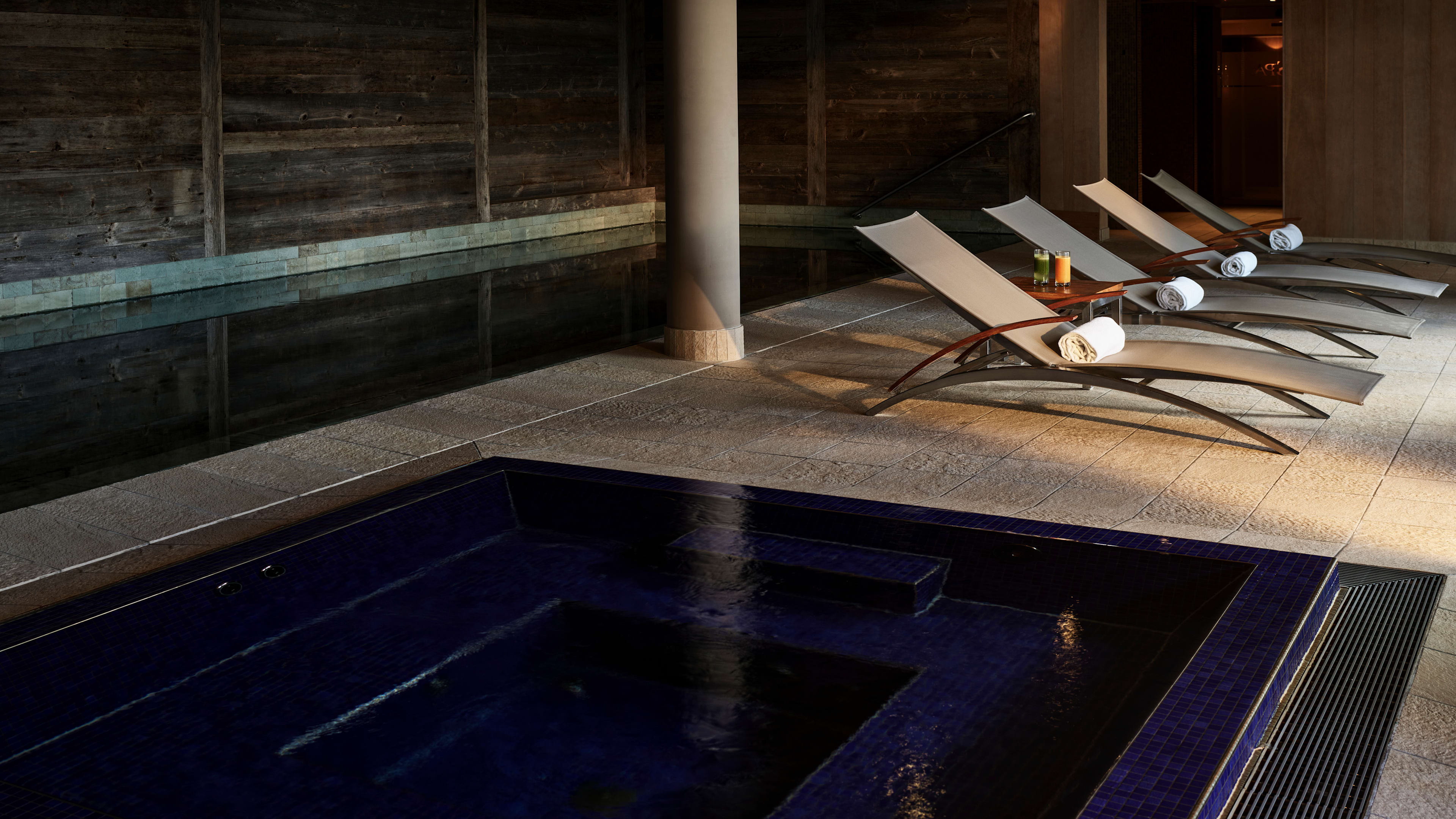 The heated outdoor pool is undoubtedly the hotel’s headliner, sunk into the snow with views toward the sawtooth peaks of the Valais. But, if you’d prefer to avoid the icy sprint outside (short though it may be), you can enjoy nature’s lot from the indoor pool, which is lined in Vietnamese green stone or the bubbling Jacuzzi; both benefit from floor-to-ceiling, mountain-framing windows.